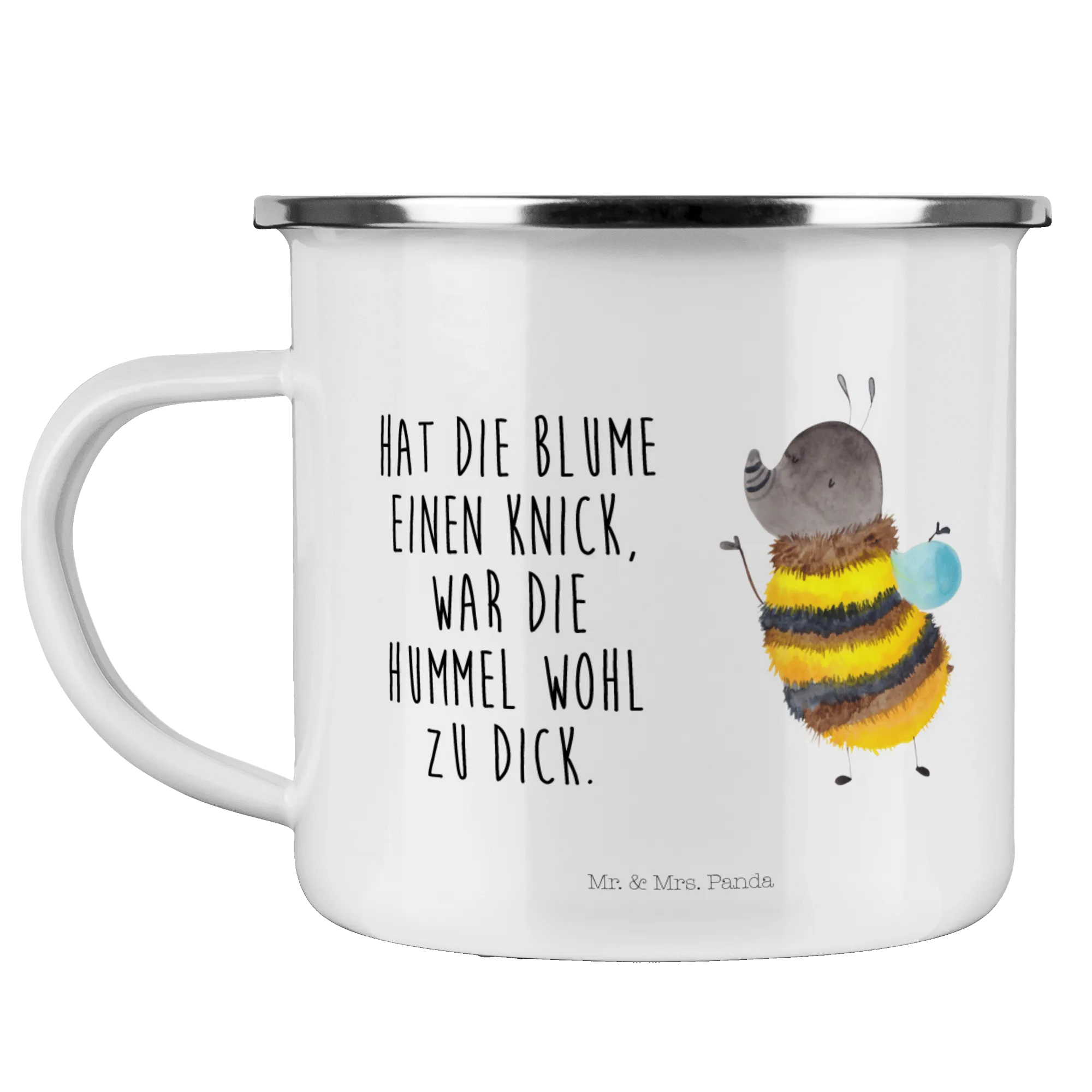 Die Camping Emaille Tasse "Hummel flauschig" von Mr. & Mrs. Panda ist die perfekte Begleiterin für alle Outdoor-Enthusiasten und Naturliebhaber! Egal, ob beim Camping, Wandern oder Picknicken – diese Tasse bringt Freude und gute Laune mit jedem Schluck.