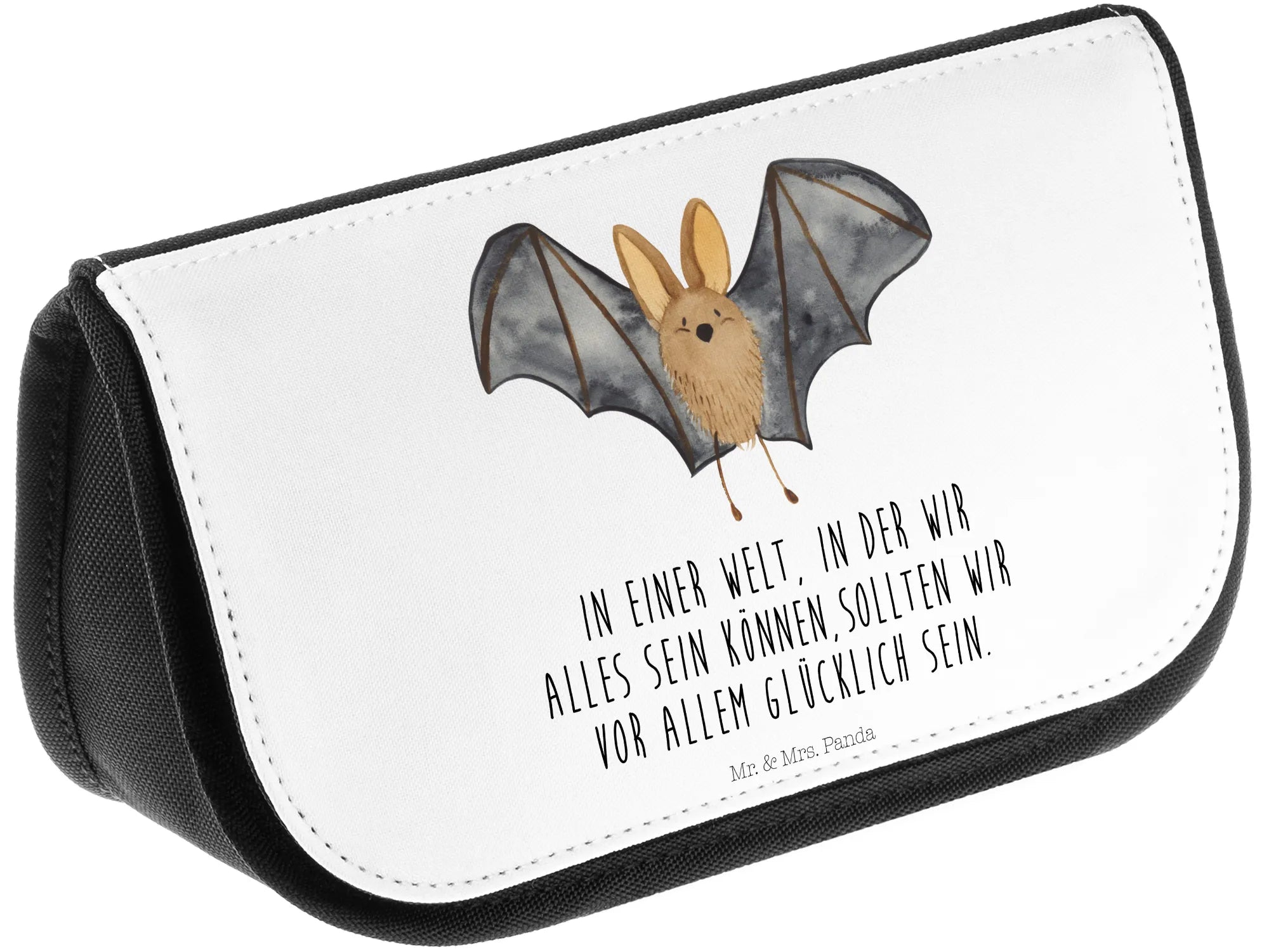Die Kosmetiktasche mit dem süßen Fledermaus Flügel Motiv aus der Small World Kollektion von Mr. & Mrs. Panda ist der perfekte Begleiter für alle, die das Leben besonders schätzen. Mit einem zauberhaften Design, das von Mrs. Panda liebevoll handgezeichnet wurde, bringt diese Tasche nicht nur gute Laune, sondern erinnert dich auch daran, das Leben leidenschaftlich zu leben.