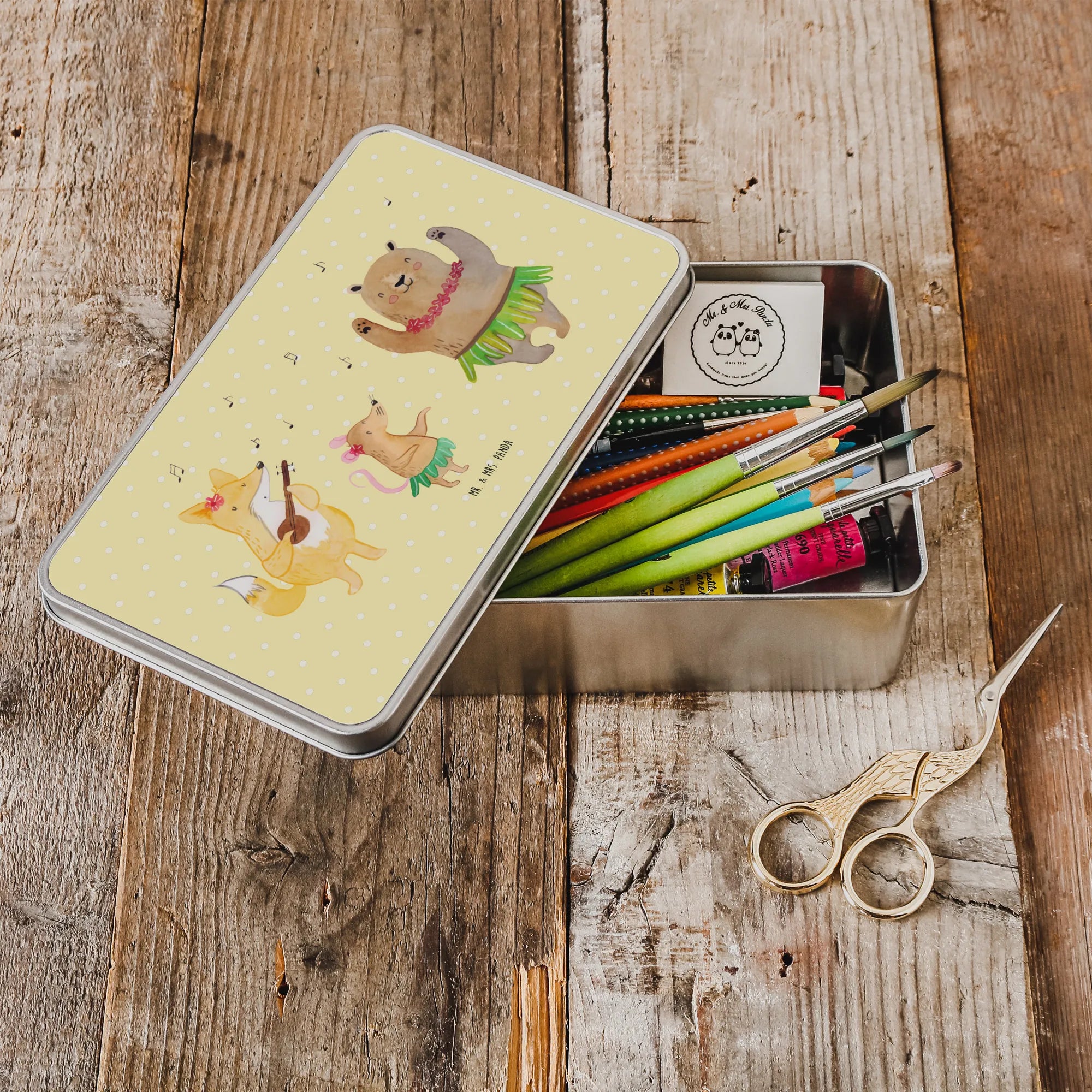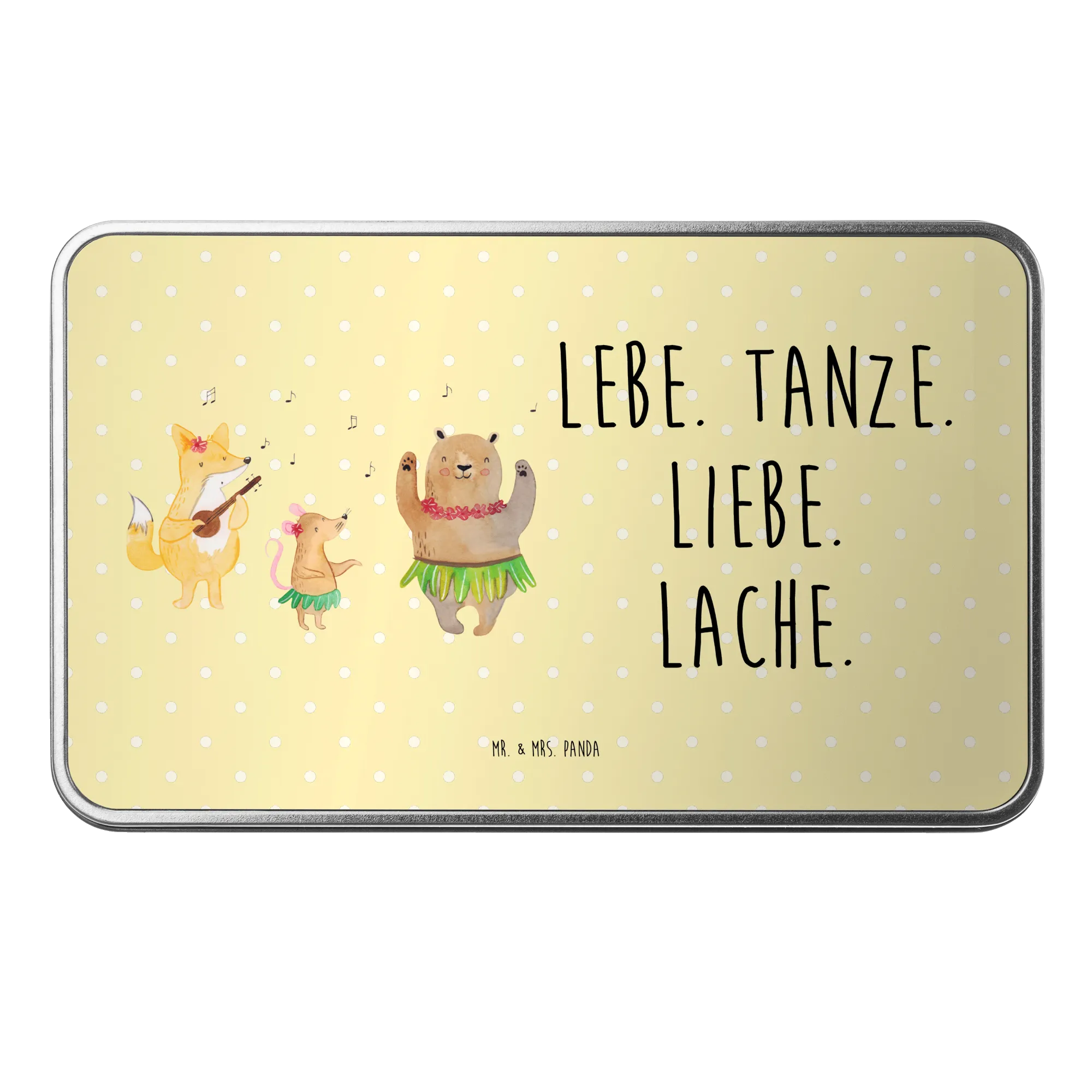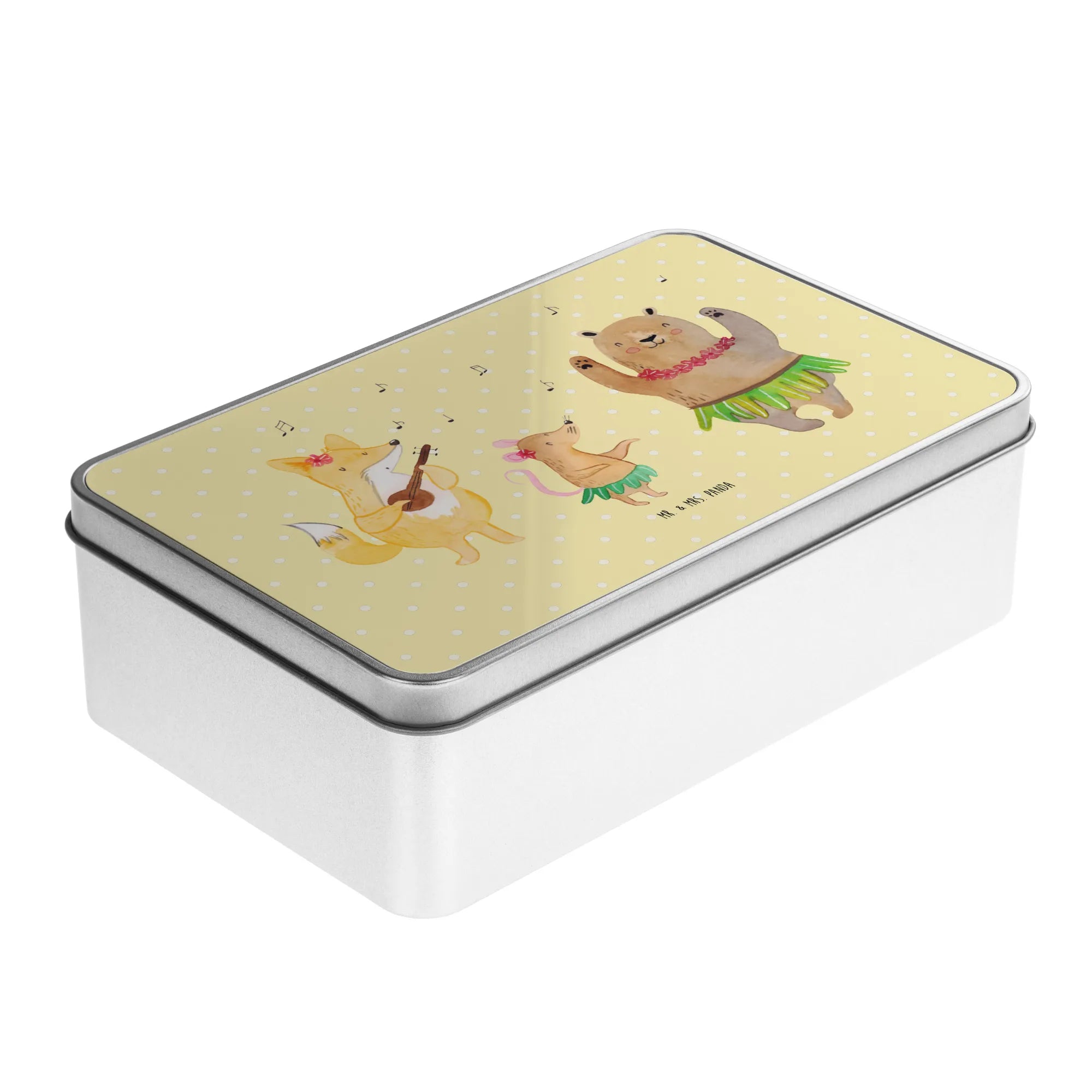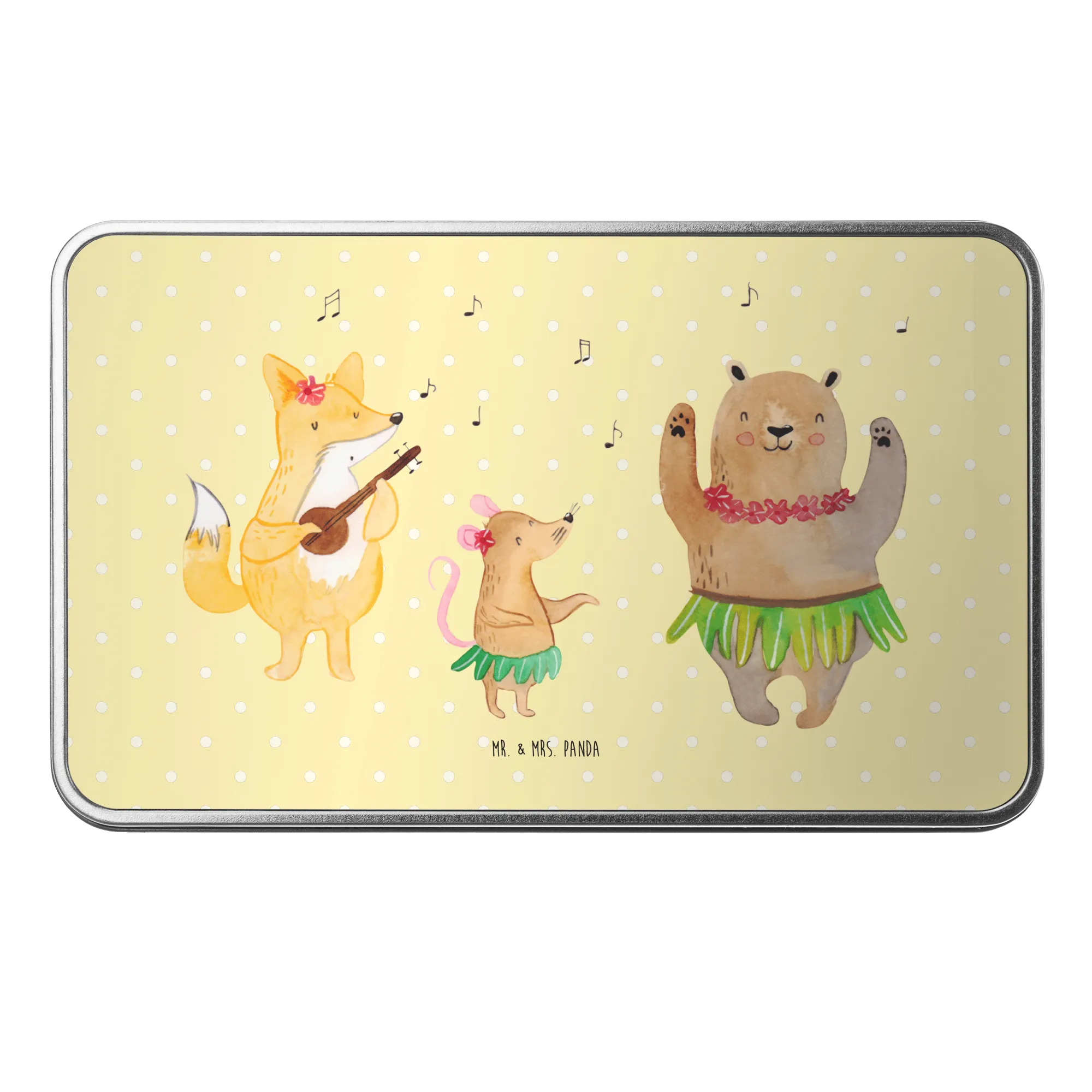 Die wunderschöne Metalldose rechteckig von Mr. & Mrs. Panda mit dem zauberhaften Motiv "Waldtiere Aloha" ist der perfekte Begleiter für all jene, die das Leben lieben und Freude verbreiten möchten. Ob für einen Sommerausflug, einen Nachmittag im Park oder als liebevolles Geschenk, diese Vorratsdose zaubert jedem ein Lächeln ins Gesicht! Mit dem fröhlichen Design voller niedlicher Waldtiere, die in bunten Hula-Röcken zu Hawaiianischer Musik tanzen, bringst du ein Stück Urlaubsstimmung direkt in dein Zuhause. Die künstlerischen Illustrationen sind nicht nur ein Blickfang, sie kreieren auch eine positive Atmosphäre, die zum Träumen einlädt.