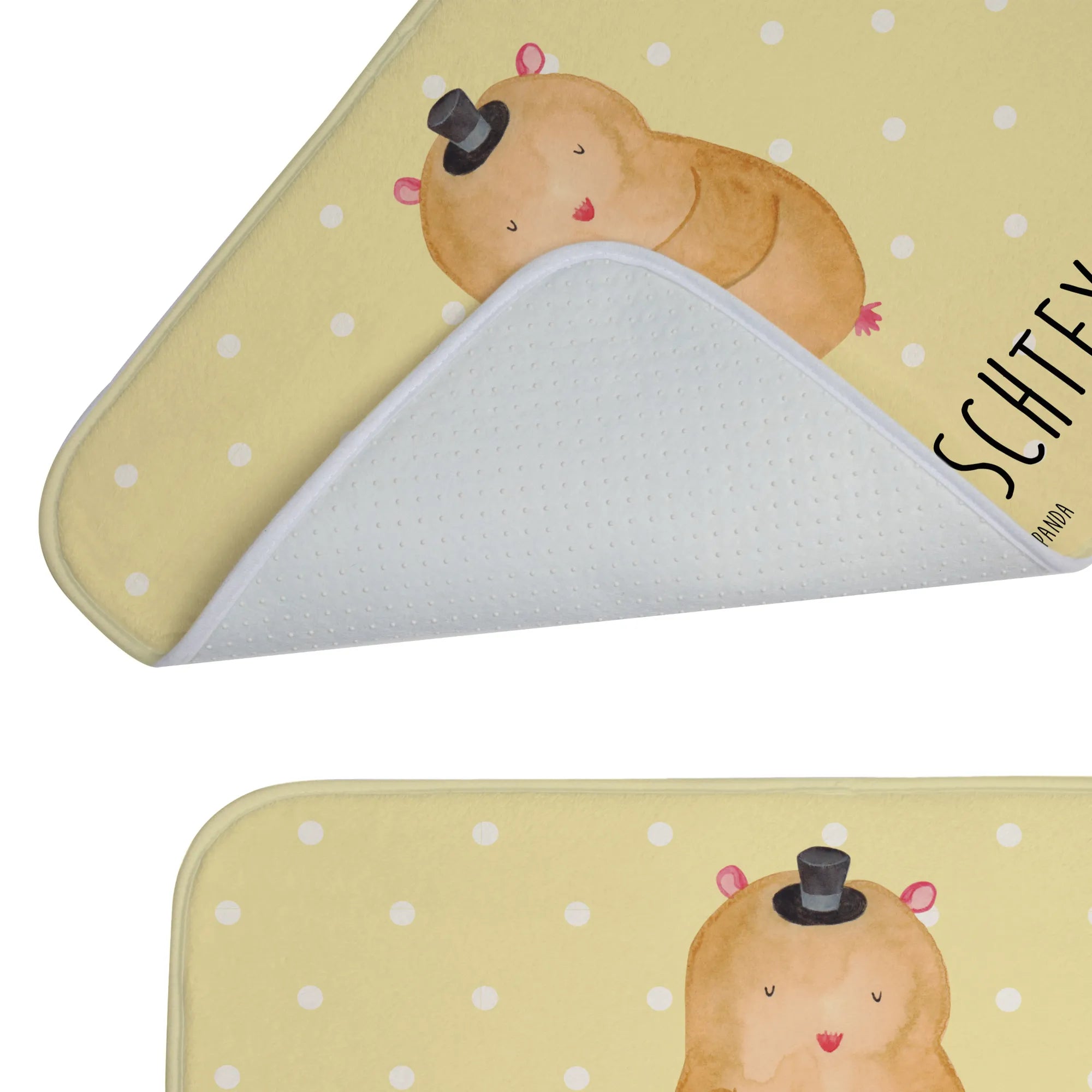 Entdecke die zauberhafte Welt der personalisierten Badvorleger von Mr. & Mrs. Panda! Unser Badvorleger mit dem niedlichen Motiv "Hamster mit Hut" ist der perfekte Hingucker für dein Badezimmer. Er bringt nicht nur Farbe und gute Laune in deine vier Wände, sondern sorgt auch für unverwechselbaren Komfort. Die Vorderseite des Badvorlegers ist aus flauschigem Premium Polyester gefertigt, was für ein tolles Laufgefühl beim Betreten der Dusche oder Badewanne sorgt. Dank der Anti-Rutsch Gummibeschichtung kannst du sicher sein, dass du beim Aussteigen nicht ins Rutschen gerätst.