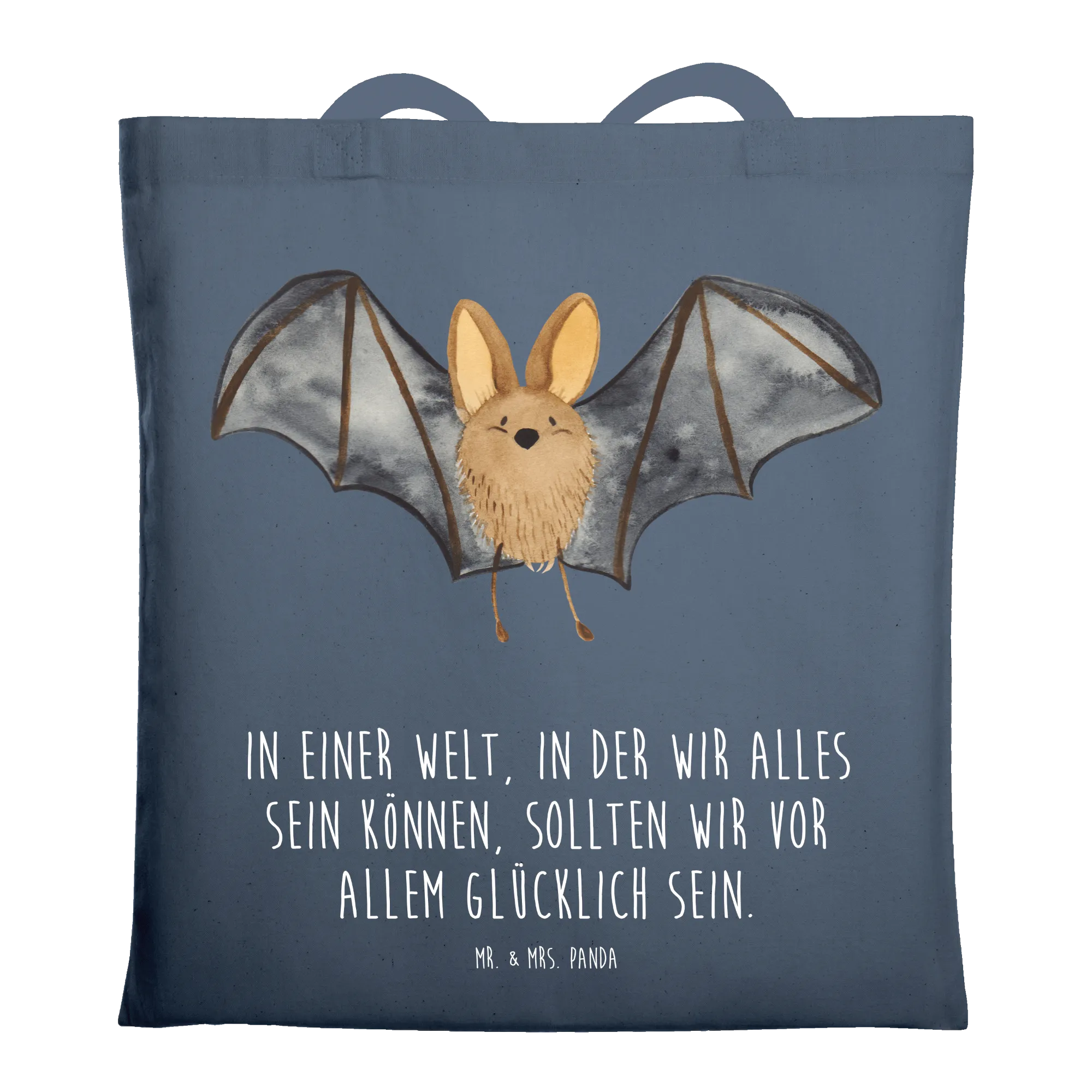 Unsere kleine, bezaubernde Tragetasche aus der Small World Kollektion bringt Magie in deinen Alltag. Das handgezeichnete Aquarellmotiv zeigt eine niedliche Fledermaus mit ausgebreiteten Flügeln und trägt den schönen Spruch: „In einer Welt, in der wir alles sein können, sollten wir vor allem glücklich sein.“ 🎈