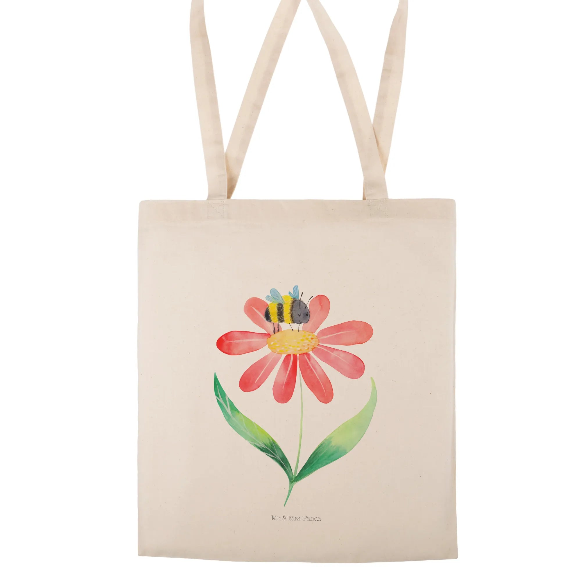 Die süße Hummel, liebevoll von Mrs. Panda per Aquarell gezeichnet, sitzt auf einer zarten Blüte und bringt ein fröhliches Summen in deinen Alltag. Die sanfte Himmelblau-Farbe des Hintergrunds lässt das Motiv leuchten und macht die Tasche zum perfekten Begleiter für City, Strand und Wochenmarkt. 🌼🐝