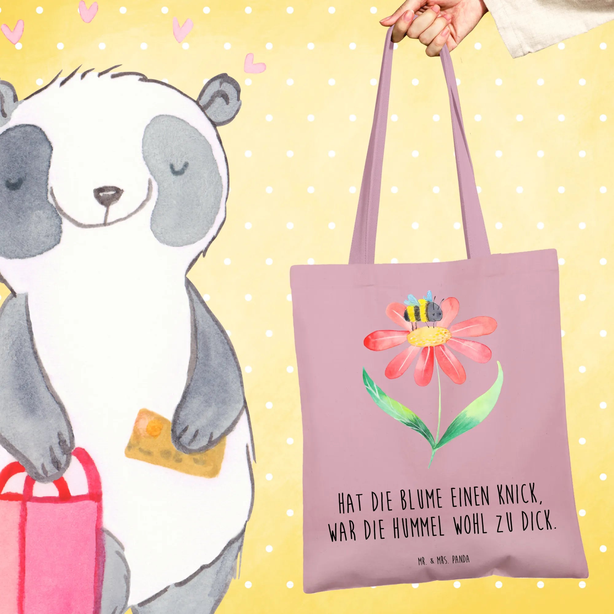 Erlebe die fröhliche Tragetasche von Mr. & Mrs. Panda – dein perfekter Einkaufspartner, der immer ein Lächeln auf dein Gesicht zaubert!
