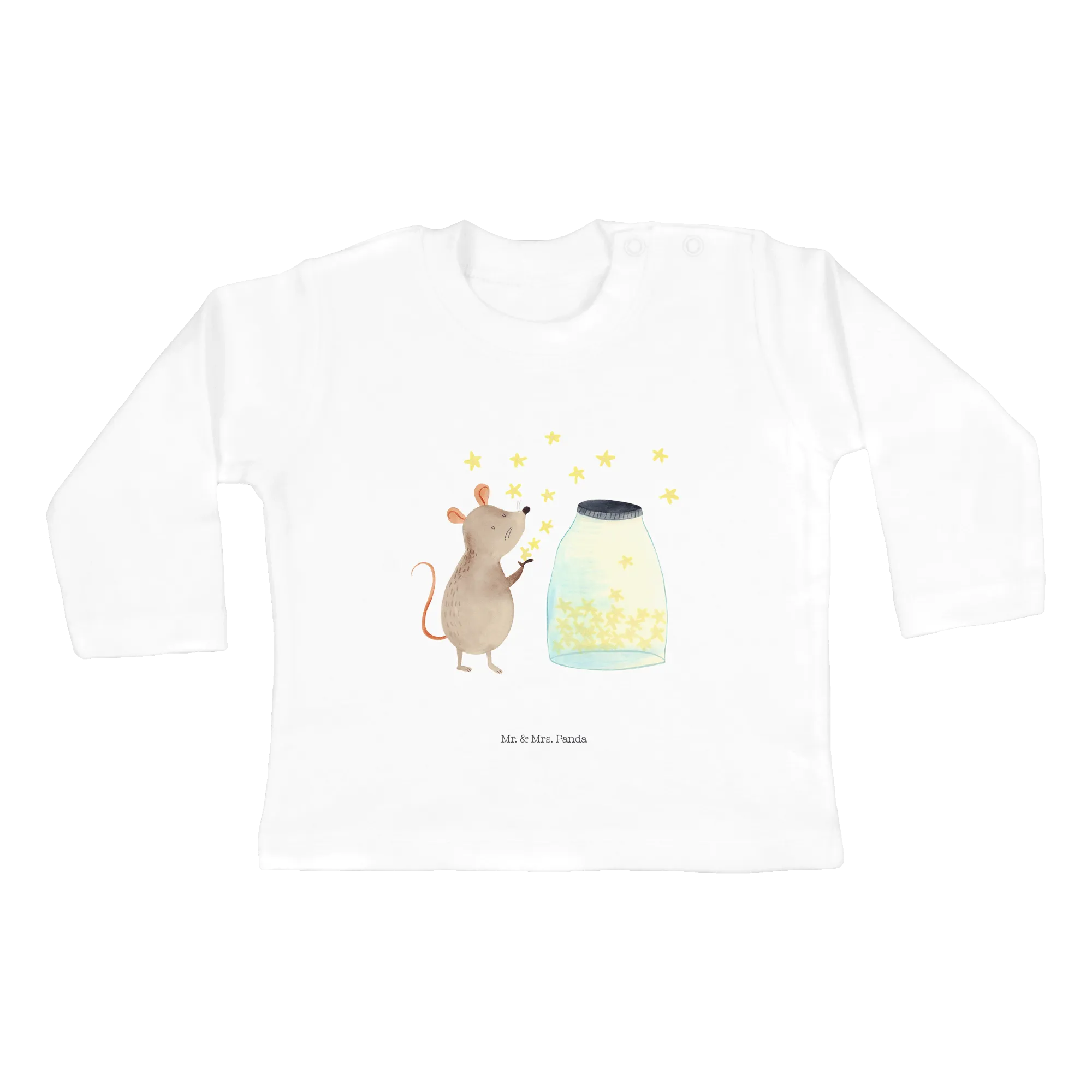 Der 18-24 Monate Baby Longsleeve mit dem bezaubernden Motiv "Maus Sterne" aus der vielfältigen Small World Kollektion von Mr. & Mrs. Panda ist der perfekte Begleiter für kleine Entdeckerinnen und Entdecker! Diese süße Maus, die vor einem Glas funkelnder Sterne sitzt, lädt dazu ein, die Fantasie Deiner Kleinen zu entfachen und sie auf eine wunderbare Reise durch die Weiten des Universums zu entführen.