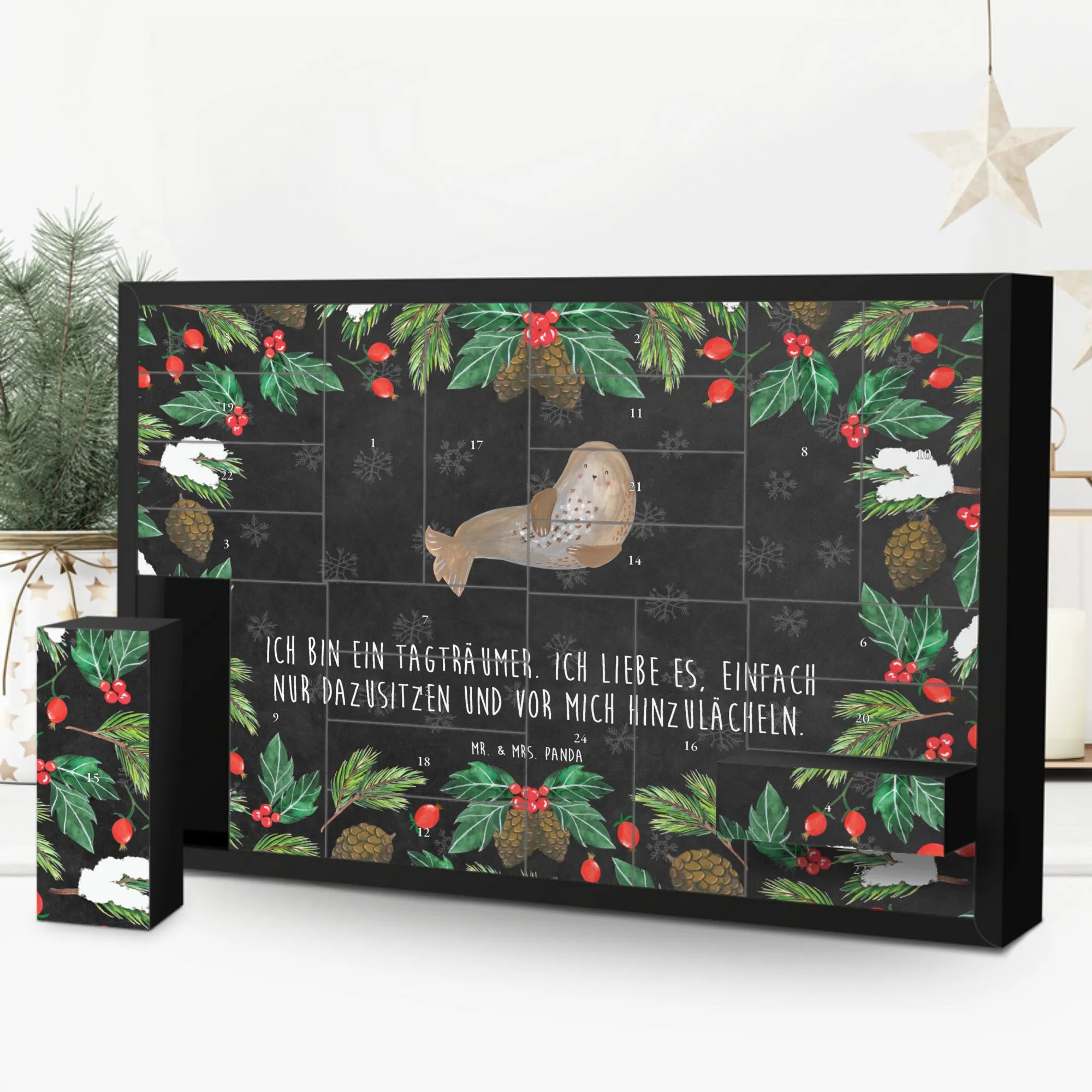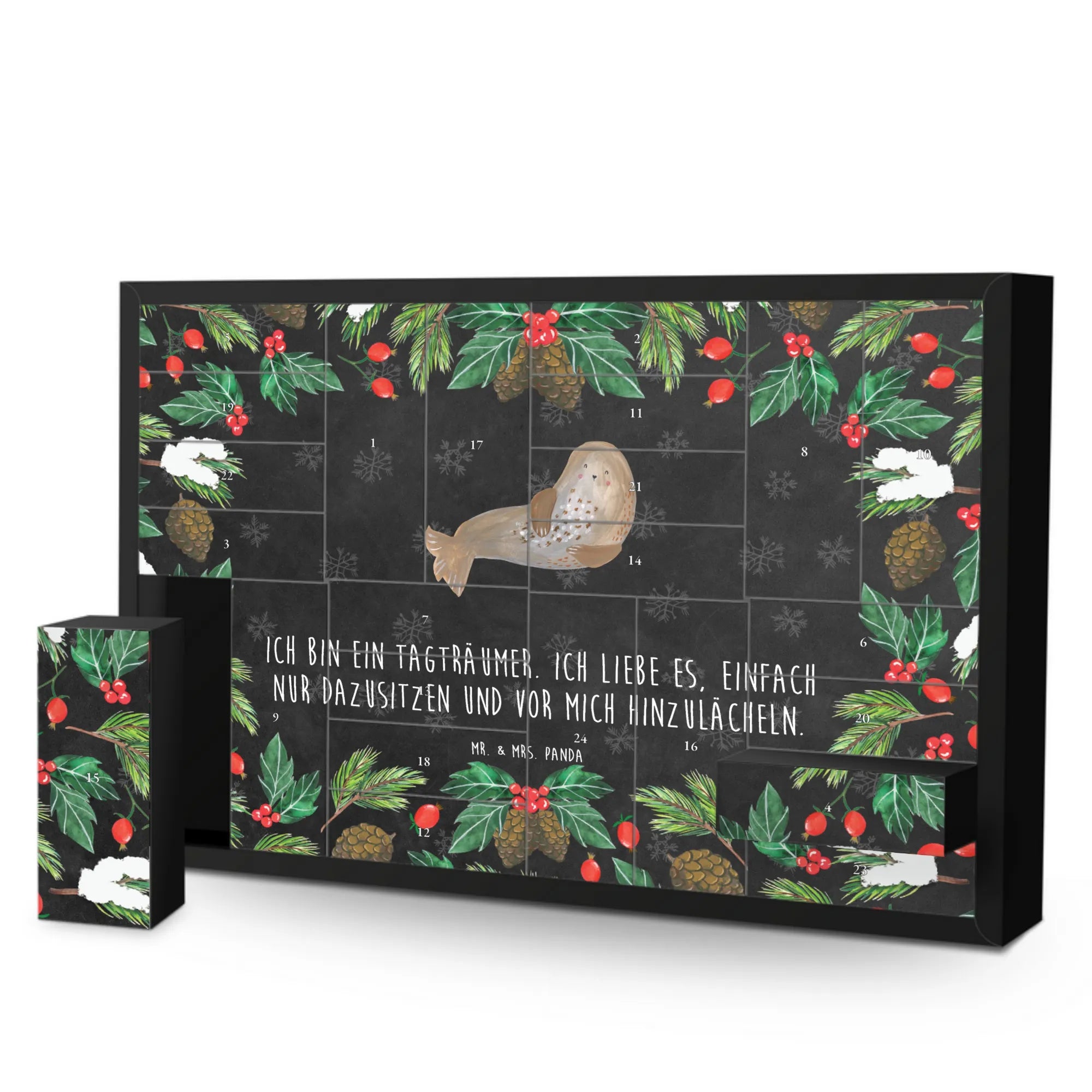 Sei es für Familie, Freunde oder sogar für dich selbst – dieser Adventskalender sorgt immer für gute Laune! Und das Beste? Er wird ohne die Füllung geliefert, sodass du deiner Fantasie freien Lauf lassen kannst. Ob zu Weihnachten, zum Geburtstag oder einfach als süße Überraschung – der "Robbe lachend" Adventskalender von Mr. & Mrs. Panda ist ein Muss für jeden Tierfreund!