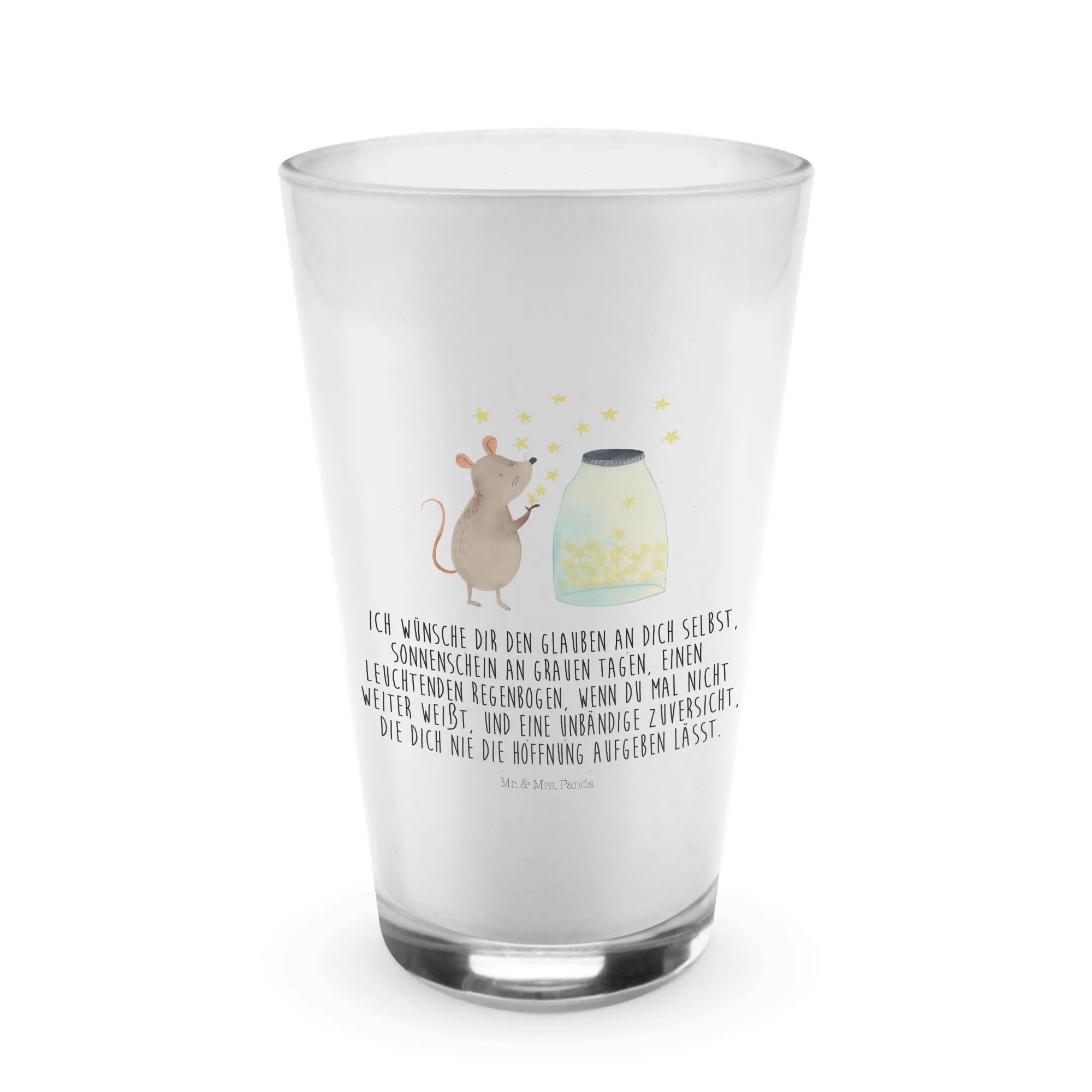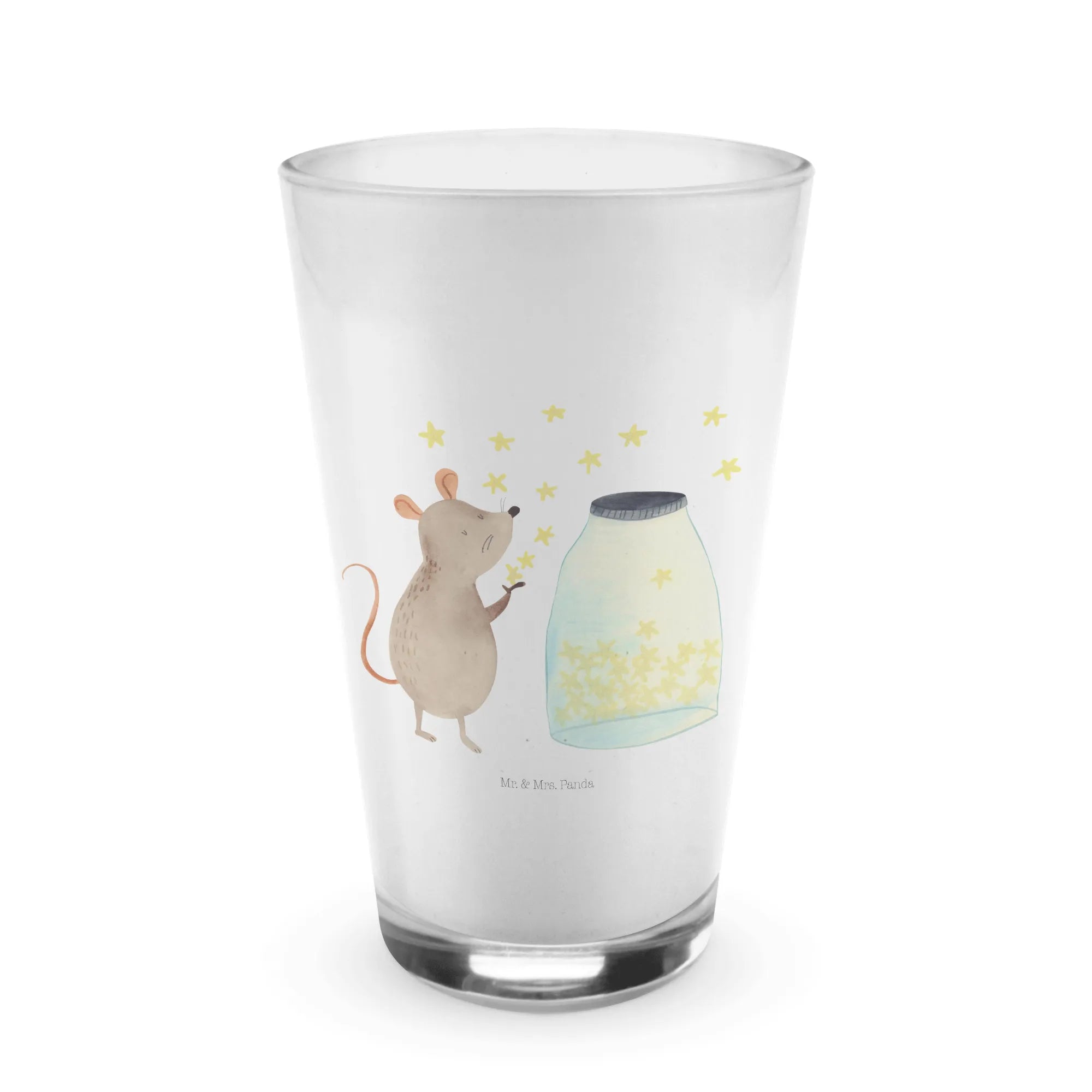 Lass Dir von den süßen Motiven den Tag versüßen und genieße Deine Kaffee-Kreationen auf eine ganz neue Art. Das Cappuccino Glas mit dem Maus Sterne-Motiv wird nicht nur ein Hingucker sein, sondern auch Herzen erobern! Verschenke einen Hauch von Magie zu jedem Anlass mit Mr. & Mrs. Panda.