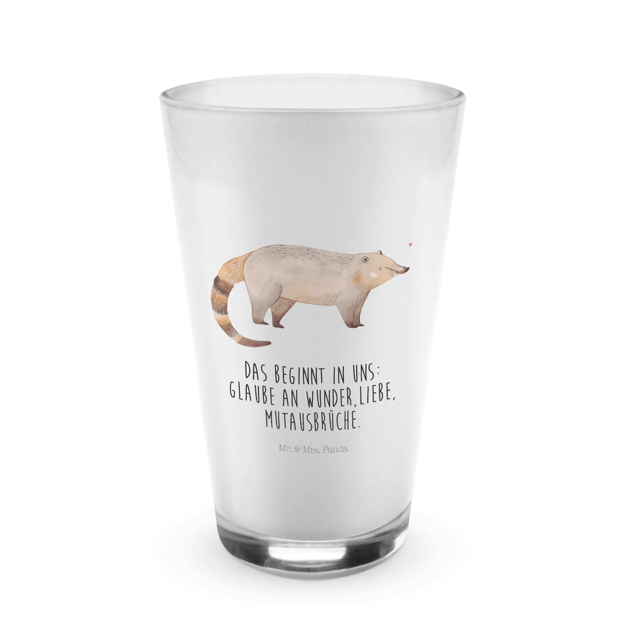 Suchst du das perfekte Geschenk für Tierliebhaber und Kaffeeliebhaber? Dann ist das Cappuccino Glas mit dem süßen Nasenbär-Motiv aus der 'Small World'-Kollektion von Mr. & Mrs. Panda genau das richtige für dich! Dieses wunderschöne Glas besticht nicht nur durch sein niedliches Design, sondern auch durch seine vielseitige Einsetzbarkeit. Egal, ob du ein köstliches Latte Macchiato, einen schaumigen Cappuccino oder einen erfrischenden Longdrink genießen möchtest, dieses Glas macht jedem Getränk Freude und bringt gute Laune in deinen Alltag.