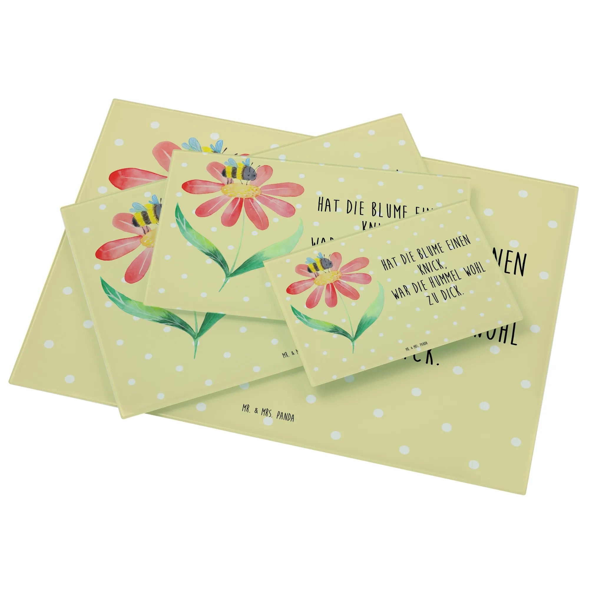 Hackbrett Hummel Blume - Medium Glas Schneidbrett - mit Spruch - Gelb Pastell