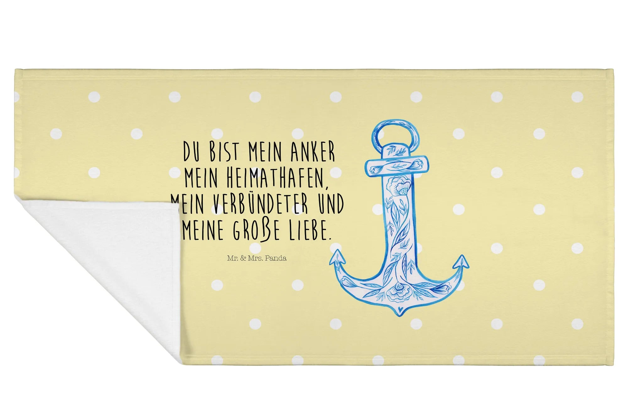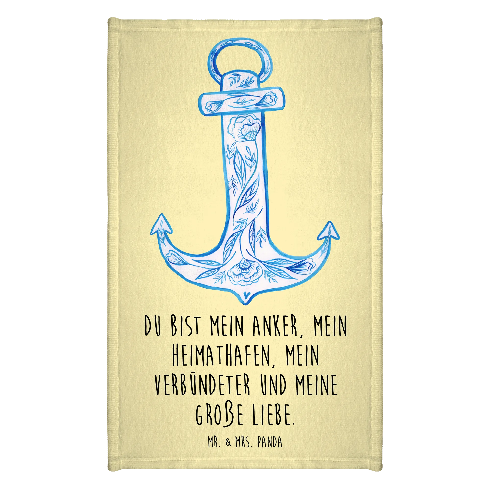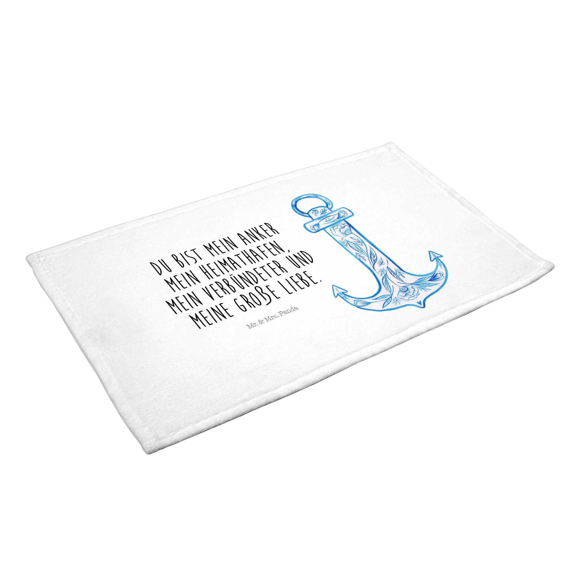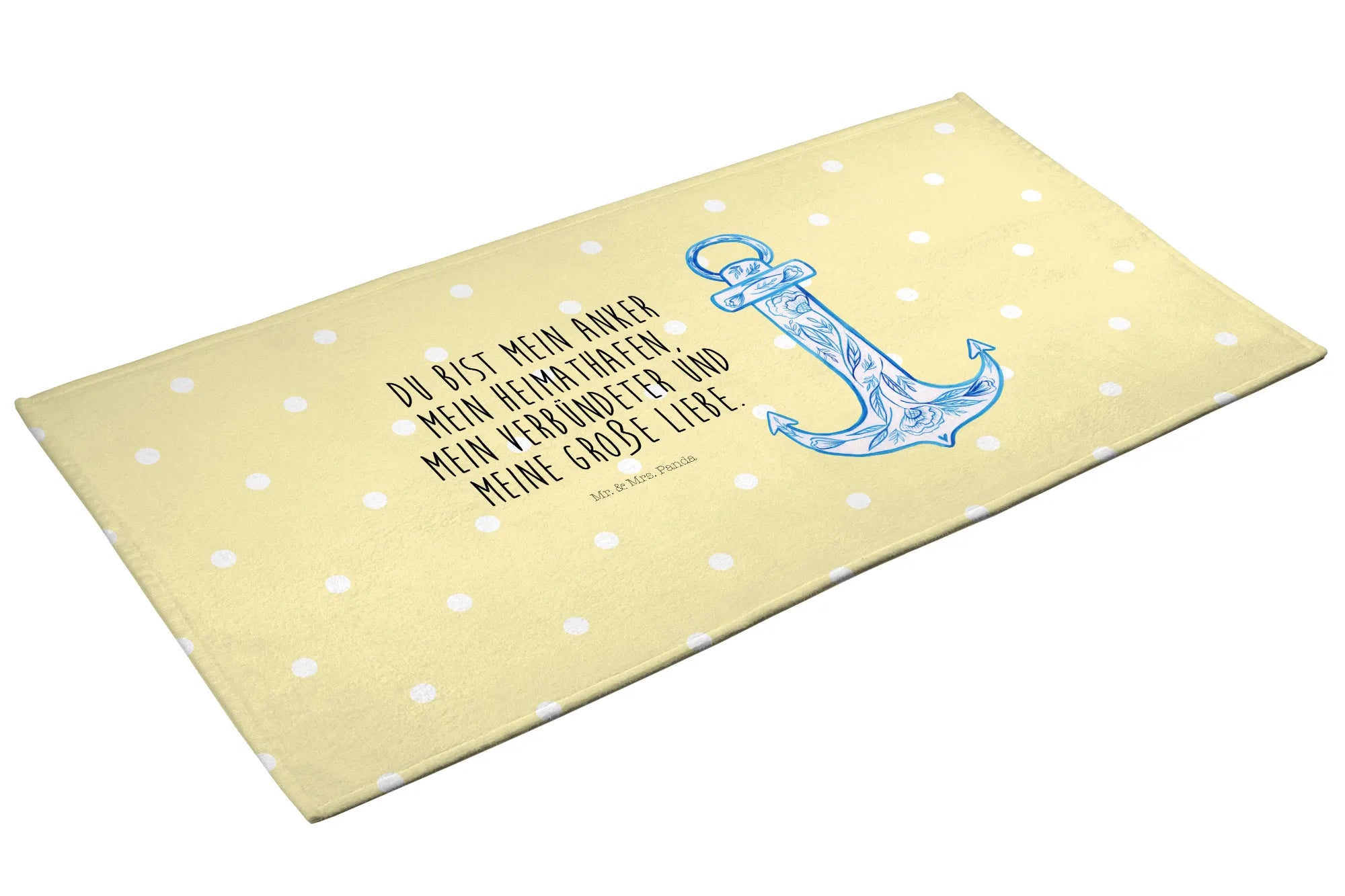 Das liebevoll gestaltete Gästehandtuch Anker Blau von Mr. & Mrs. Panda bringt nicht nur Farbe, sondern auch eine Portion Lebensfreude in jedes Badezimmer! Mit seinem maritimen Motiv und dem inspirierenden Slogan "Du bist mein Anker, mein Heimathafen, mein Verbündeter und meine große Liebe" verwandelt dieses Handtuch dein Gäste- oder Badezimmer in eine Wohlfühloase.