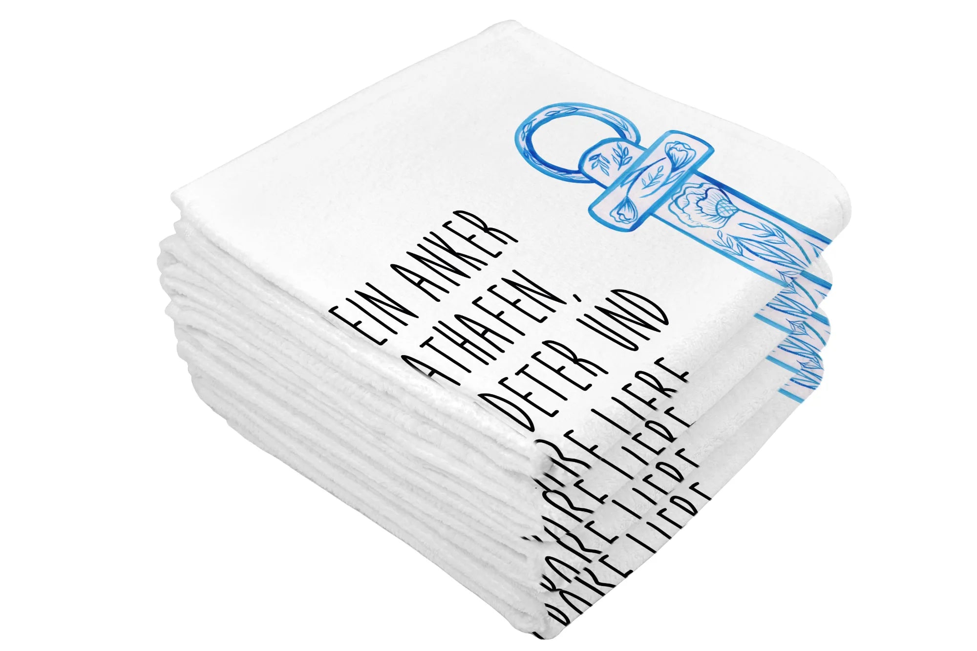 Gästehandtuch Anker Blau - 50 x 100 Handtuch - mit Spruch - Weiß