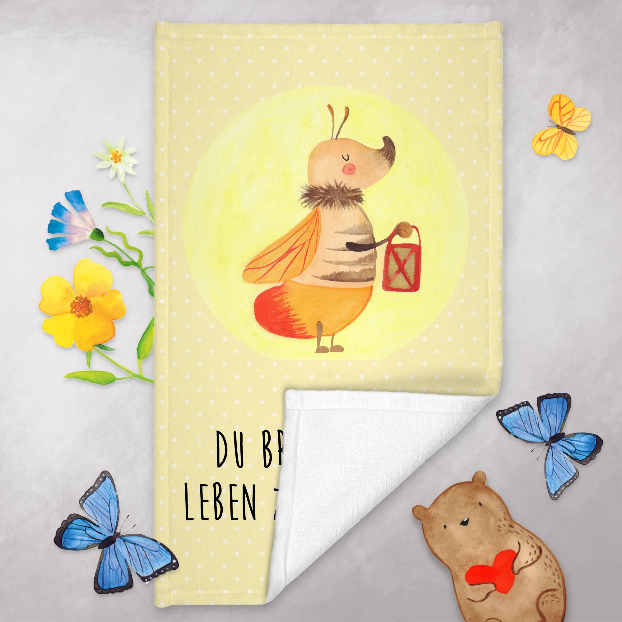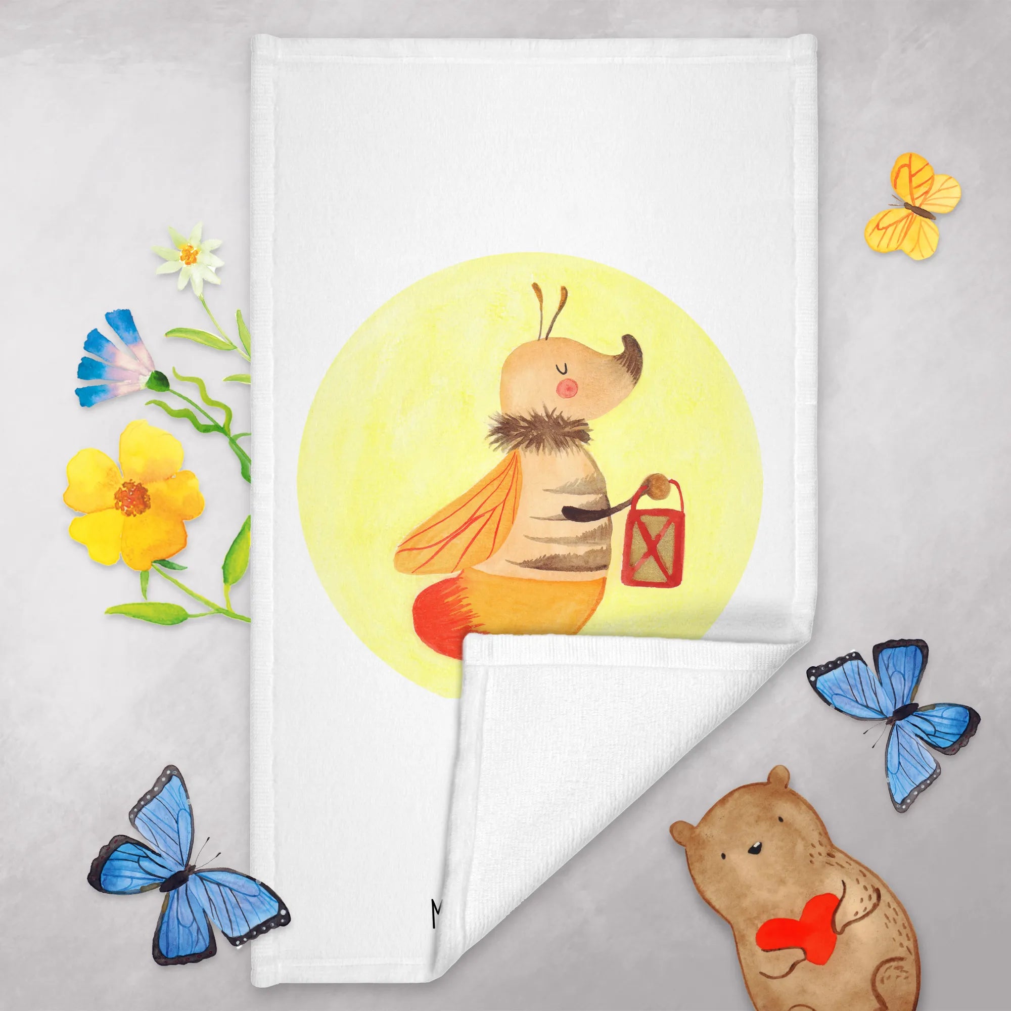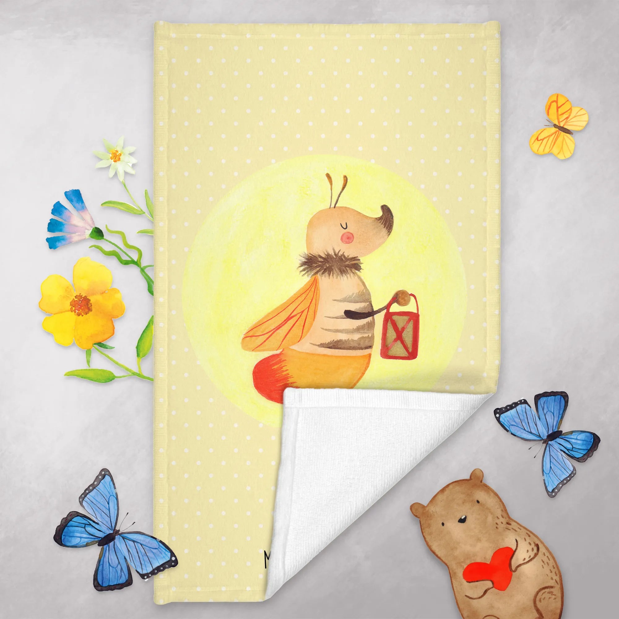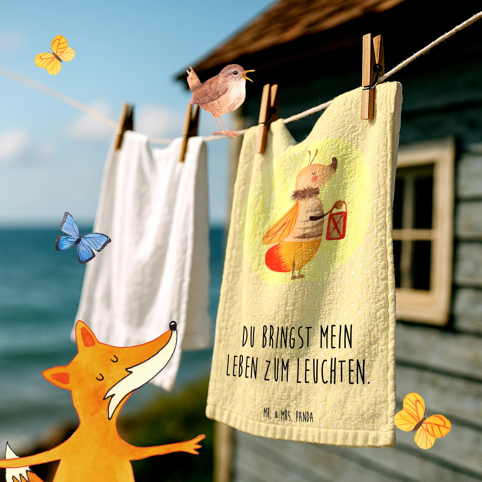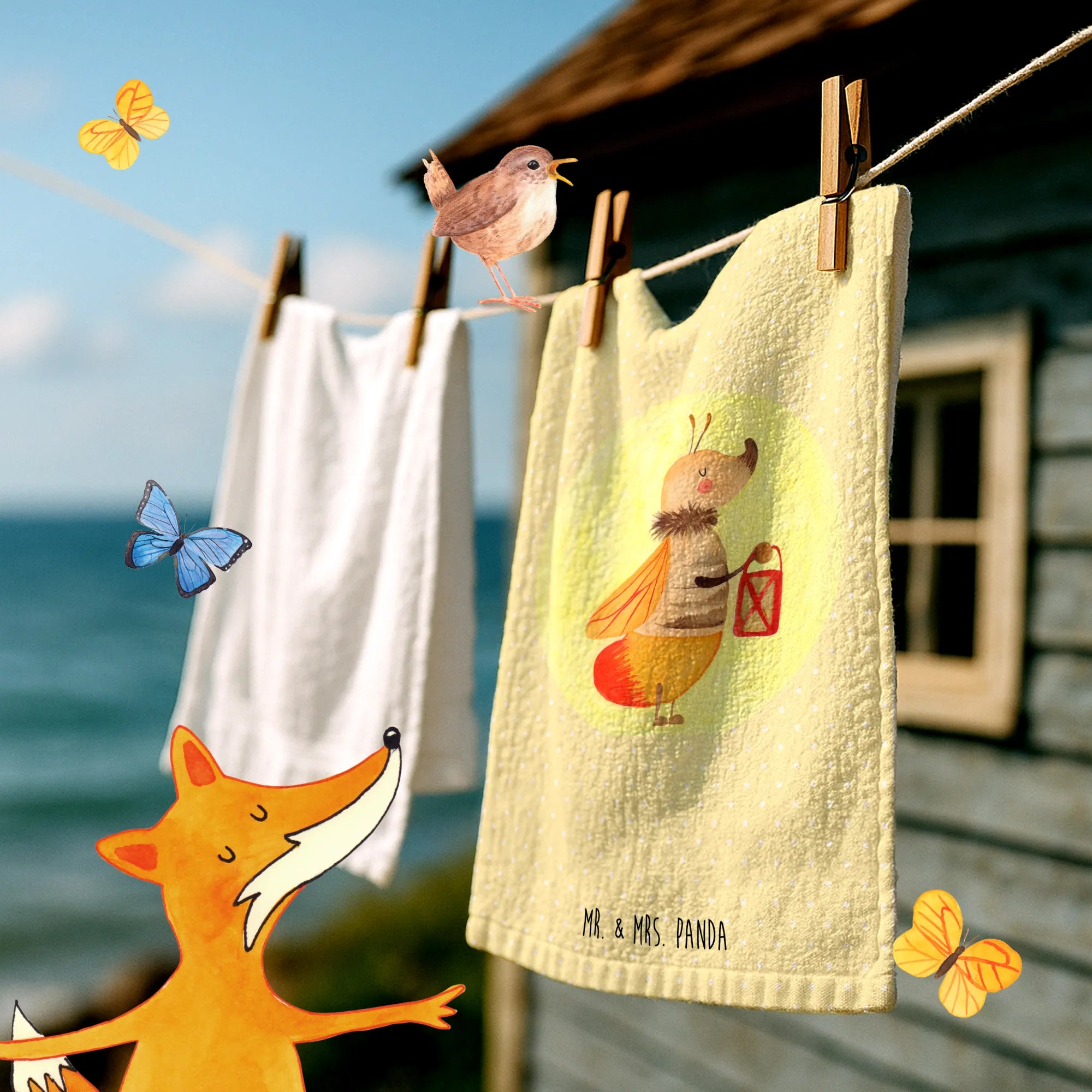 Willkommen in der Small World von Mr. & Mrs. Panda! Unser liebevoll gestaltetes Gästehandtuch Glühwürmchen bringt zauberhaften Charme in dein Badezimmer. Das niedliche Glühwürmchen mit Laterne wurde mit Aquarell-Charme illustriert und setzt auf einem pastellgelben Hintergrund einen warmen, fröhlichen Akzent.