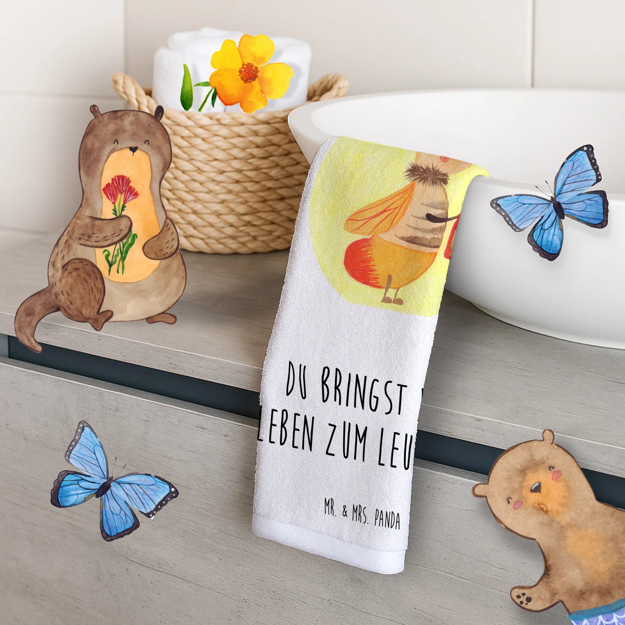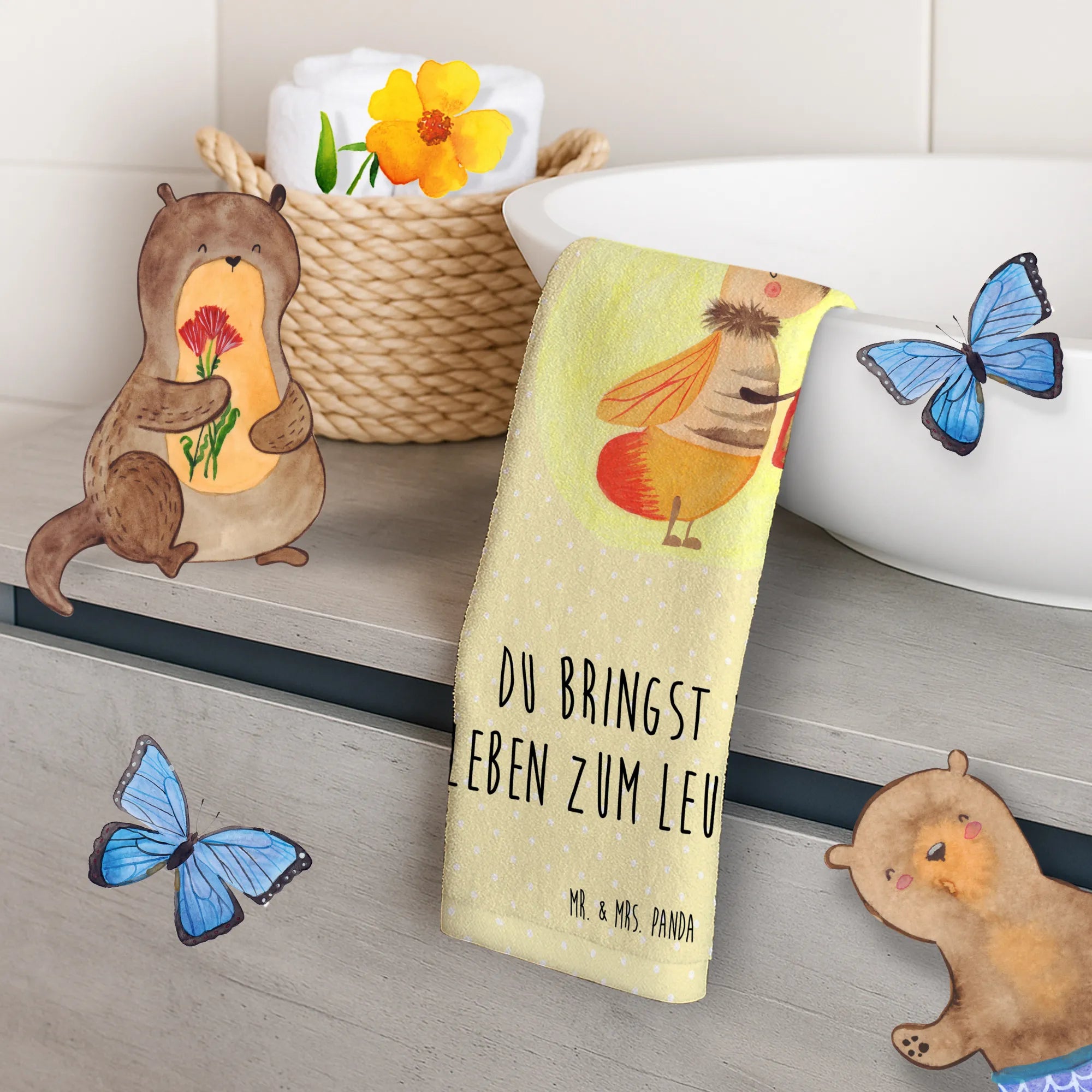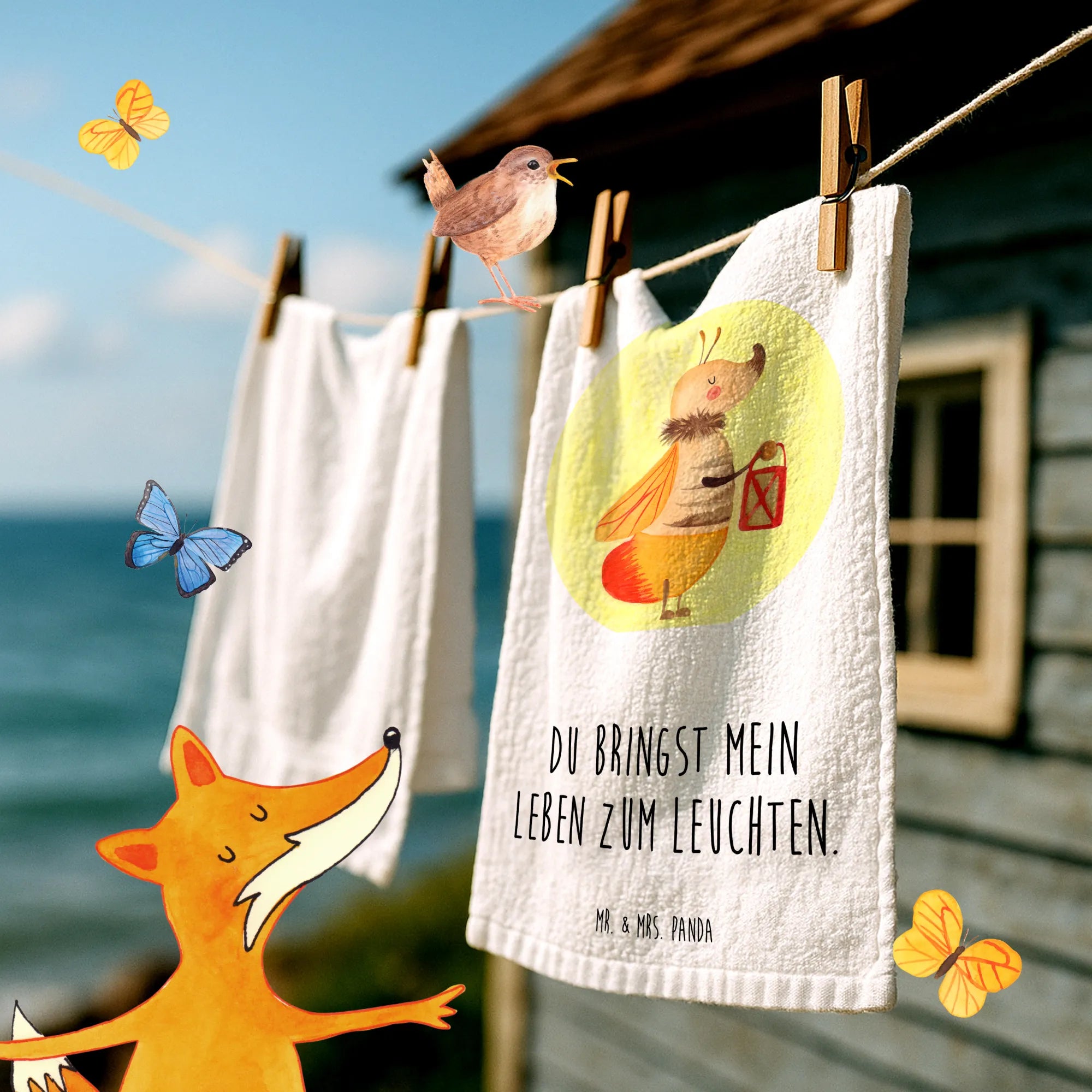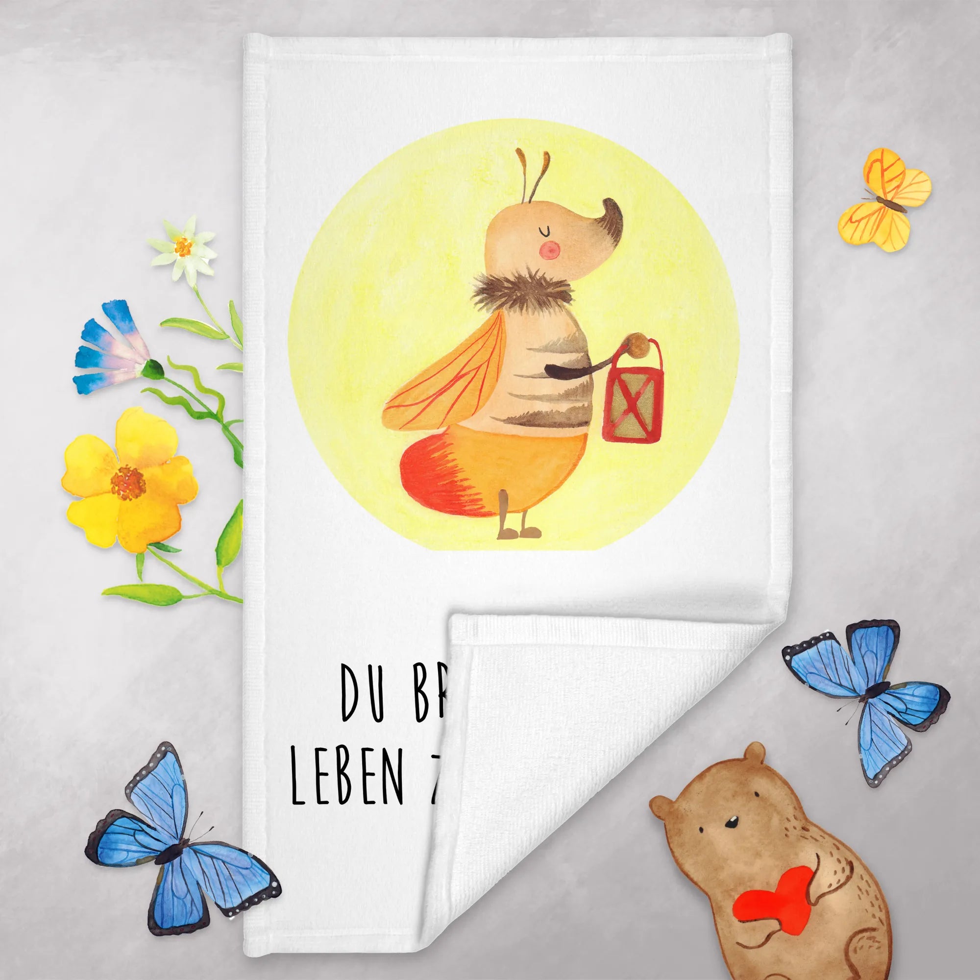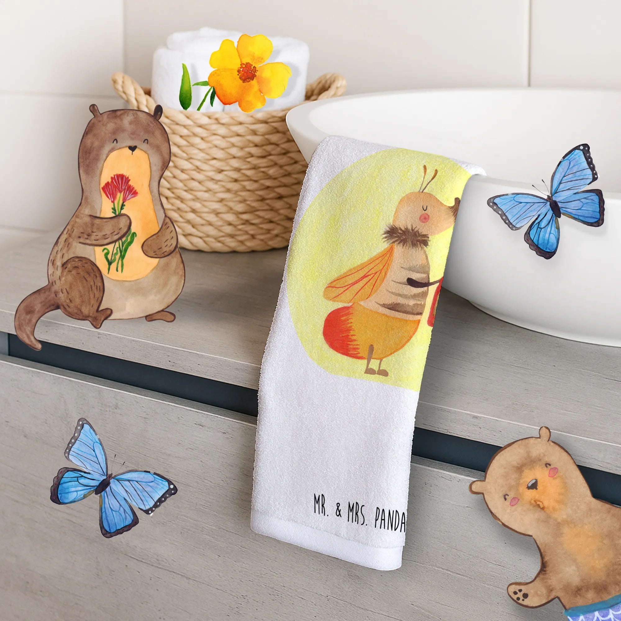 Willkommen in der Small World von Mr. & Mrs. Panda! Unser liebevoll gestaltetes Gästehandtuch Glühwürmchen bringt zauberhaften Charme in dein Badezimmer. Das niedliche Glühwürmchen mit Laterne wurde mit Aquarell-Charme illustriert und setzt auf einem pastellgelben Hintergrund einen warmen, fröhlichen Akzent.