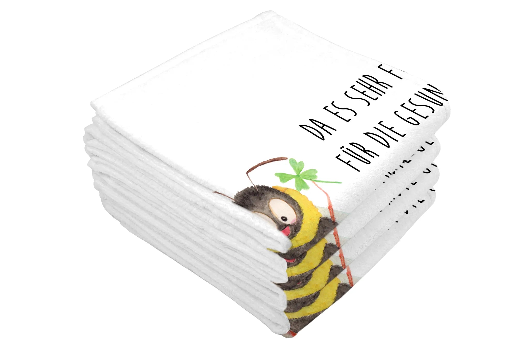 Das Gästehandtuch mit dem bezaubernden Motiv der Hummeln mit Kleeblatt ist das perfekte Geschenk für alle, die ein positives Lebensgefühl schätzen! Mit einer Größe von 300 mm x 500 mm bietet es genug Platz für deine Gäste und macht sicherlich Eindruck in jedem Badezimmer.
