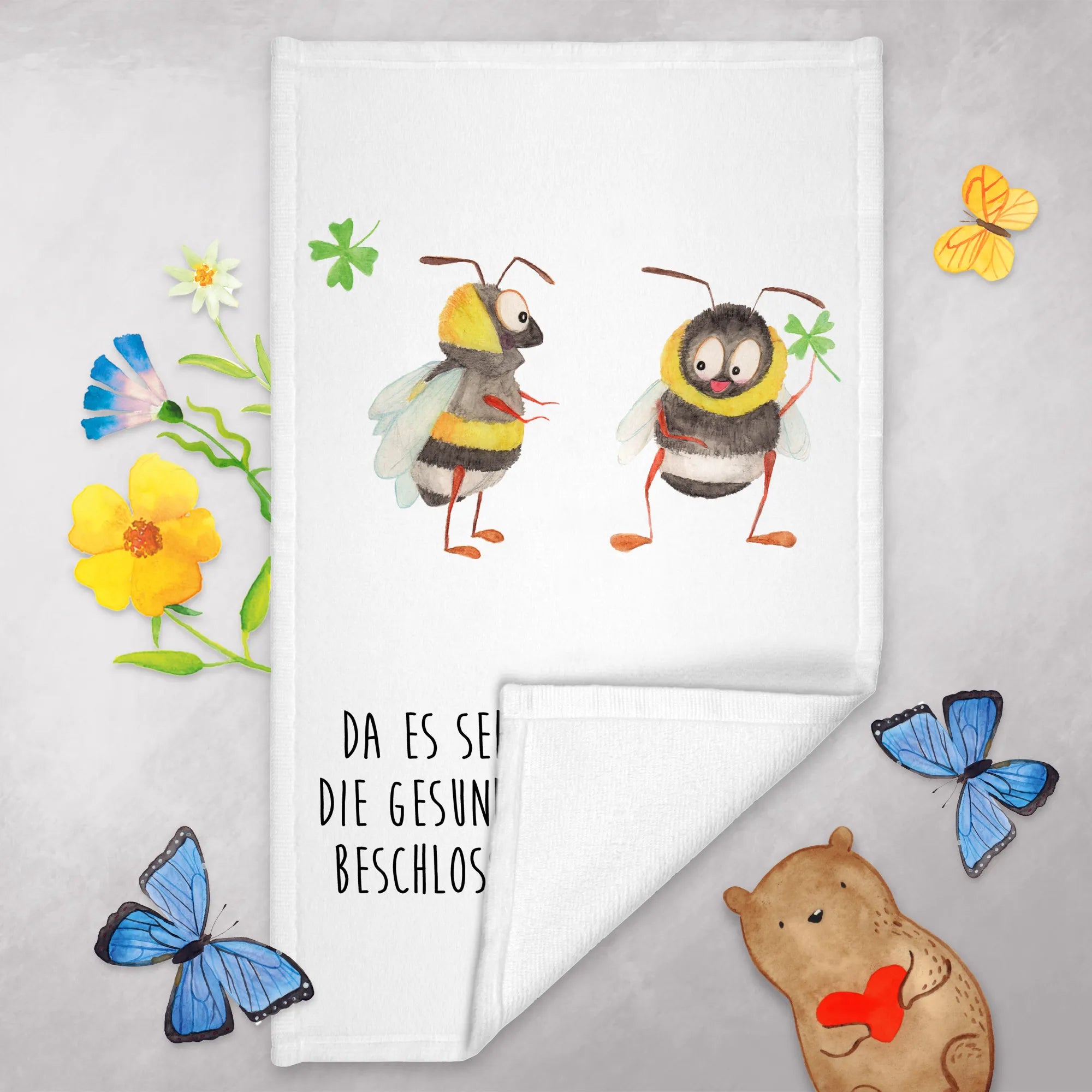 Gästehandtuch Hummeln Kleeblatt - 50 x 100 Handtuch - mit Spruch - Weiß