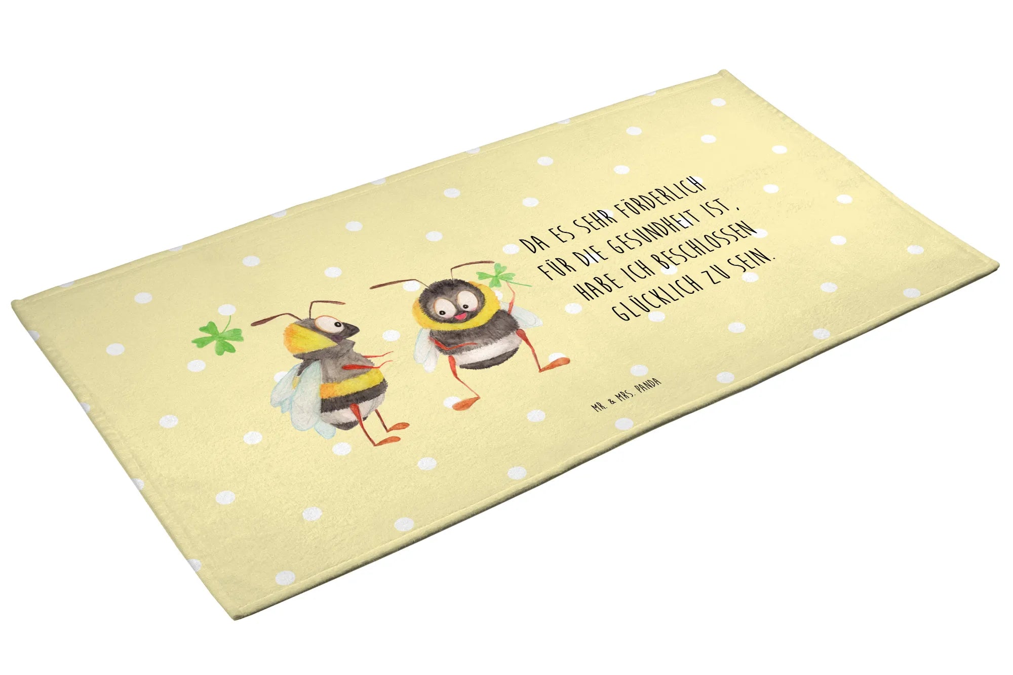 Das 50 x 100 Handtuch mit dem bezaubernden Motiv "Hummeln mit Kleeblatt" aus der Kollektion Small World von Mr. & Mrs. Panda ist das perfekte Geschenk für alle, die Freude und Glück verbreiten möchten!