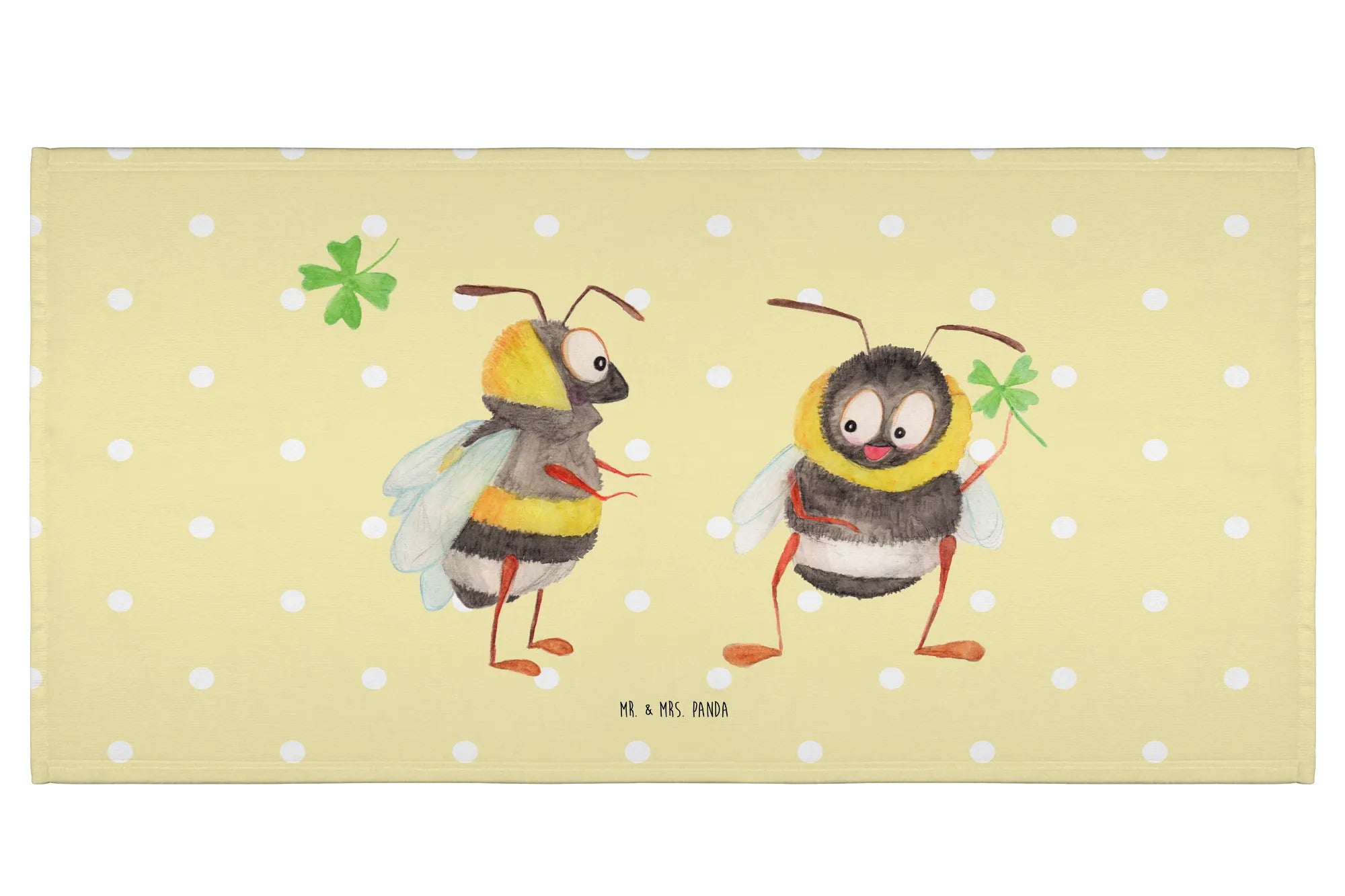 Das bezaubernde 50 x 100 Handtuch mit dem Motiven Hummeln und Kleeblatt von Mr. & Mrs. Panda ist das perfekte Geschenk für Groß und Klein. Mit seinen fröhlichen Farben und dem niedlichen Design bringt es gute Laune in jedes Badezimmer. Es zeigt zwei süße Hummeln, die sich liebevoll gegenüberstehen und gemeinsam ein Kleeblatt halten – ein Symbol für Freude und Verbundenheit. Perfekt für Kinder, Babys und alle Tierliebhaber! Dieses Handtuch ist nicht nur kuschelig weich, sondern auch hochwertig hergestellt aus einer flauschigen Baumwollmischung, die deine Haut schont und ideal für deine Gesichtspflege ist.
