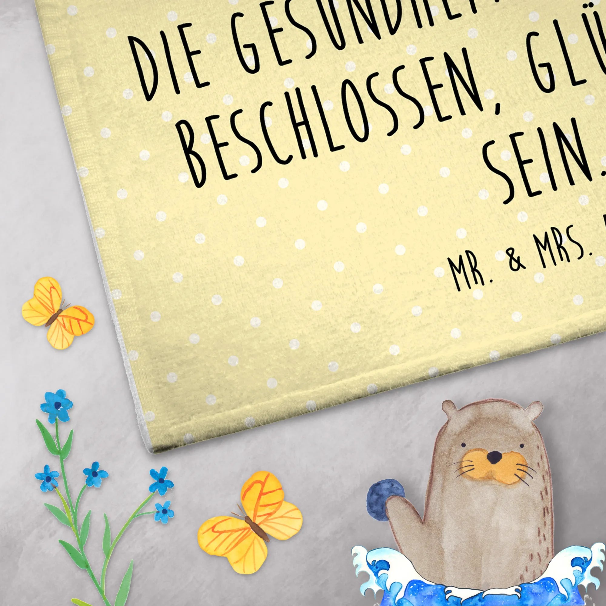 Das hochwertige Gästehandtuch von Mr. & Mrs. Panda ist genau das Richtige, um deinem Badezimmer einen Hauch von Eleganz zu verleihen! Gemessen an 300 mm x 500 mm und aus einer weichen Baumwollmischung hergestellt, vereint es Funktionalität und Stil. Die frisch bedruckten Motive und Sprüche sind ein echter Eyecatcher und sorgen für eine einladende Atmosphäre. Mit einem Gewicht von nur 60 g ist es leicht, fühlt sich aber gleichzeitig großartig auf deiner Haut an. Egal ob als Frotteehandtuch im Gästebad oder als hübsches Accessoire für dein eigenes Badezimmer, dieses Handtuch bringt Farbe und Freude in jeden Raum. Die allseitige Umrandung mit doppelten Nähten sorgt für zusätzliche Stabilität, sodass du lange Freude daran haben wirst. Pflege es leicht bei 30°C in der Maschine und trockne es bei niedriger Temperatur im Trockner. Verwandle dein Badezimmer mit diesem einzigartigen Gästehandtuch in eine gemütliche Wohlfühloase!