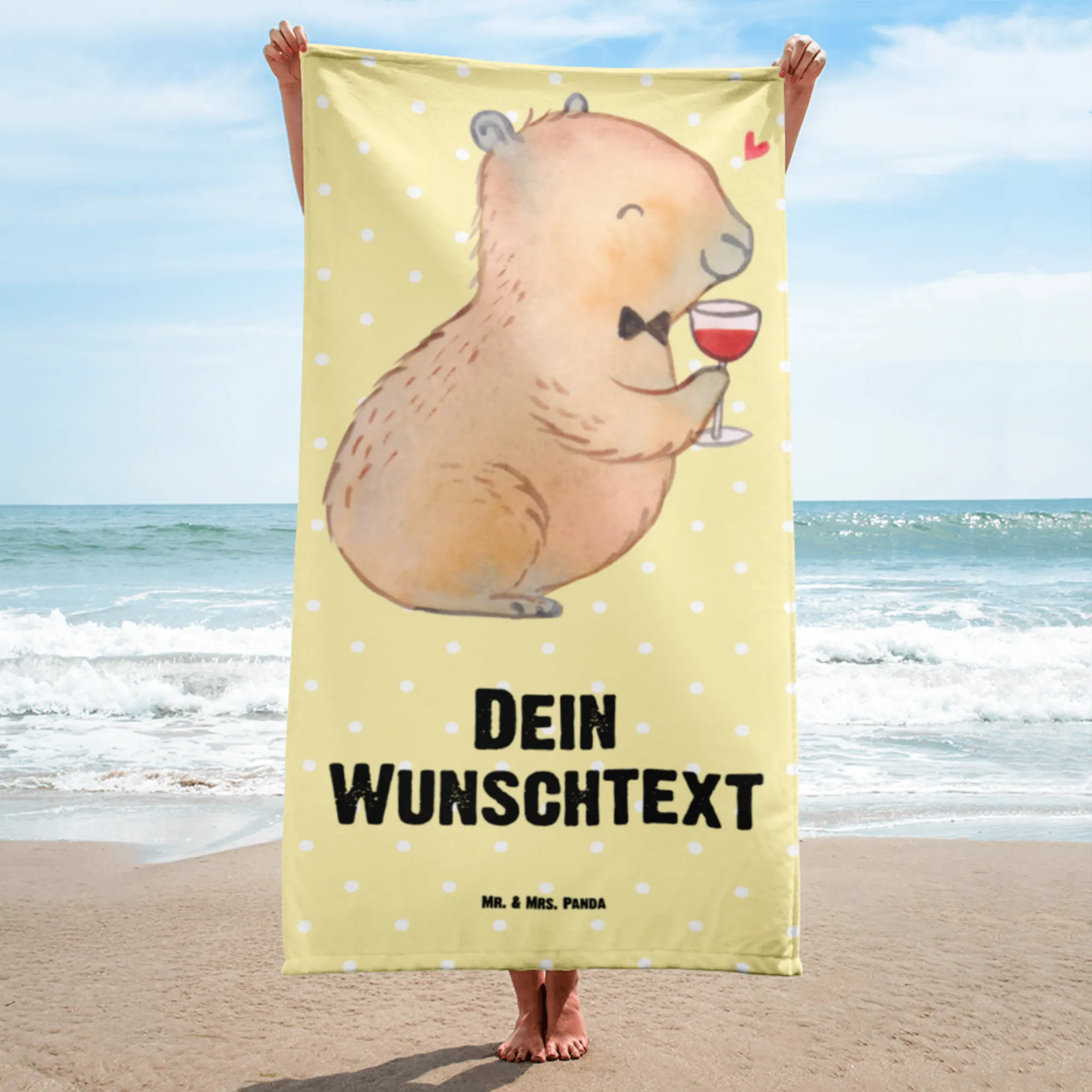Das personalisierte Badehandtuch mit dem fröhlichen Capybara-Weinmotiv von Mr. & Mrs. Panda ist das perfekte Geschenk für ganz besondere Anlässe! Dieses Handtuch kombiniert hohen Komfort mit einem Hauch von Spaß und Stil.