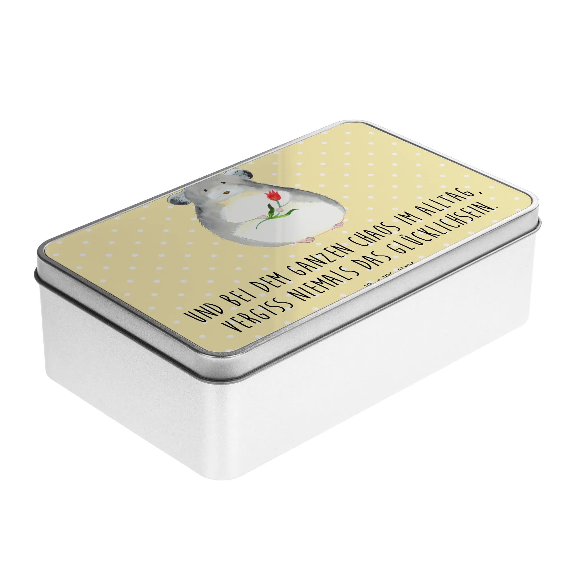 Das bezaubernde Chinchilla mit der Blume strahlt pure Herzenswärme aus und zaubert dir garantiert ein Lächeln ins Gesicht. Perfekt für alle Tierliebhaber, die manchmal im Büroalltag das Glücklichsein aus den Augen verlieren. Die kleine Dose erinnert dich daran, dass du auch im Chaos des Alltags kleine Glücksmomente sammeln kannst.