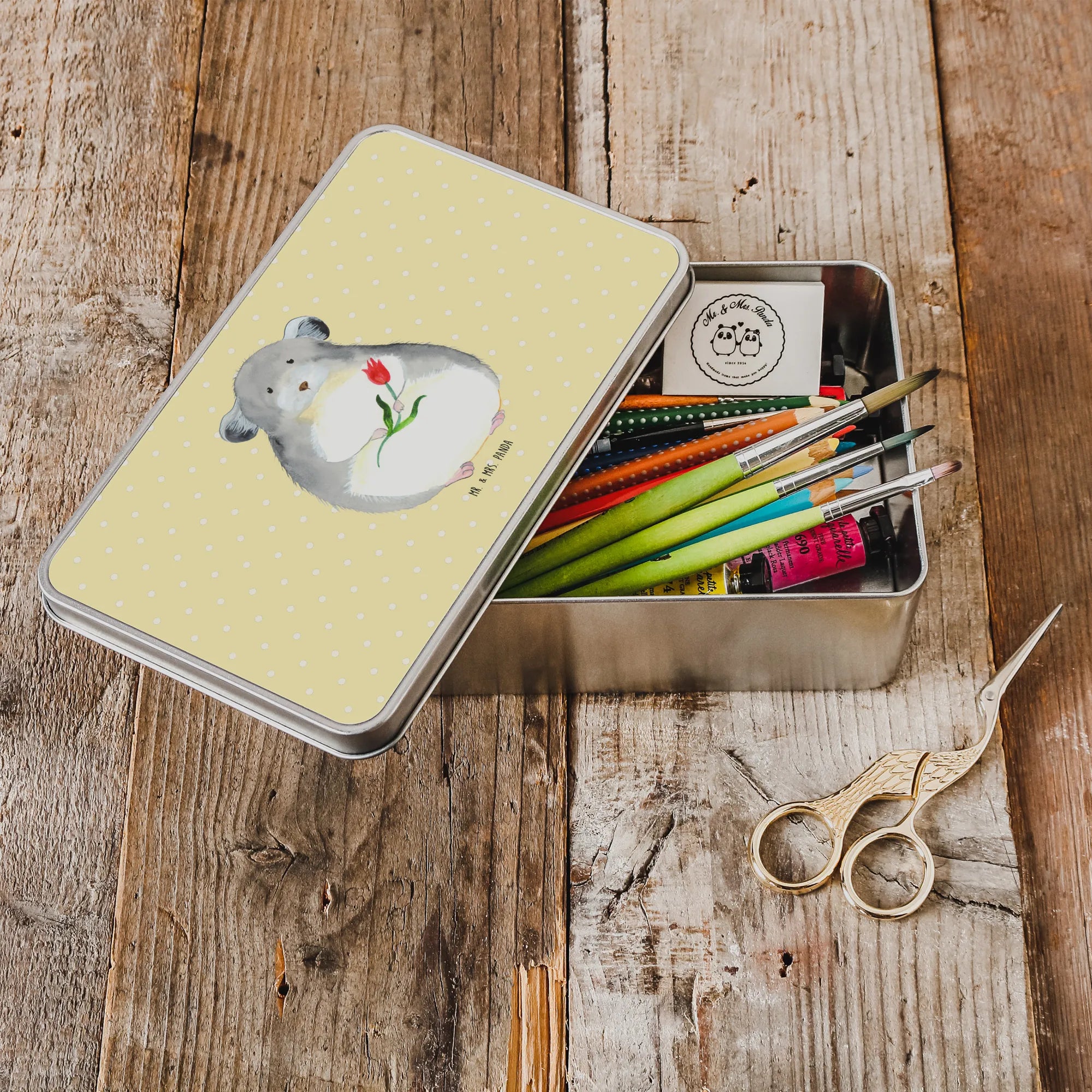 Entdecke die wunderschöne Metalldose rechteckig mit dem süßen Chinchilla-Motiv von Mr. & Mrs. Panda!