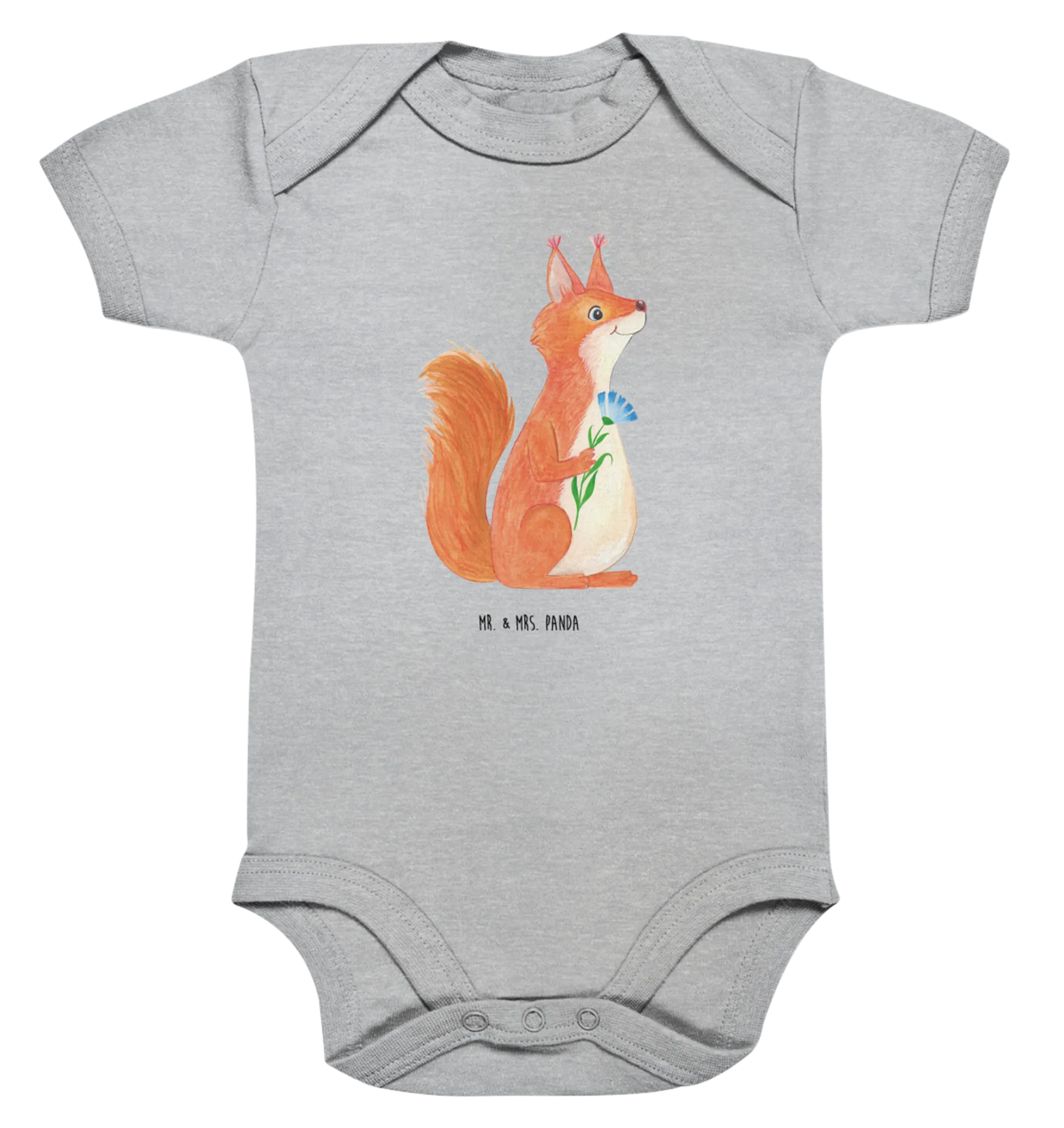 Dieser süße Organic Babybody von Mr. & Mrs. Panda ist ein kleines Herzensstück: Ein fröhliches Eichhörnchen hält eine Blume, in warmen Aquarellfarben gestaltet – ein Motiv, das sofort gute Laune macht. Als Babybody, Einteiler und strampelanzug ist er ein vielseitiger Begleiter für Alltag und besondere Momente.