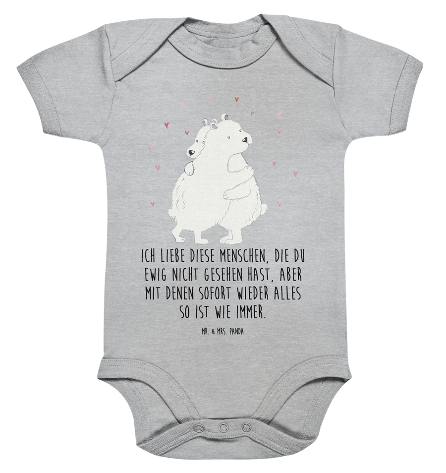 Organic Baby Body Eisbär Umarmen - 1. - 3. Monat - mit Spruch - Heather Grey