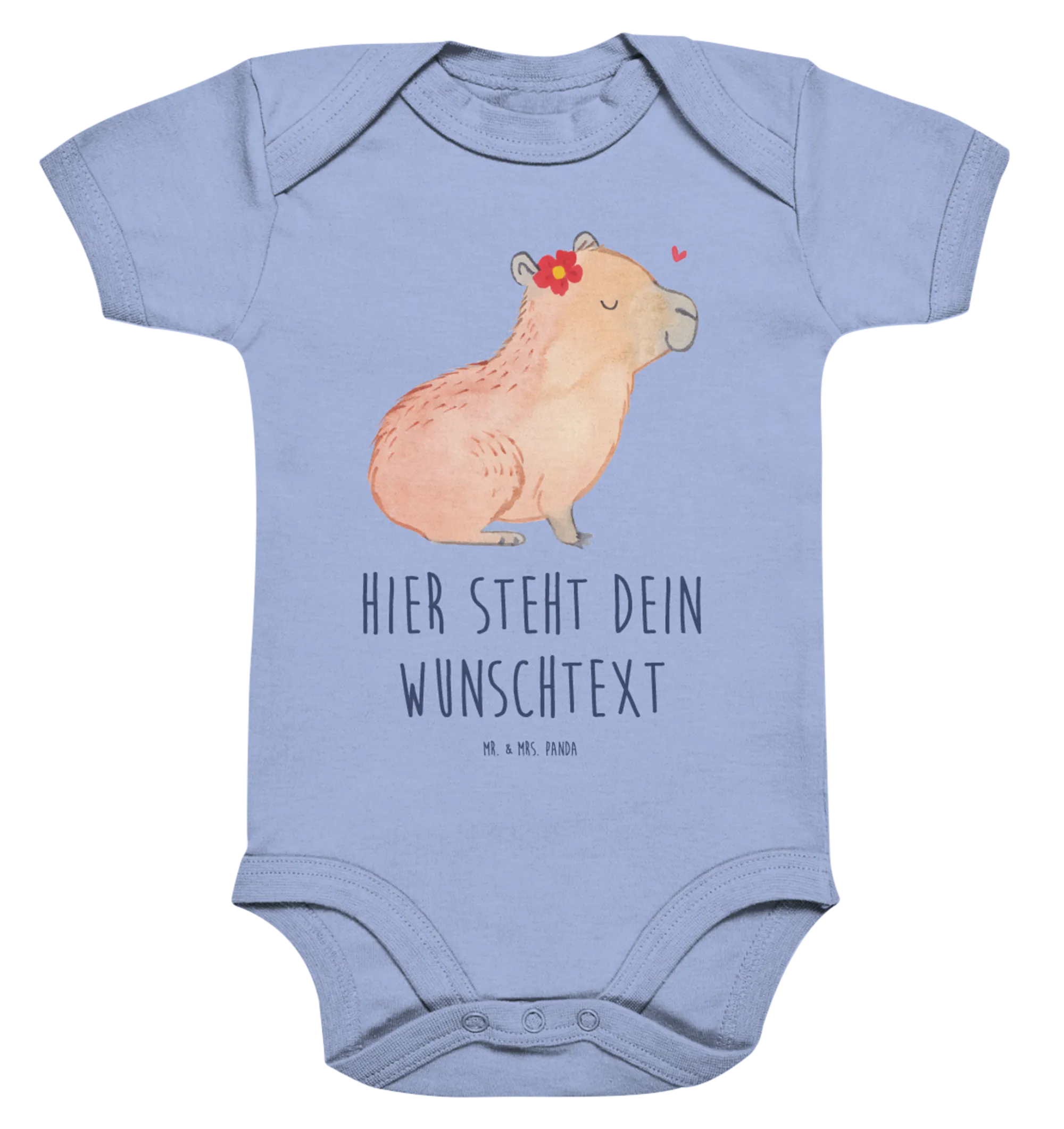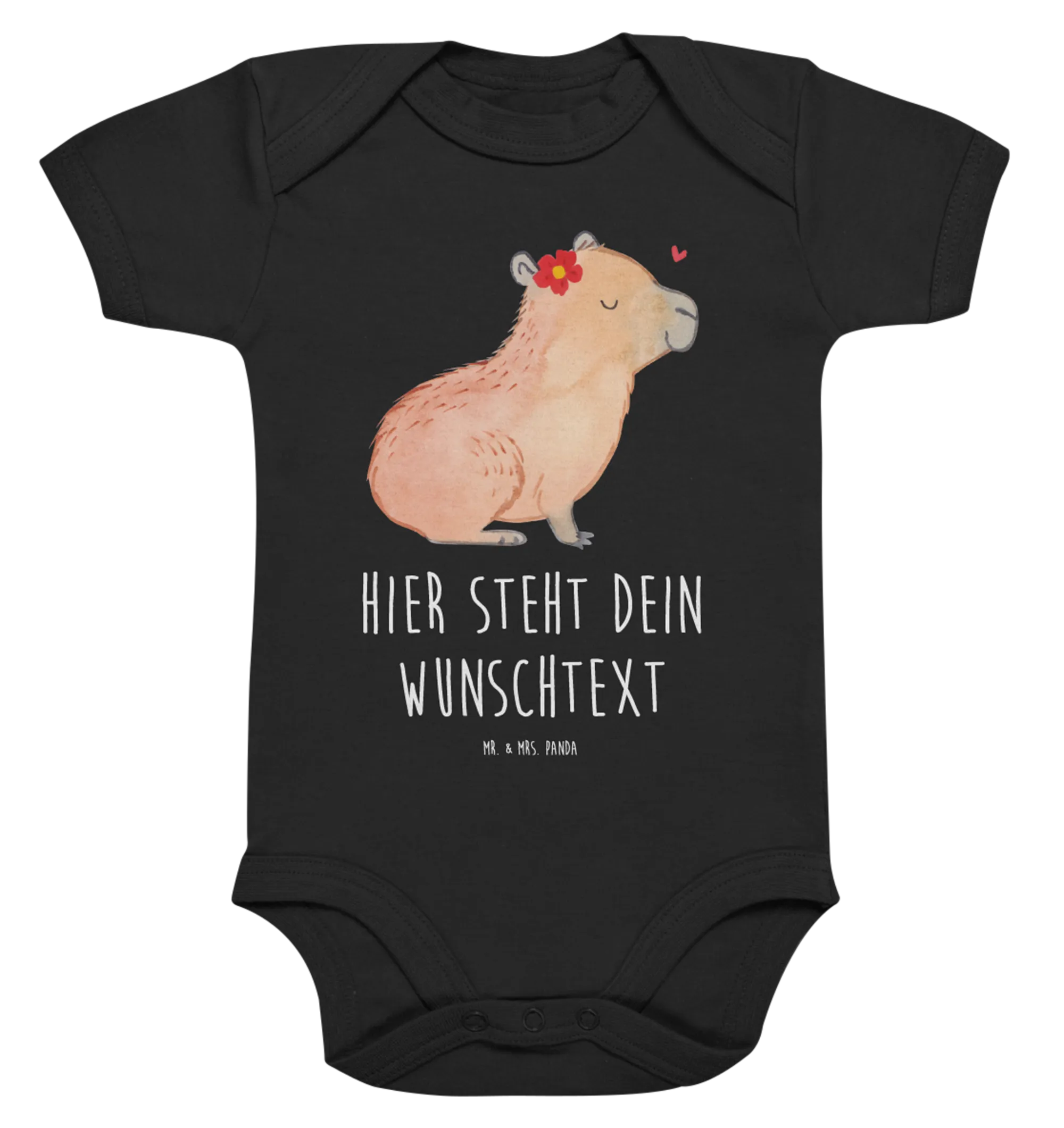 Das zauberhafte Capybara-Motiv mit der blühenden Blume und dem kleinen Herzchen strahlt eine besondere Wärme aus und ist liebevoll von Mrs. Panda handgezeichnet. Ob zur Geburt, zur Babyparty oder als süßes Geschenk zur Erstausstattung - dieser personalisierte Wickelbody ist vielfältig einsetzbar und macht ihn zu einem echten Lieblingsteil.