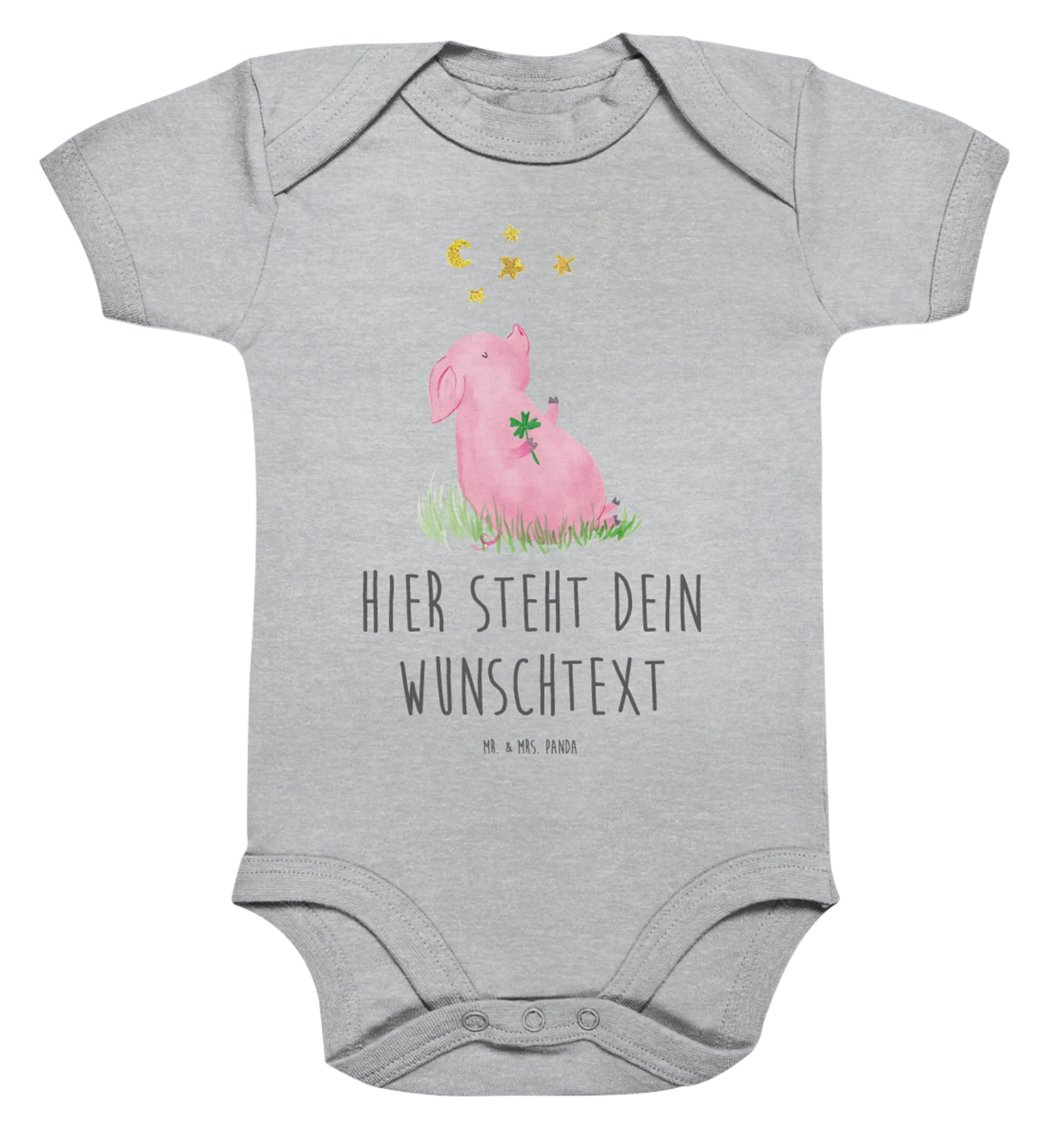 Auf der Suche nach dem perfekten Geschenk für kleine Glücksbringer? Dann ist der personalisierte Baby Body mit dem liebevollen Glücksschwein genau das Richtige!