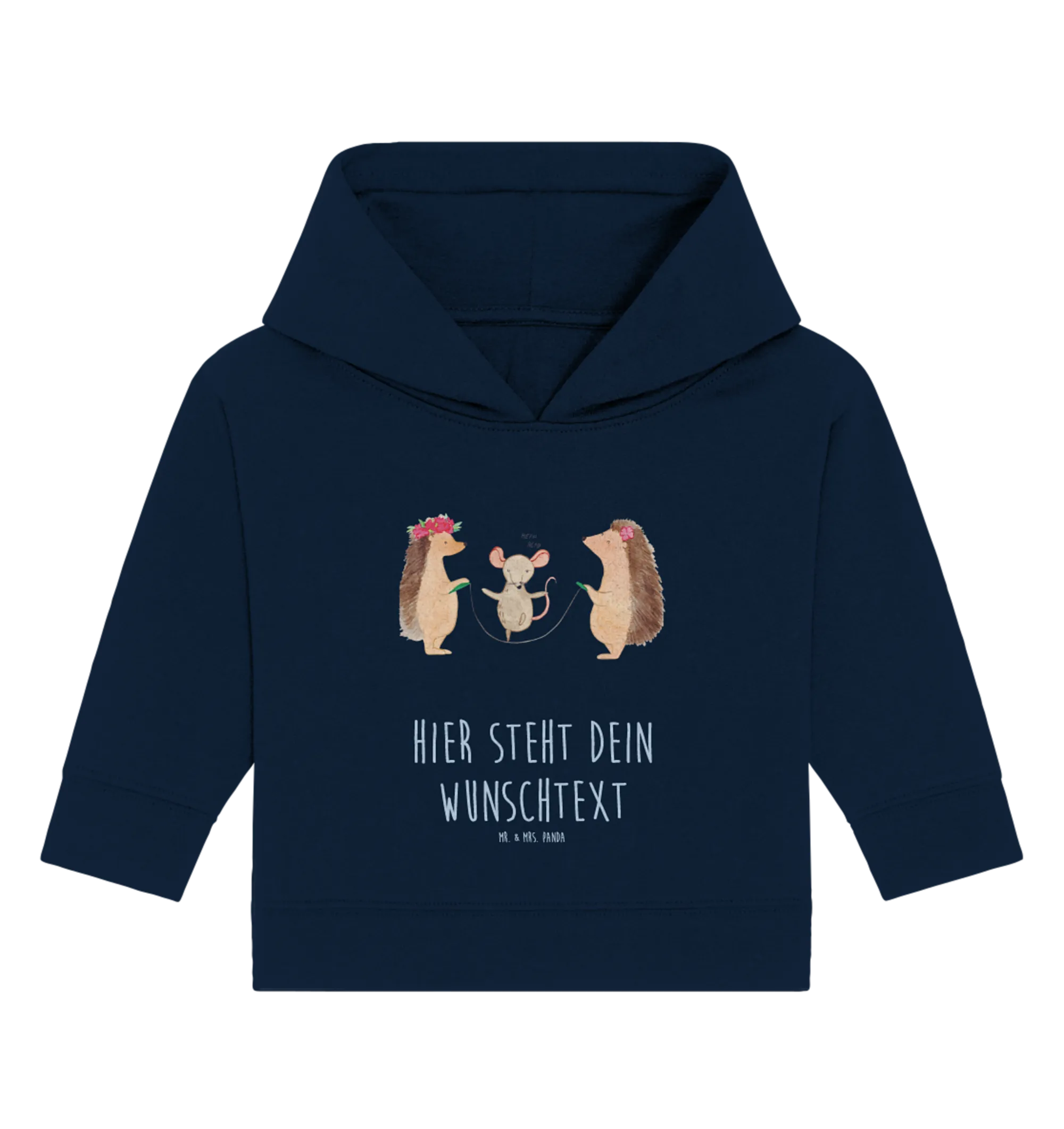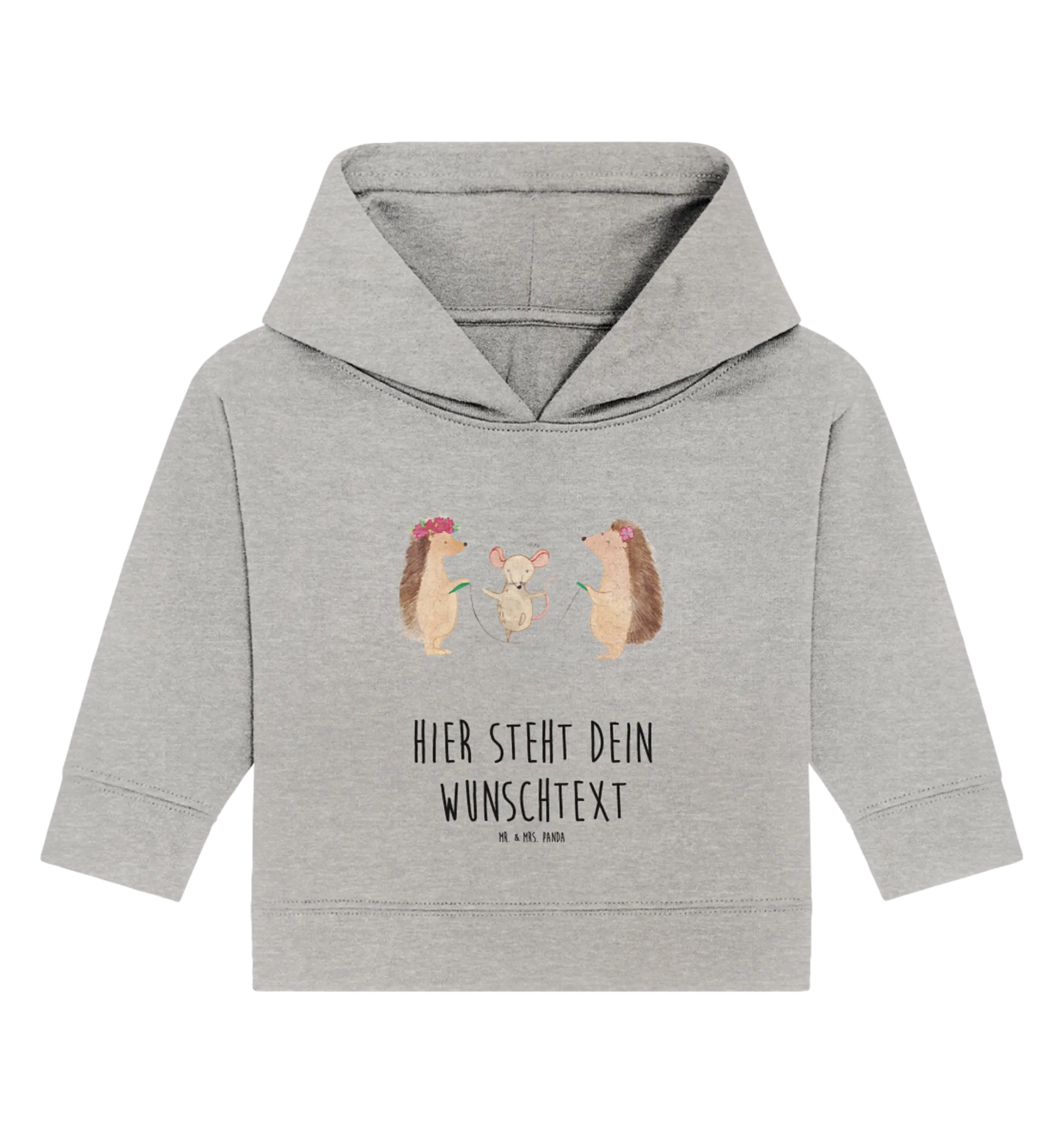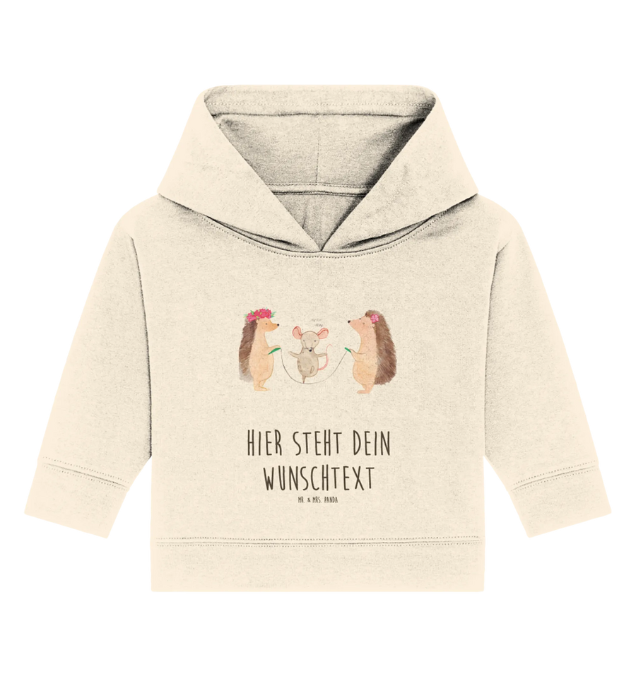 Entdecke den perfekten Begleiter für die Kleinsten mit unserem personalisierten Baby Hoodie mit dem bezaubernden Motiv Igel Seilhüpfen aus der besonderen Small World Kollektion von Mr. & Mrs. Panda. Dieser Hoodie ist nicht nur kuschelig und warm, sondern auch ein echter Hingucker! Die beiden putzigen Igel und die fröhliche Maus bringen Freude und gute Laune in den Alltag der Kleinen.