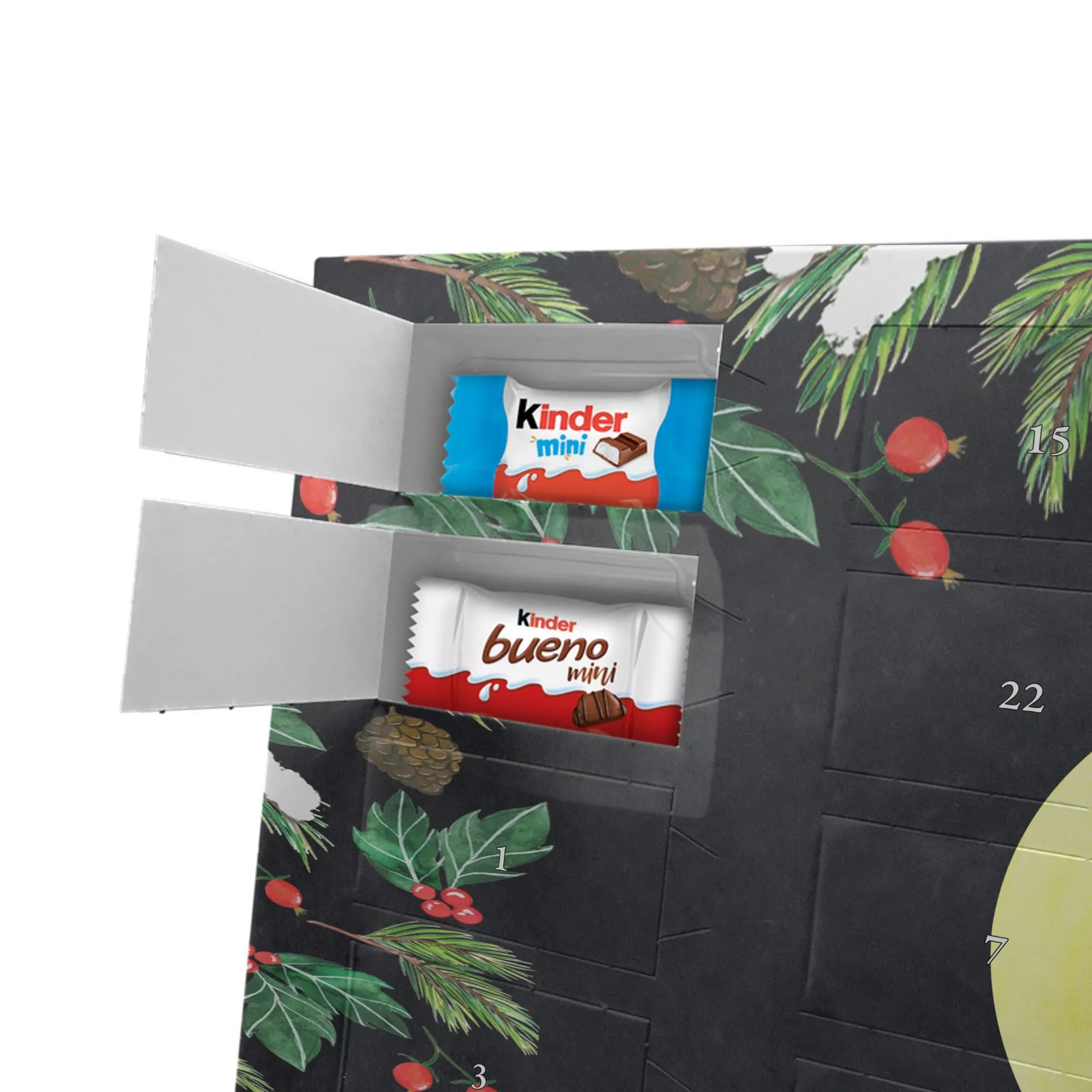 Personalisierter Schoko-Adventskalender von Mr. & Mrs. Panda – liebevoll gestaltet und ideal als individuelles Geschenk in der Adventszeit. Wir bedrucken den Kalender mit zauberhaften Motiven & herzlichen Sprüchen und personalisieren ihn mit deinem Wunschnamen oder Wunschtext. Die hochwertige Druckqualität kombiniert mit einer seidenmatten Oberflächenveredelung sorgt für ein edles Erscheinungsbild, und die bedruckten Seitenflächen geben dem Motiv zusätzlichen Charme. Der Kalender kann aufgehängt oder aufgestellt werden, sodass du ihn flexibel platzieren kannst. Gefüllt ist der Kalender mit Celebrations, die 24 hochwertige Überraschungen in 8 verschiedenen Sorten beinhalten: Maltesers, Mars, Snickers, Twix, Milky Way, Bounty, Galaxy und Galaxy Caramel. Maße: 325 mm x 225 mm x 27 mm – handlich und doch großzügig für die kleinen Leckereien hinter den Türchen. Ob für Kinder, Partner oder beste Freunde: dieser personalisierte Schoko-Adventskalender macht das Warten auf Weihnachten bunter und leckerer. Verschenke eine persönliche Erinnerung und jeden Tag ein kleines Schokoladen-Glück!
