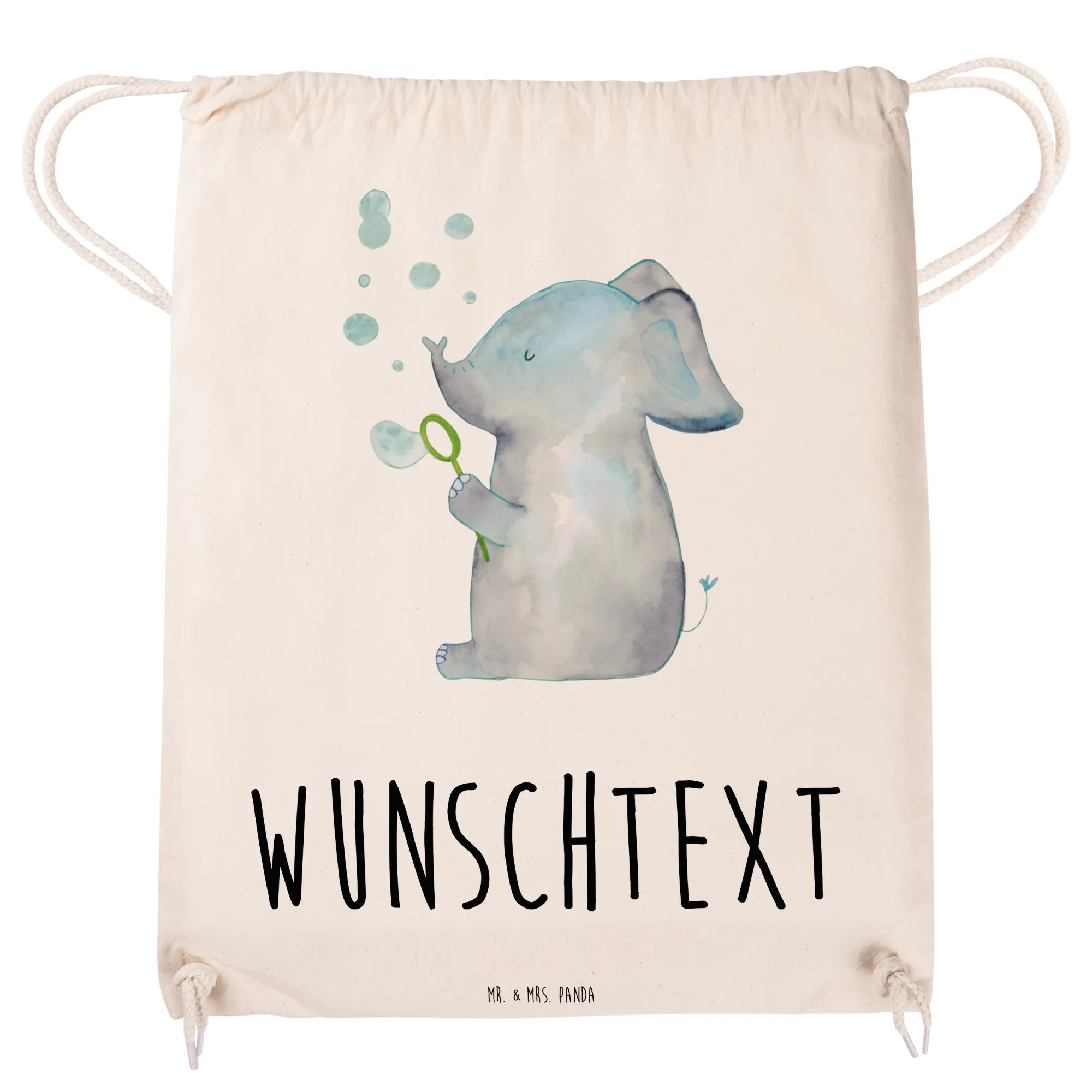 Entdecke den perfekten Begleiter für Sport und Freizeit – unseren personalisierten Sportbeutel mit dem zauberhaften Motiv "Elefant Seifenblasen" aus der bezaubernden Small World Kollektion von Mr. & Mrs. Panda.
