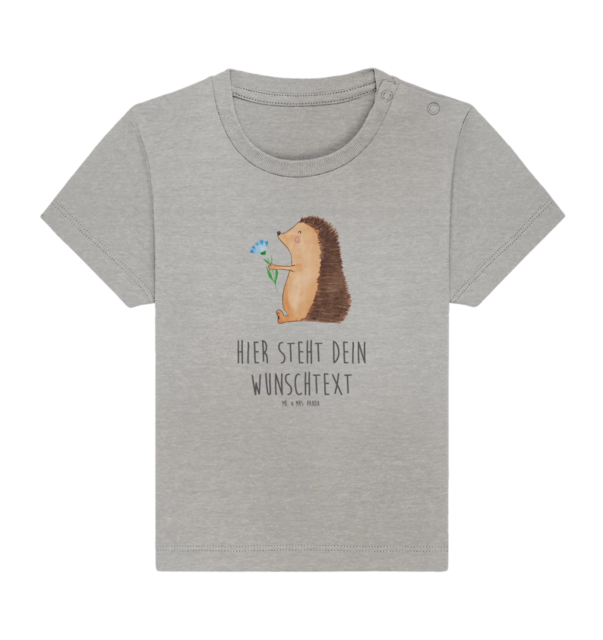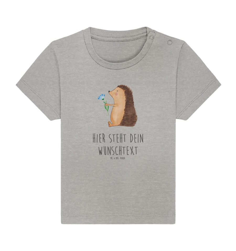 Das personalisierte Baby T-Shirt mit dem süßen Igel mit Blume aus der Small World Kollektion von Mr. & Mrs. Panda ist das perfekte Geschenk für kleine Kämpfer und ihre Eltern. Die niedlichen Tiermotive, wie unser putziger Igel, bringen Freude und Farbe in den Alltag. Das T-Shirt wird aus hochwertiger, ökologischer Baumwolle gefertigt und sorgt somit für ein angenehmes Tragegefühl bei Deinem kleinen Schatz. Die sanfte Farbgebung in Heather Grey lässt die fröhlichen Motive besonders schön zur Geltung kommen.