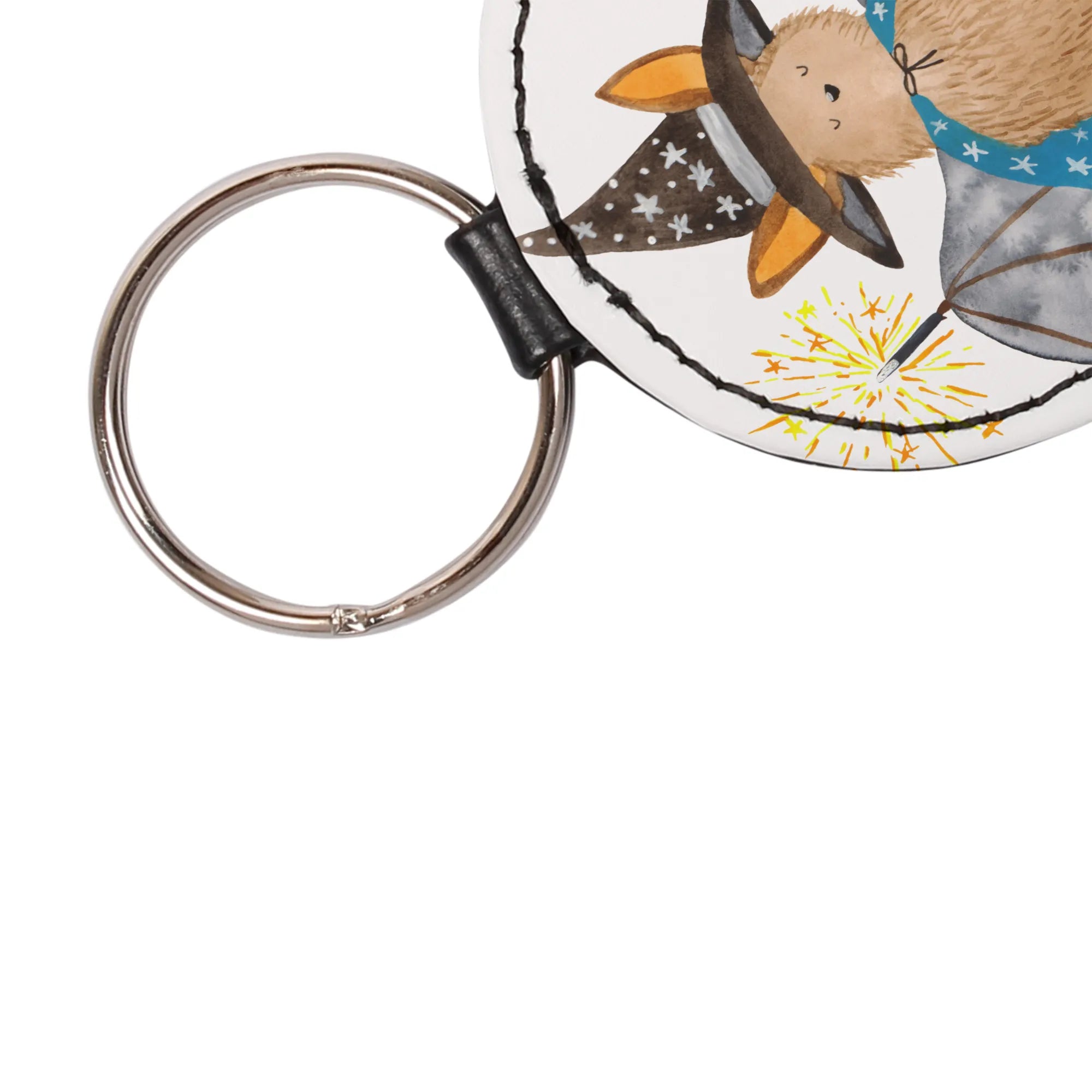 Du suchst nach dem perfekten Geschenk? Dann ist der Rund Schlüsselanhänger mit dem zauberhaften Motiv "Fledermaus Zauberer" aus der Small World Kollektion von Mr. & Mrs. Panda genau das Richtige!