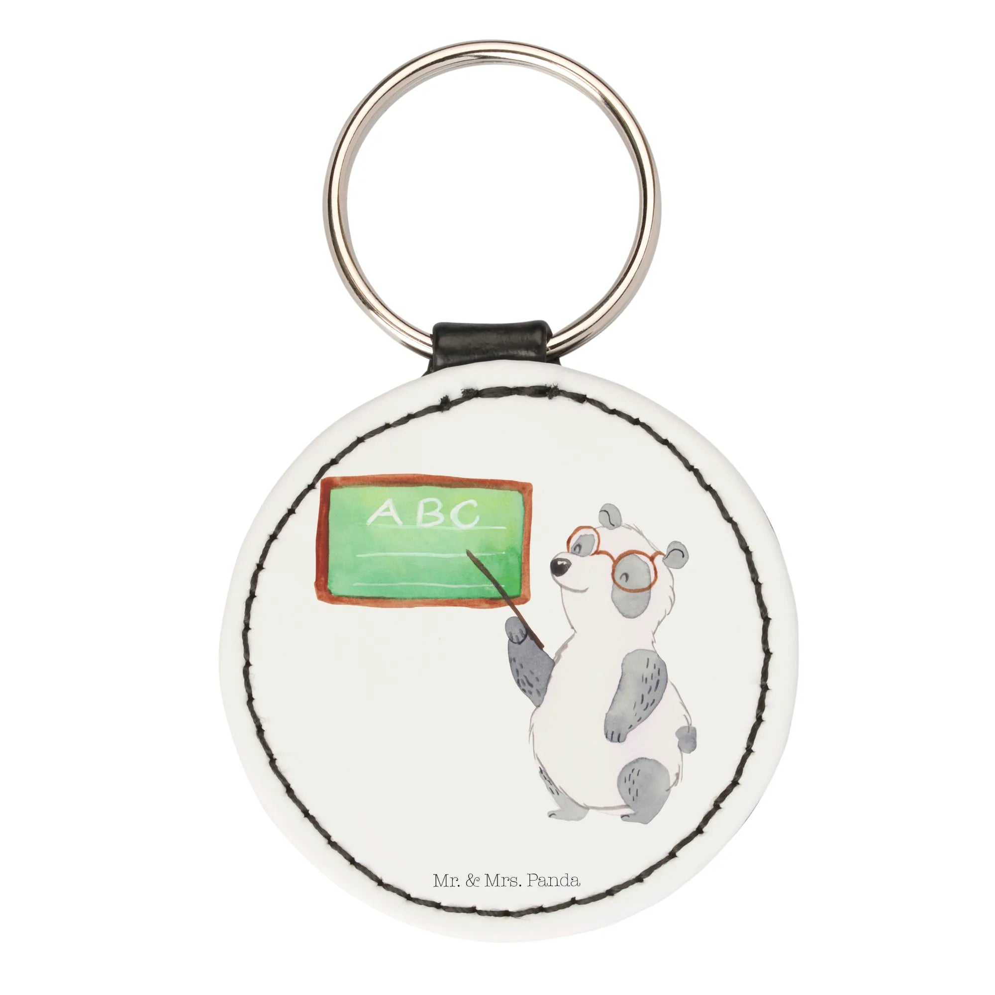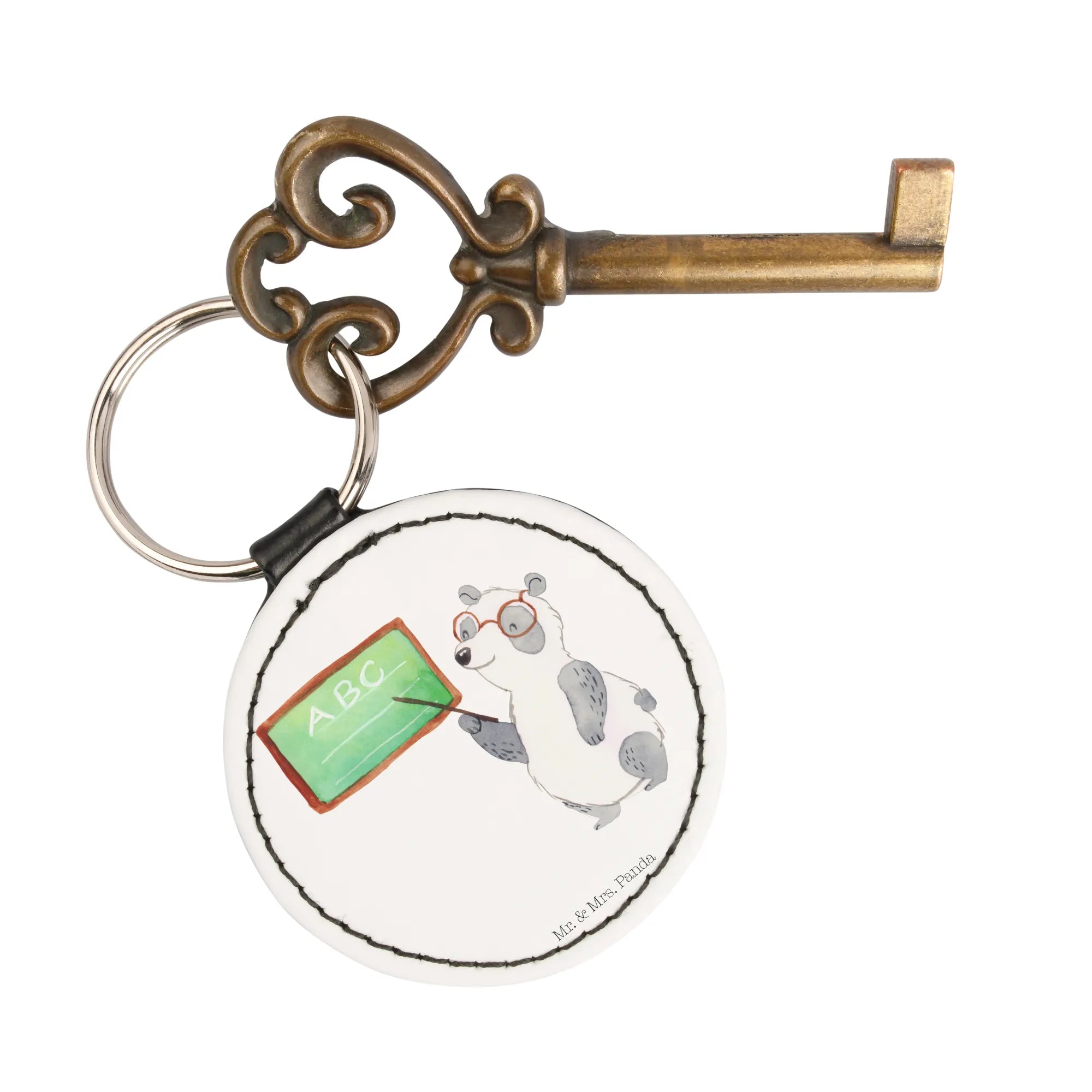 Rund Schlüsselanhänger Panda Lehrer - Weiß
