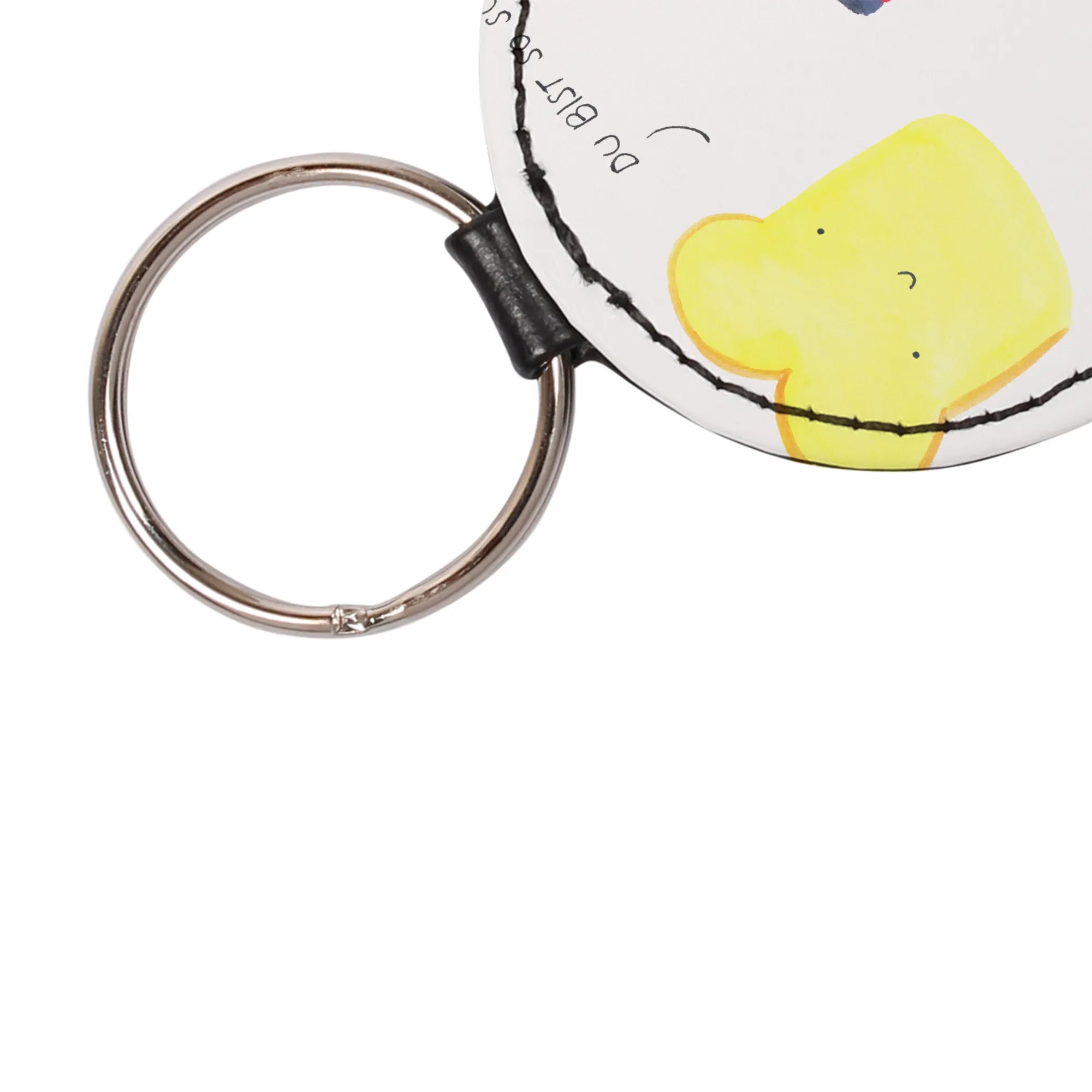 Mach deinen Schlüsselbund zum Hingucker mit dem Rund Schlüsselanhänger von Mr. & Mrs. Panda! Mit einem Durchmesser von 50 mm und aus edlem Premium Kunstleder gefertigt, zieht er die Blicke auf sich. Jeder Schlüsselanhänger ist mit fröhlichen Motiven und Sprüchen bedruckt, die dir ein Lächeln ins Gesicht zaubern. Versiegelt für zusätzliche Haltbarkeit, ist er der perfekte Glücksbringer für dich oder deine Freunde. Dieser schöne Schlüsselanhänger eignet sich ideal als Taschenanhänger oder als Geschenk. Er wird liebevoll in einer ansprechenden Geschenkverpackung geliefert, die Freude beim Schenken verspricht.