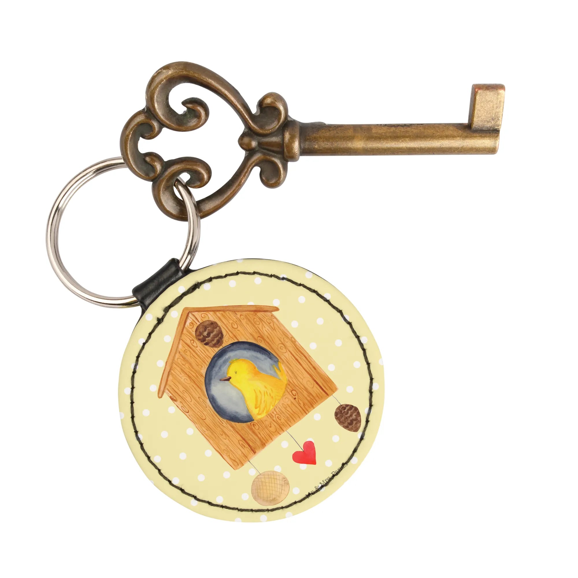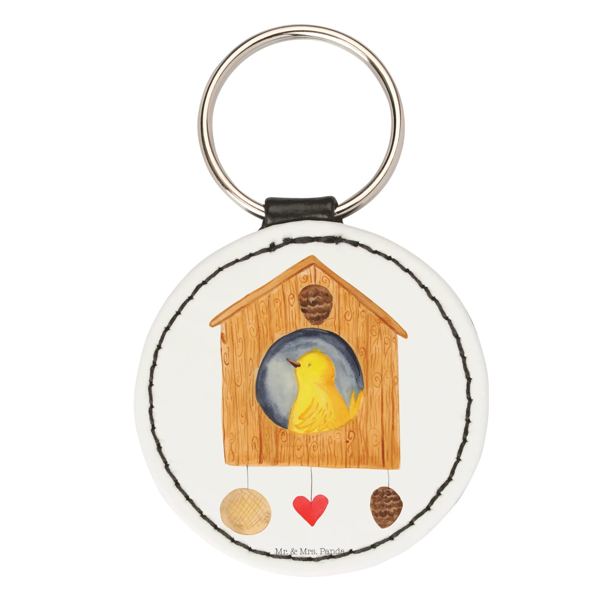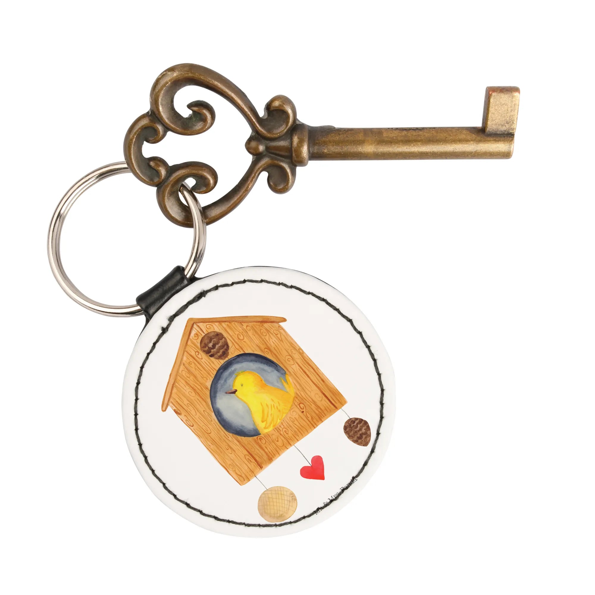 Rund Schlüsselanhänger Vogel Haus - Weiß