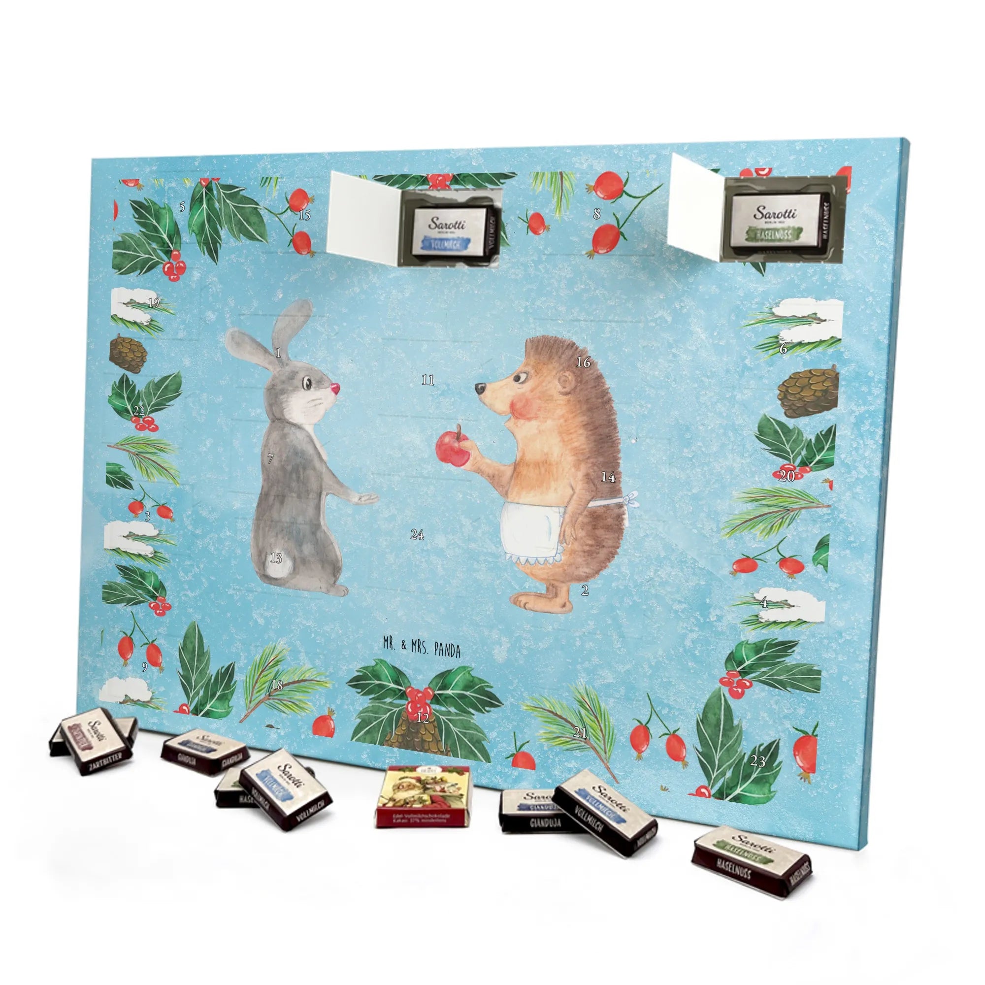 Mr. & Mrs. Panda Schoko Adventskalender „Liebe ist nie ohne Schmerz“ – ein zärtliches Geschenk aus der Small World Kollektion. Das liebevoll illustrierte Motiv mit dem Hasen und dem Igel trägt den versöhnlichen Spruch „Liebe ist nie ohne Schmerz“, sagte der Hase und umarmte den Igel. und erinnert daran, dass Liebe trotz Schmerz schön und tröstlich sein kann.