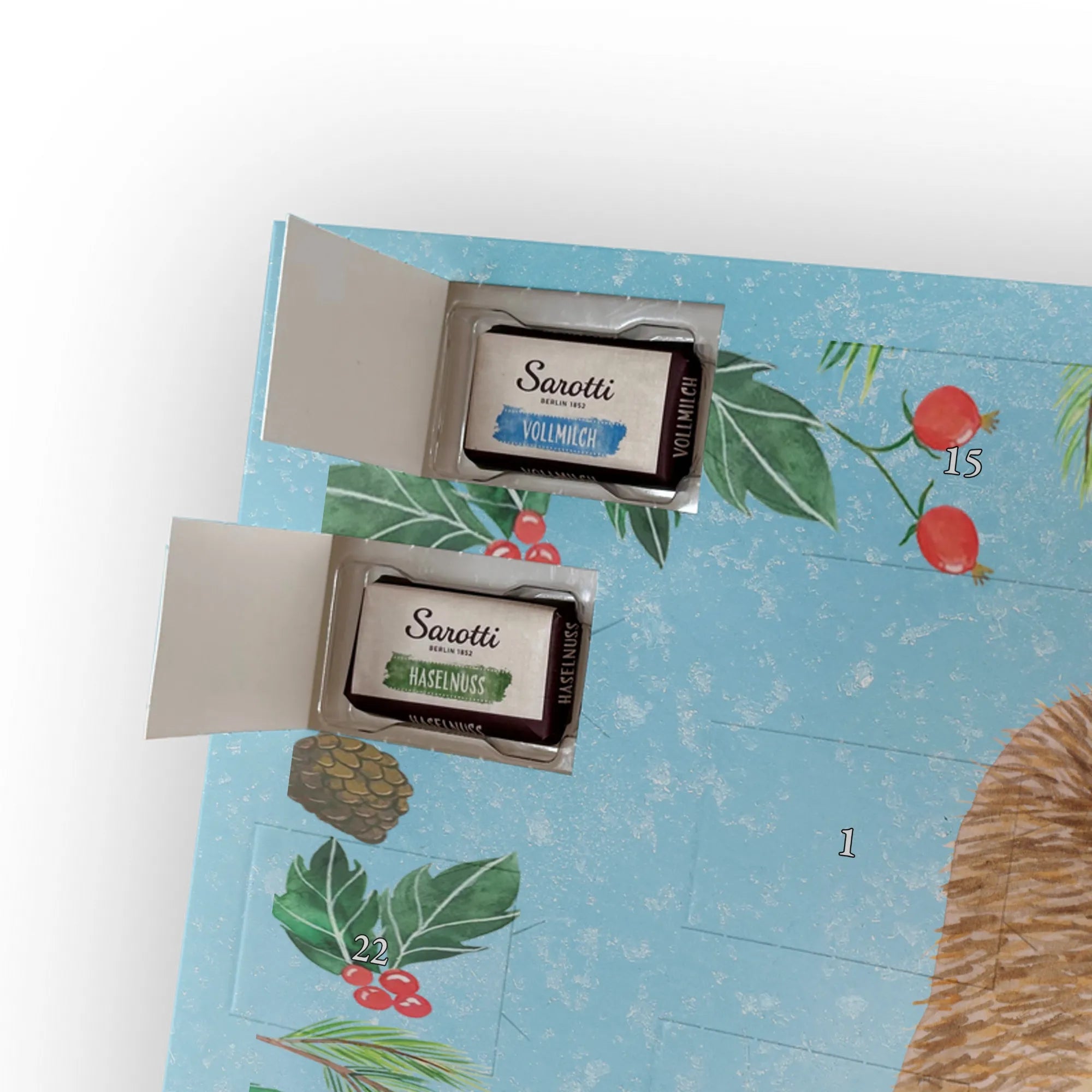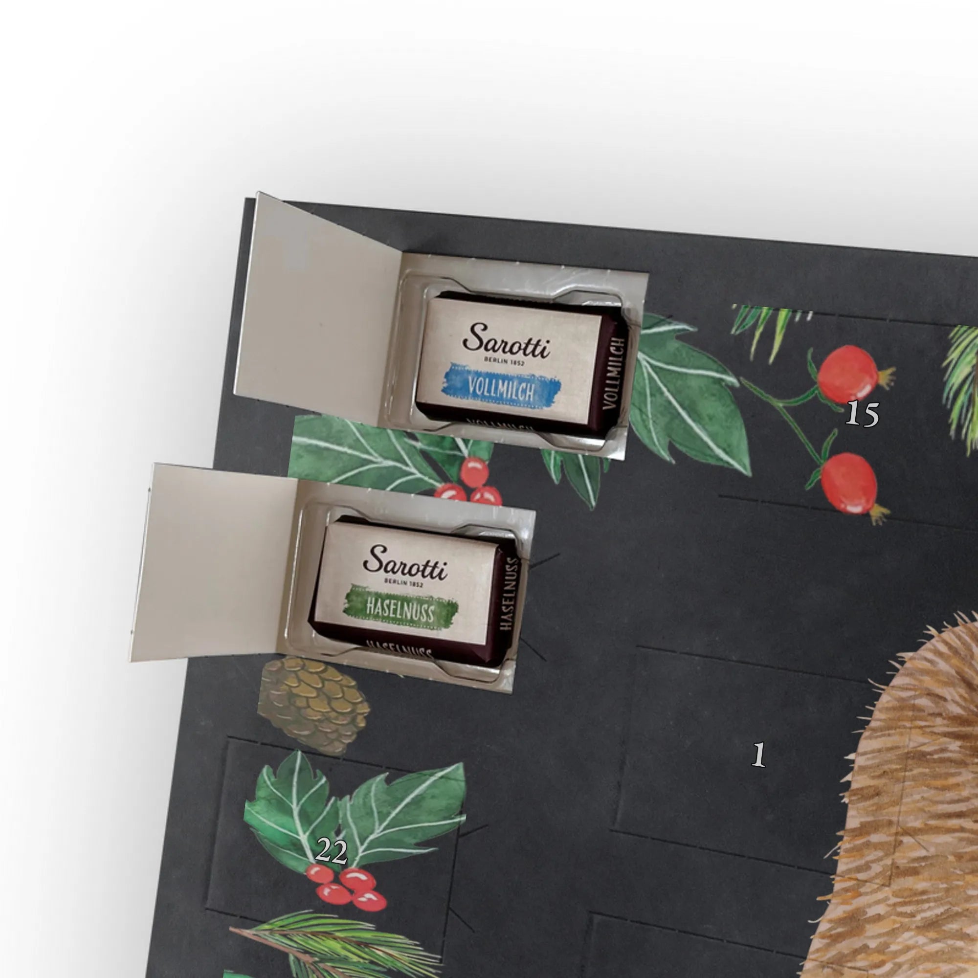 🐼 SCHOKOLADEN-ADVENTSKALENDER: Edler, seidenmatter Druck mit liebevollen Illustrationen.