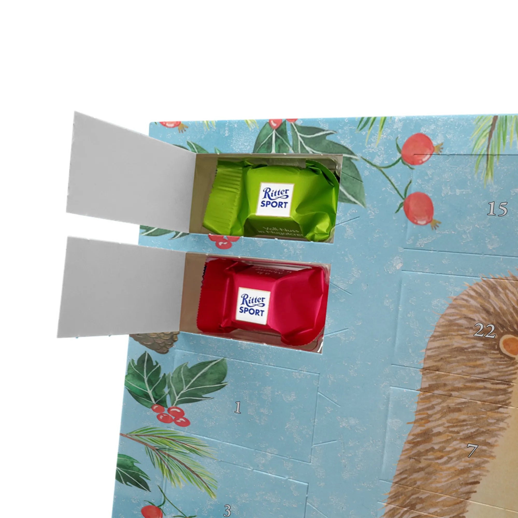 adventskalender süßigkeiten Igel Grillen - Classic - mit Spruch - Eisblau