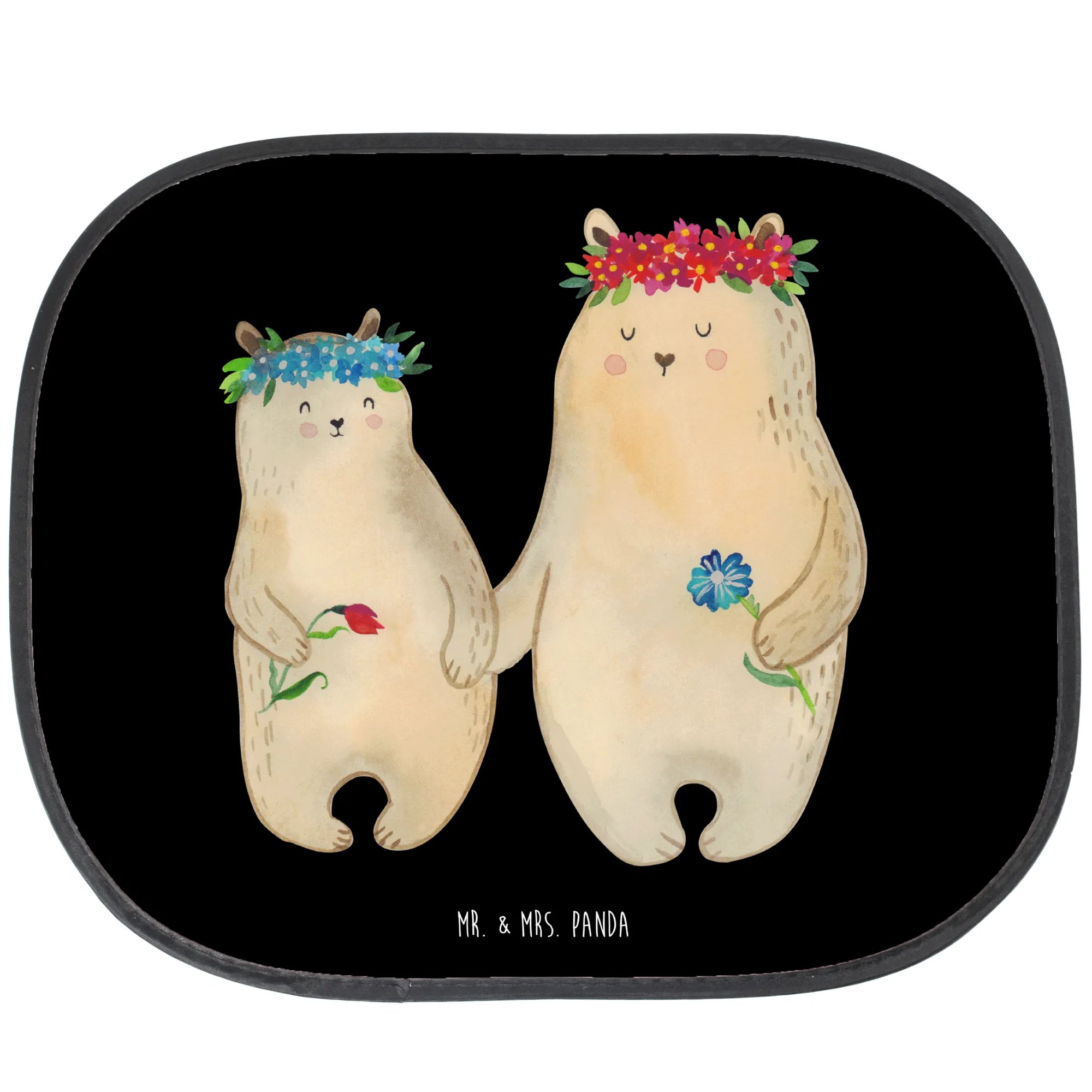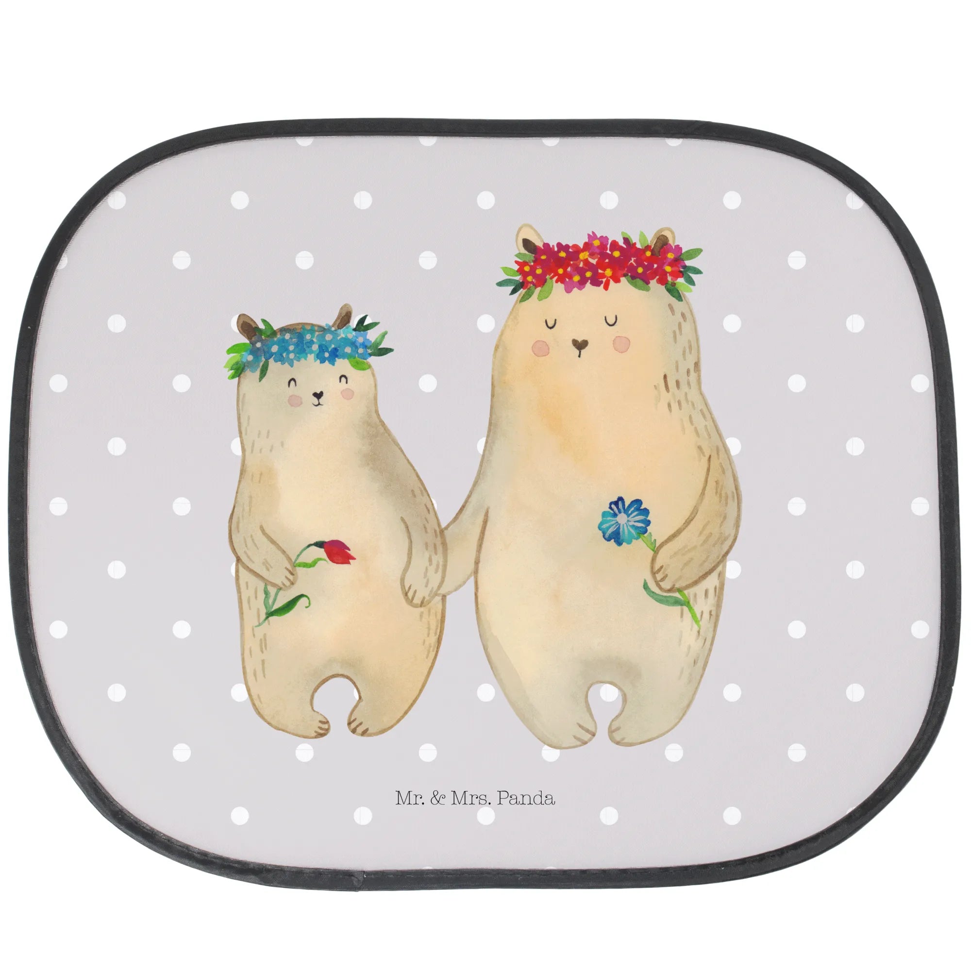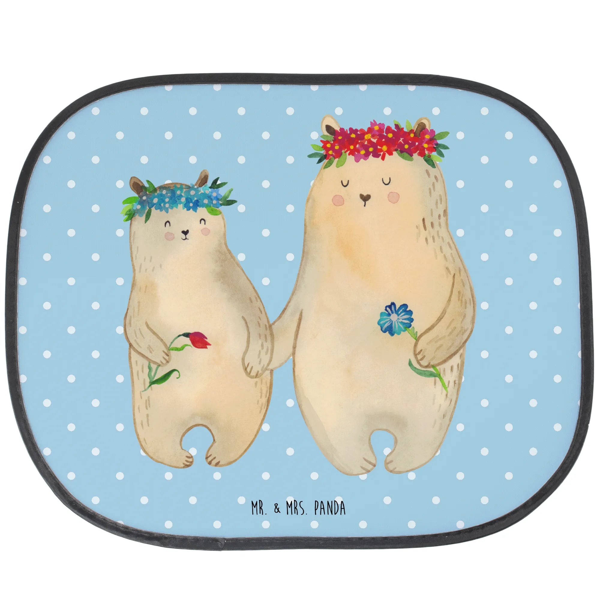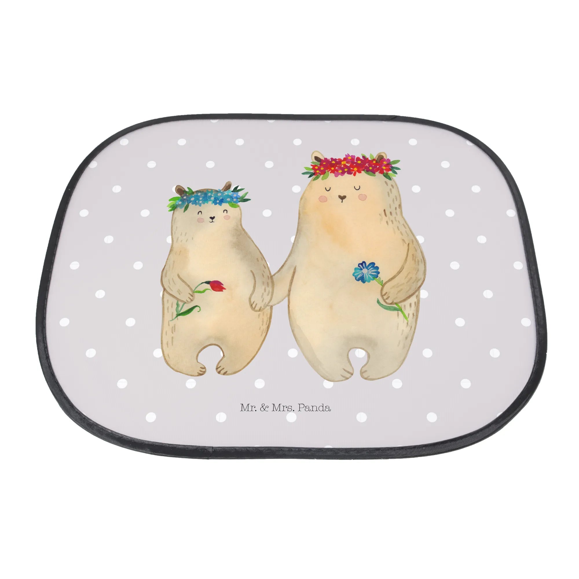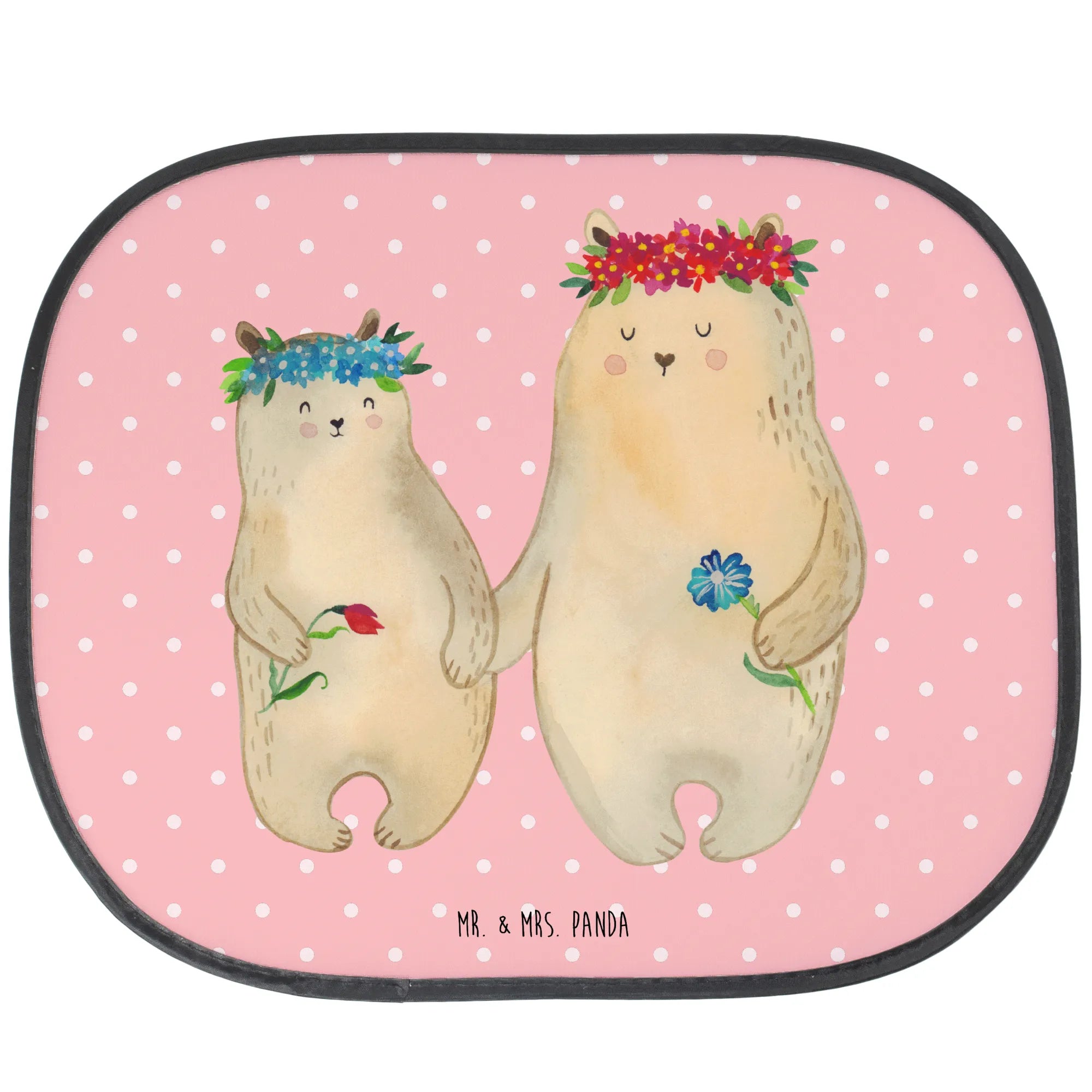 Der Auto Sonnenschutz von Mr. & Mrs. Panda mit dem zauberhaften Motiv der Bären mit Blumenkranz ist das perfekte Geschenk für jeden, der Zeit mit seinen Liebsten im Auto verbringt.