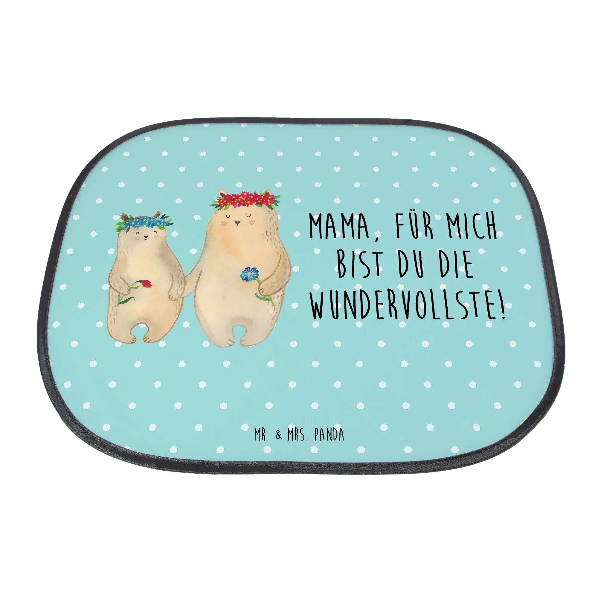Ein wunderschöner Sonnenschutz fürs Auto von Mr. & Mrs. Panda – liebevoll bedruckt mit dem Motiv „Bären mit Blumenkranz“ aus der Familien-Kollektion. Dieser Seitliche Sonnenschutz ist das perfekte Geschenk für Mama, Tochter, Lieblingsmensch oder die ganze Familie. Mit dem liebevollen Spruch „Mama, für mich bist du die Wundervollste!“ wird jede Fahrt zum kleinen Familienmoment.