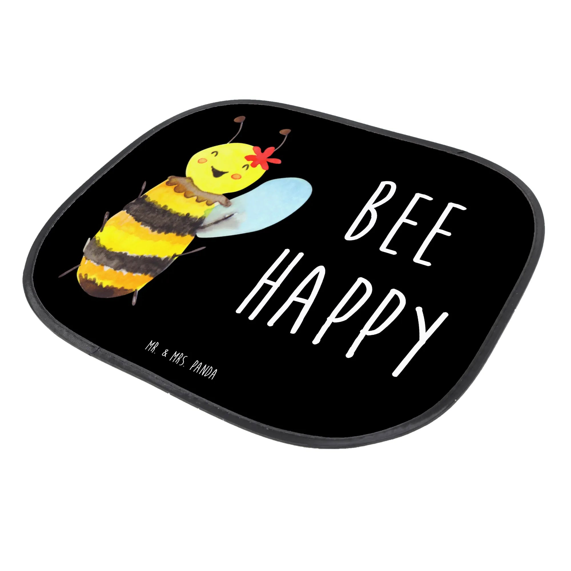 Sonnenschutz Auto Biene Happy - mit Spruch - Schwarz