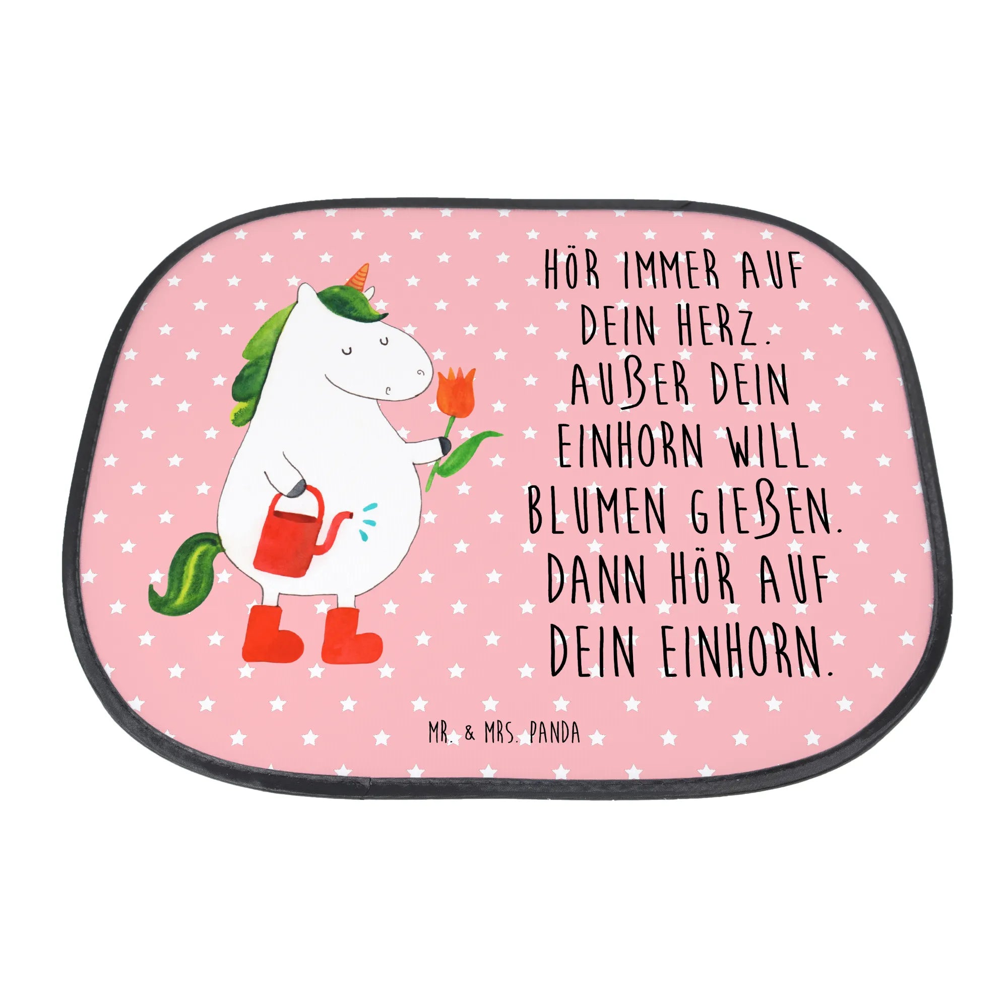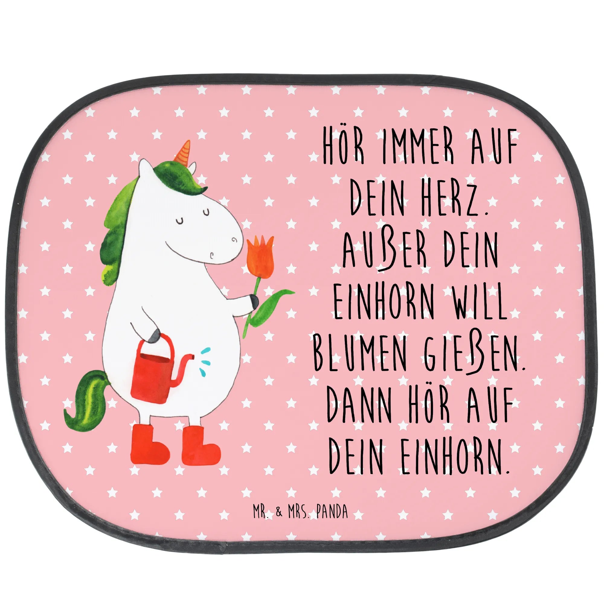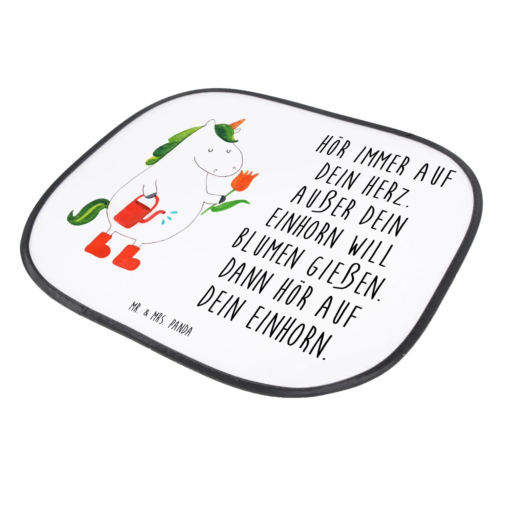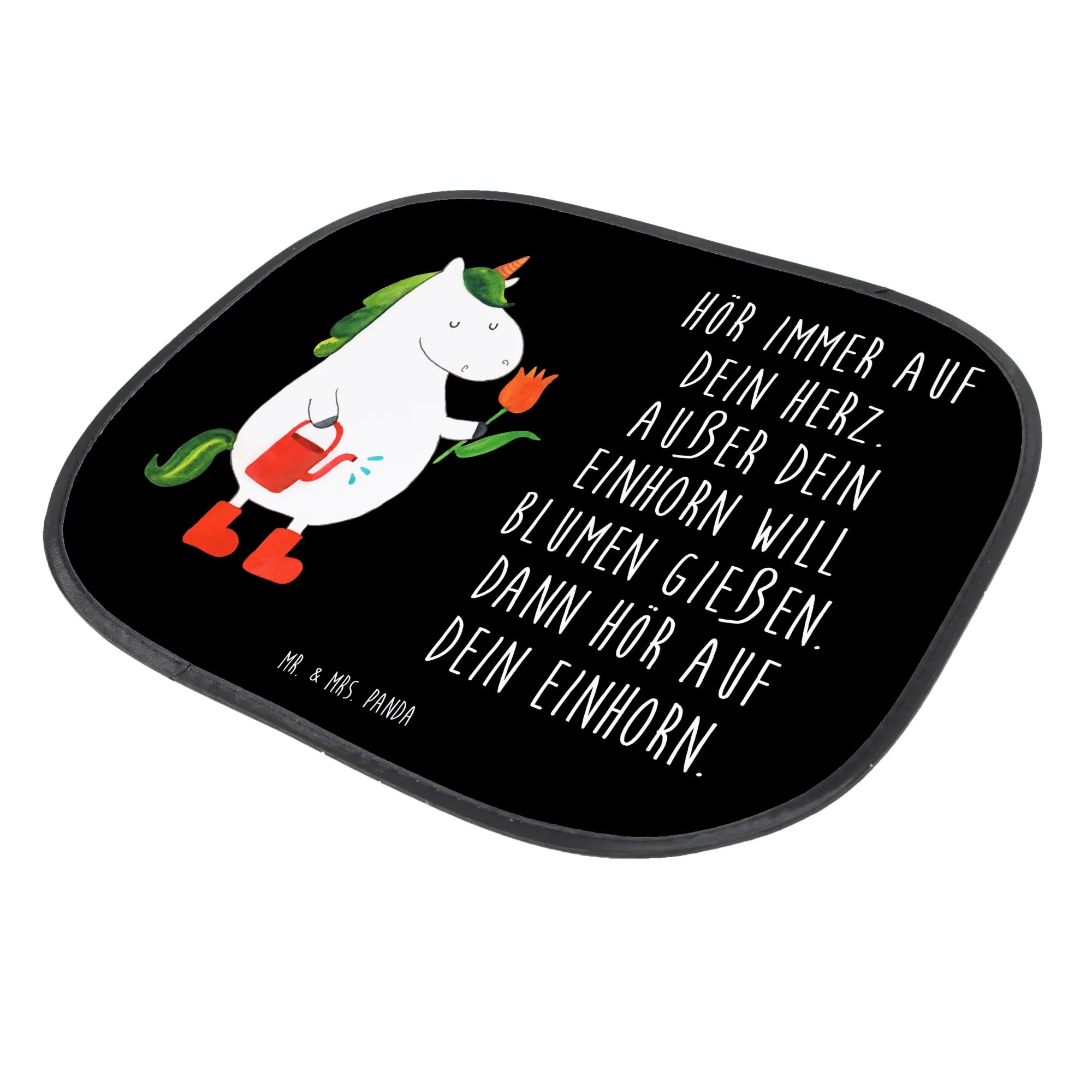 Suchst du einen hübschen Autosonnenschutz, der nicht nur schützt, sondern auch Freude bringt? Unsere Auto Sonnenblende aus der Einhorn - Kollektion von Mr. & Mrs. Panda zeigt ein entzückendes, handgezeichnetes Einhorn beim Blumen gießen – auf elegantem schwarzen Hintergrund und mit dem witzigen Spruch: „Hör immer auf dein Herz. Außer dein Einhorn will Blumen gießen. Dann hör auf dein Einhorn.“ 🌸🦄