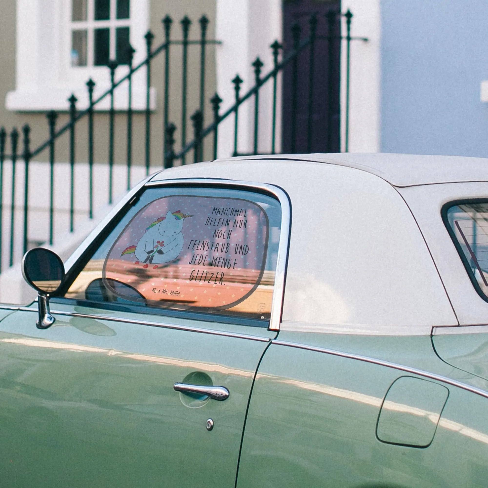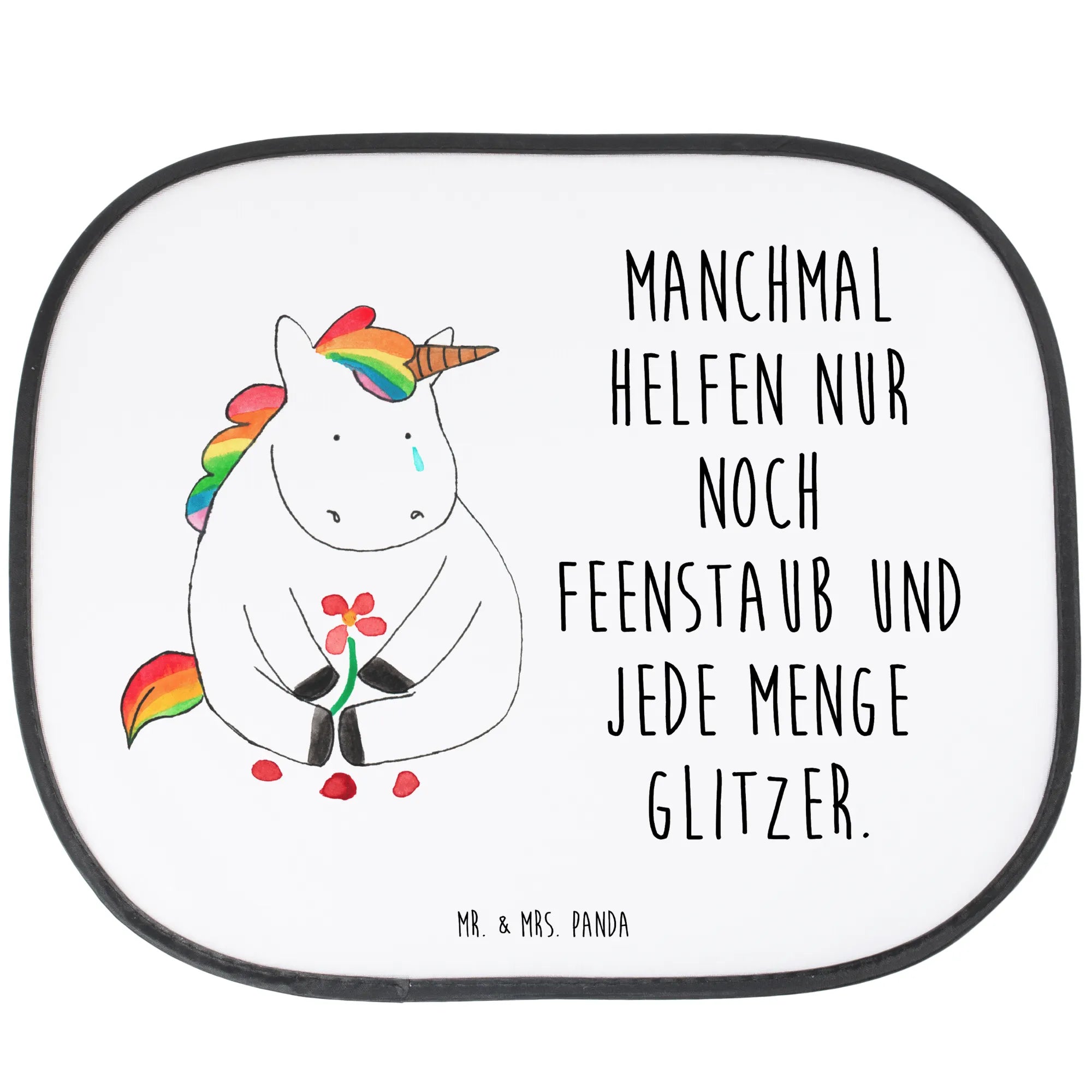 Entdecke den perfekten Auto Sonnenschutz von Mr. & Mrs. Panda mit dem bezaubernden Motiv des traurigen Einhorns. Dieser Auto Sonnenschutz schützt nicht nur das Auto vor direkter Sonneneinstrahlung, sondern sieht zudem auch noch zuckersüß aus! Mit den Maßen von 440 mm x 380 mm passt er perfekt an die Autoscheibe und bietet optimalen Schutz für den Fahrer und die kleinen Passagiere.