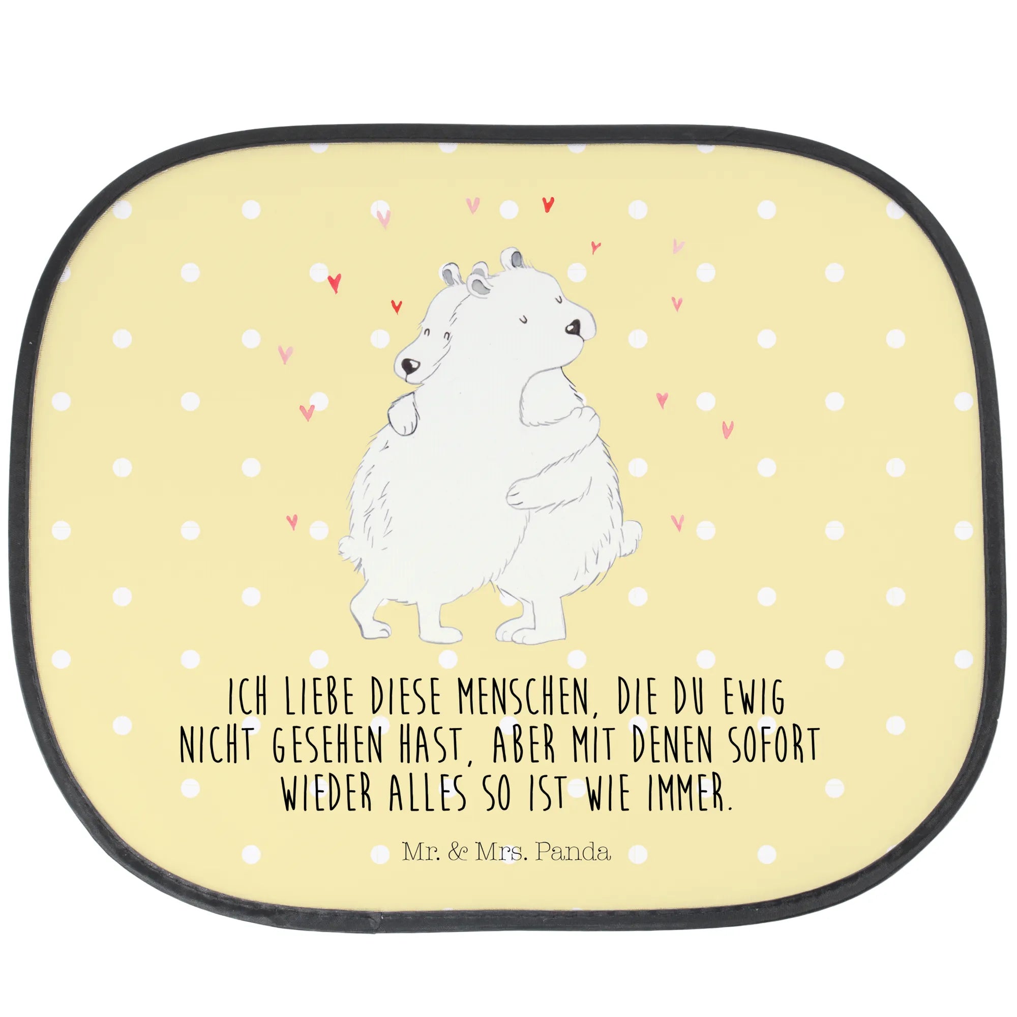 Entdecke den perfekten Auto Sonnenschutz von Mr. & Mrs. Panda mit dem bezaubernden Motiv "Eisbär Umarmen" aus der beliebten Kollektion Small World. Dieser wunderschöne Auto Sonnenschutz schützt die kleinen und großen Passagiere nicht nur vor direkter Sonneneinstrahlung und unangenehmer Hitze, sondern zaubert auch ein Lächeln auf die Gesichter der Fahrzeuginsassen. Die Darstellung zweier verliebter Eisbären, die sich innig umarmen, vermittelt pure Freude und Liebe während jeder Autofahrt.