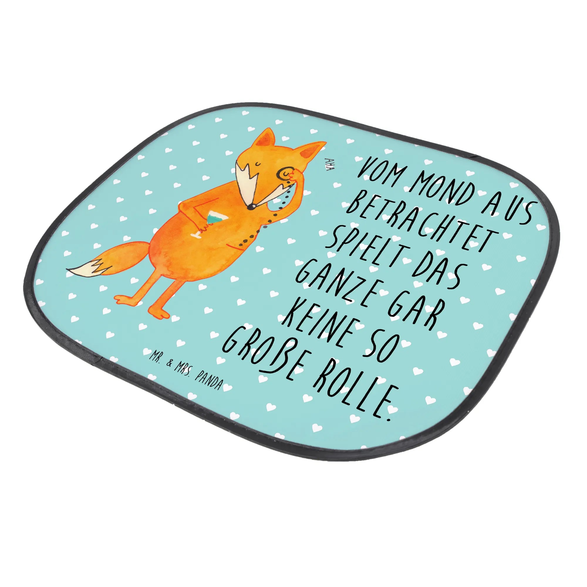 Ein wunderschöner Sonnenschutz Auto von Mr. & Mrs. Panda: Der Sonnenschutz "Fuchs Lord" aus unserer Fuchs-Kollektion vereint praktischen UV Schutz mit herzlicher Illustration. Auf einem sanften Türkis-Pastell Hintergrund begrüßt dich ein stattlicher Fuchs mit Monokel — handgezeichnet und liebevoll coloriert. Der kleine Spruch „Vom Mond aus betrachtet spielt das Ganze gar keine so große Rolle.“ erinnert dich daran, gelassen zu bleiben. 😊