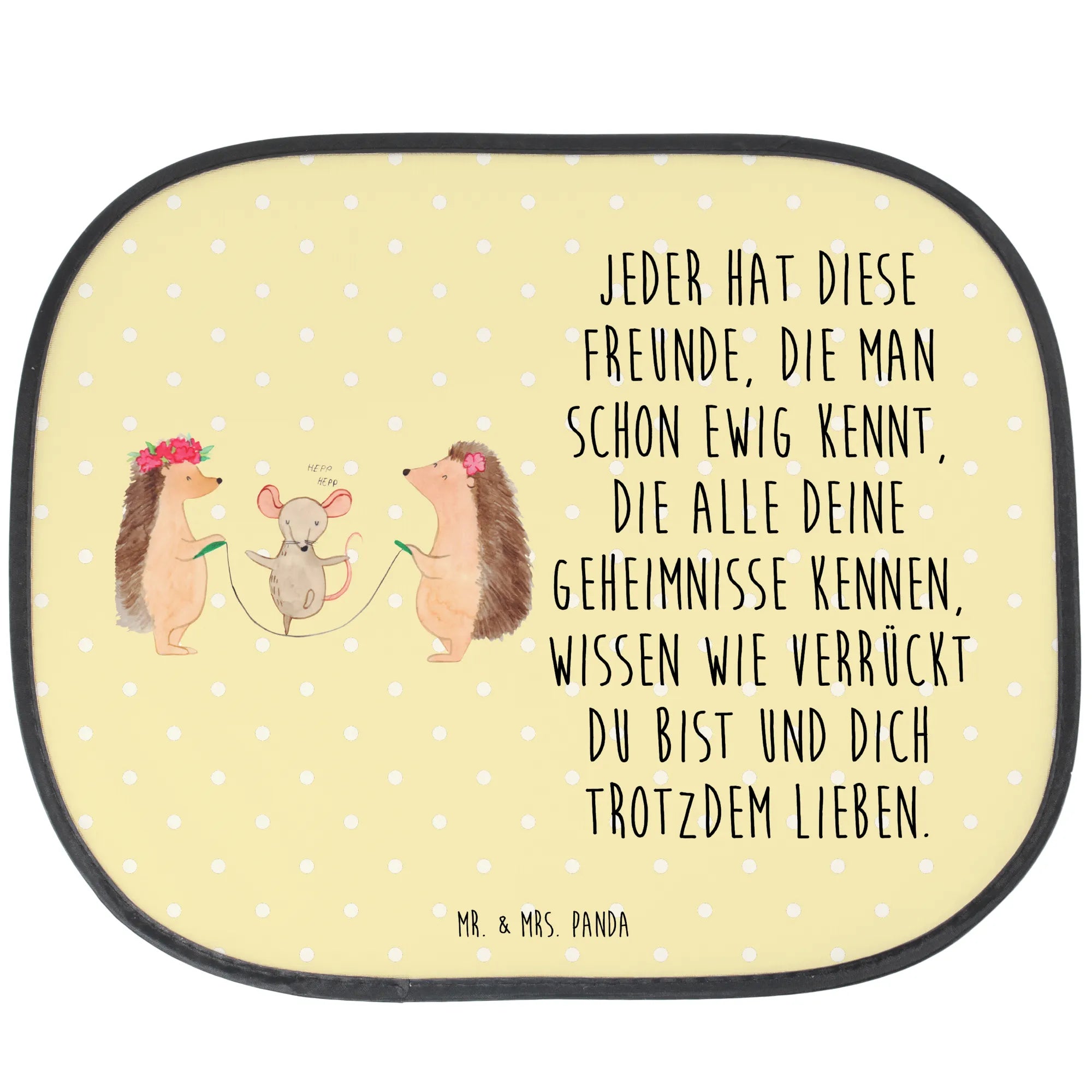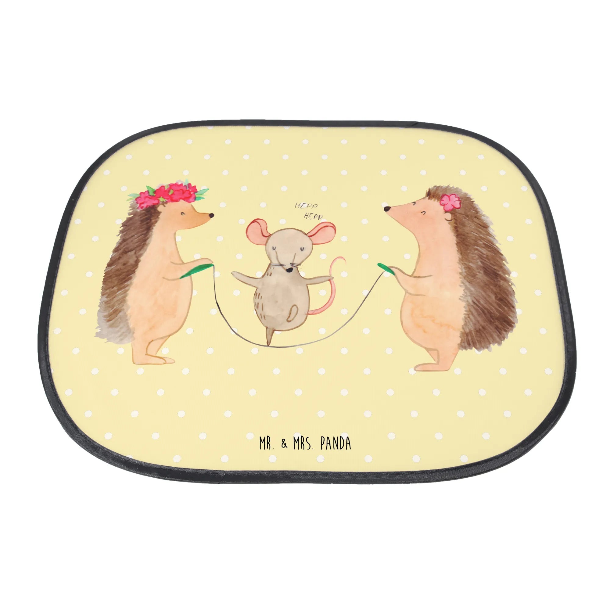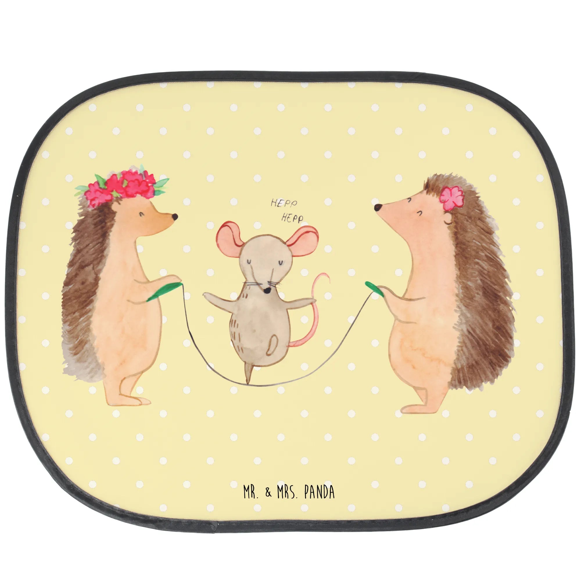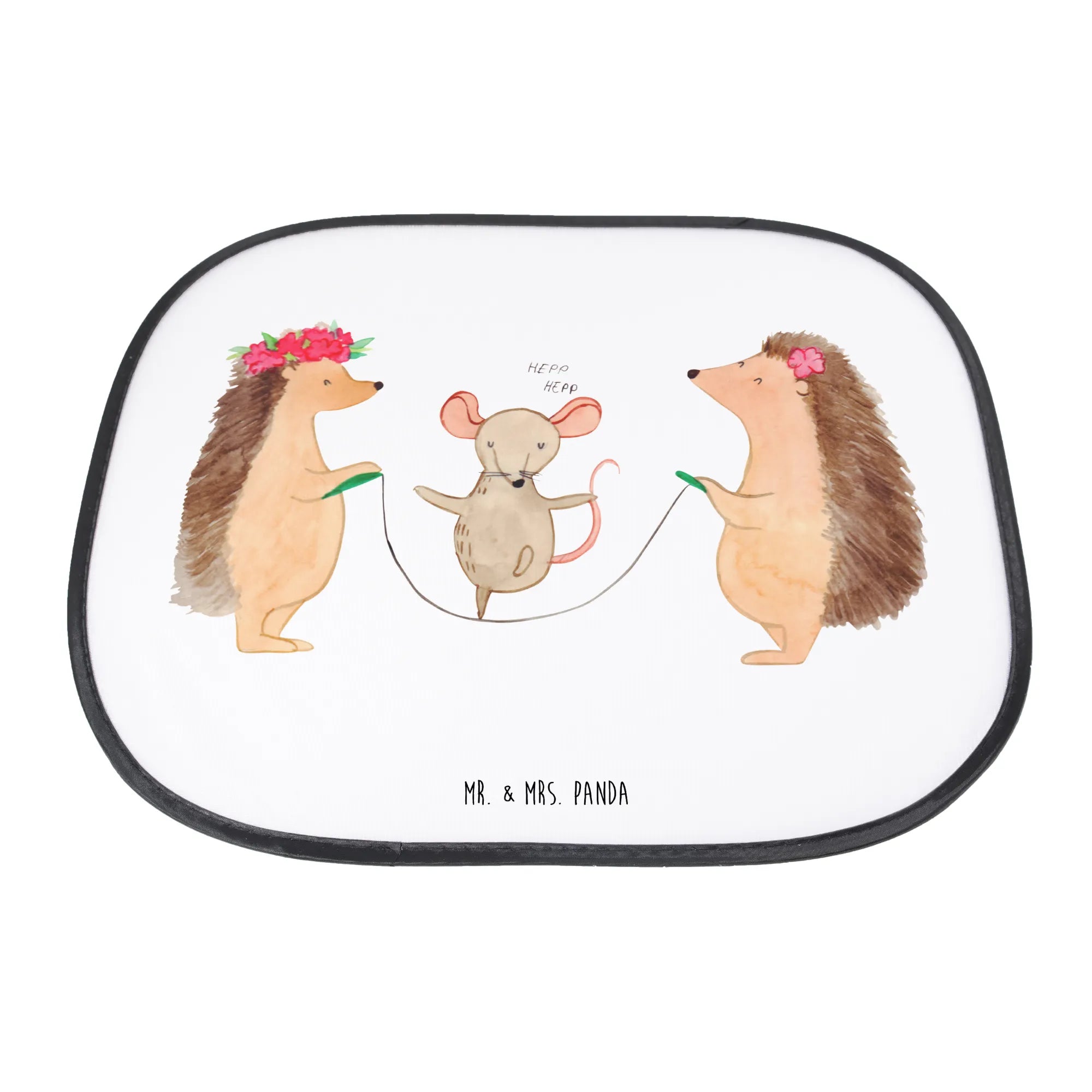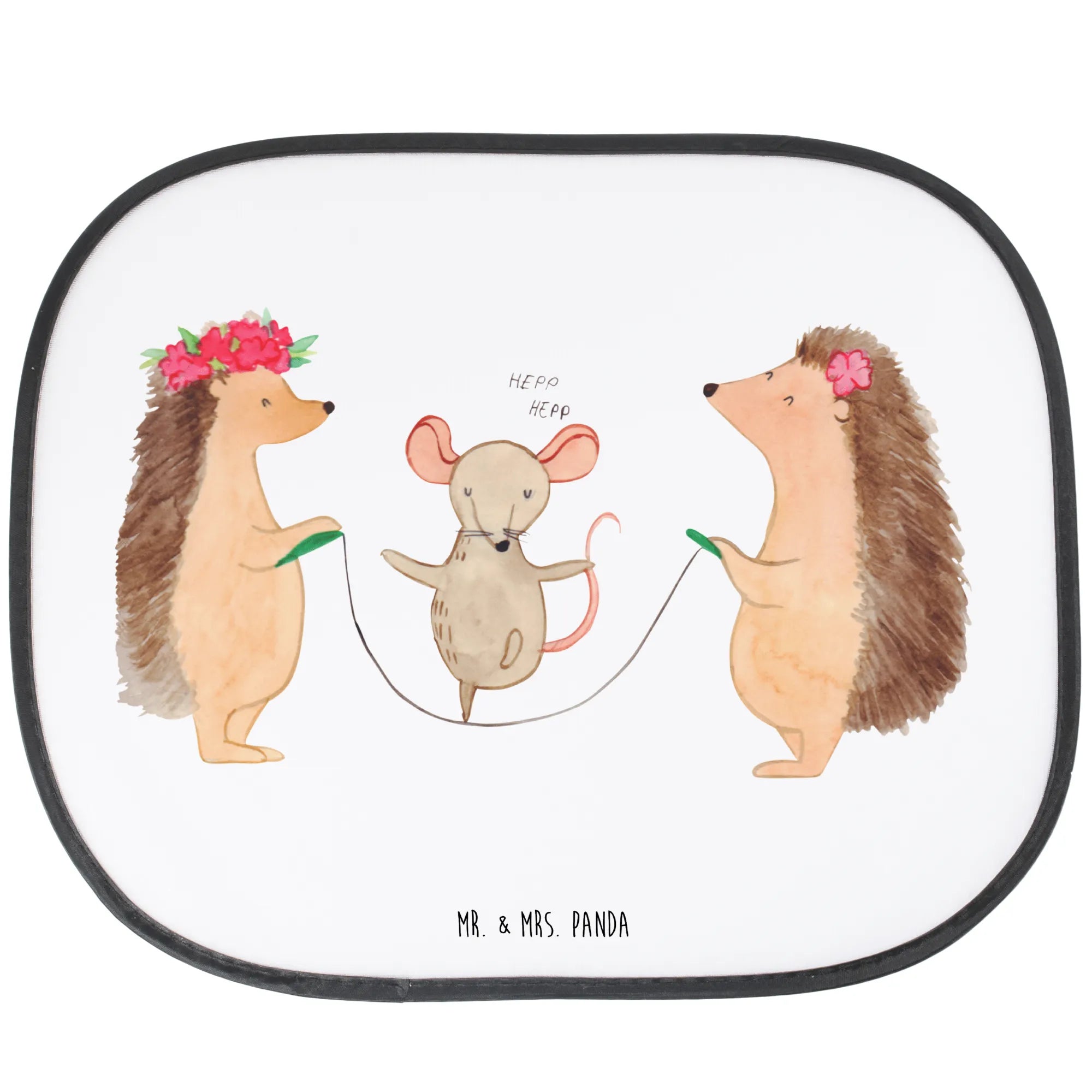 Produkt-Highlights: Sonnenschutz Auto Seitenscheibe, Sonnenschutz mit Saugnäpfen, Kindersonnenschutz Auto, Blendschutz Auto, Auto Sichtschutz, pflegeleicht und langlebig. Schenke Sicherheit, Komfort und ein Lächeln auf jeder Fahrt – mit dem Sonnenschutz "Igel Seilhüpfen" von Mr. & Mrs. Panda.