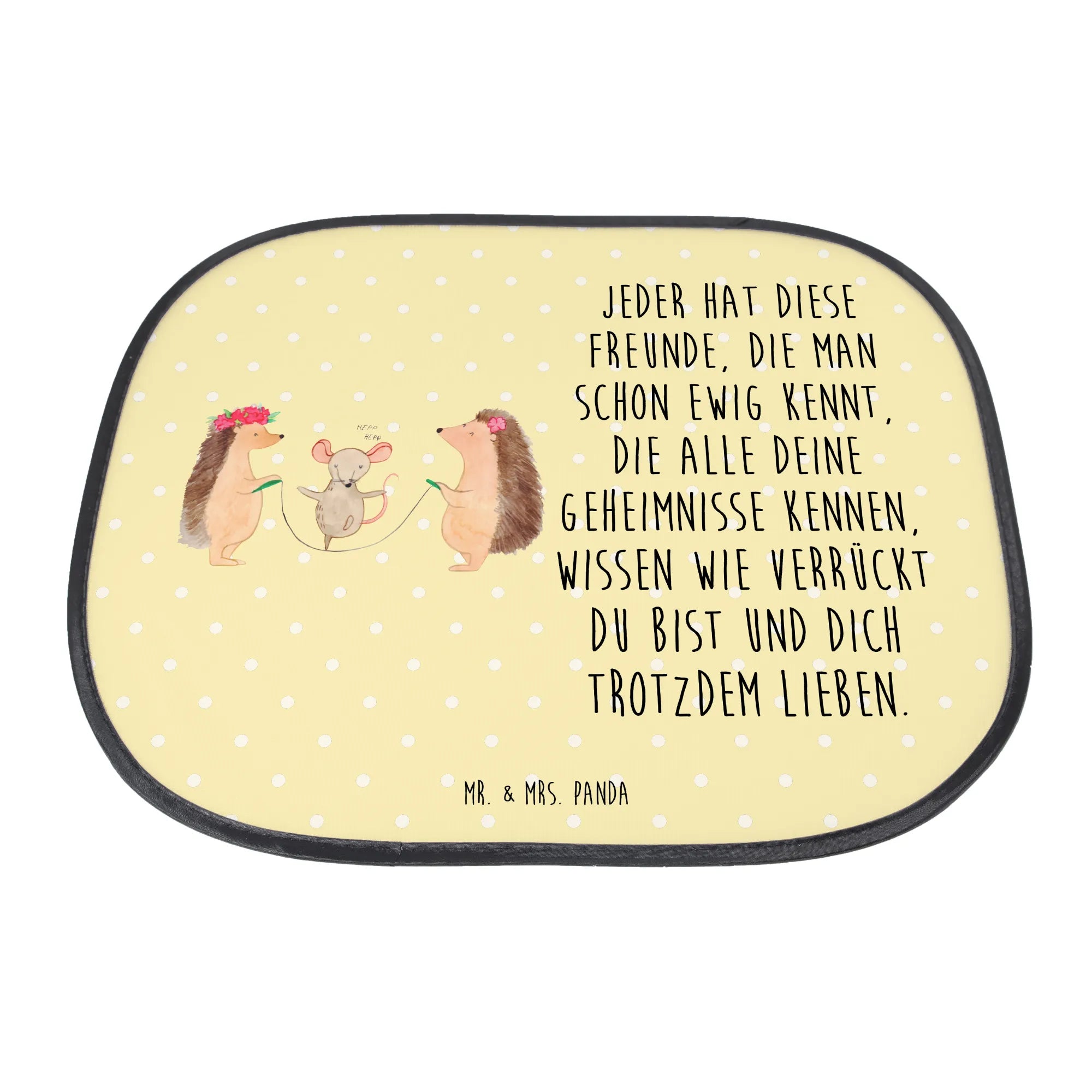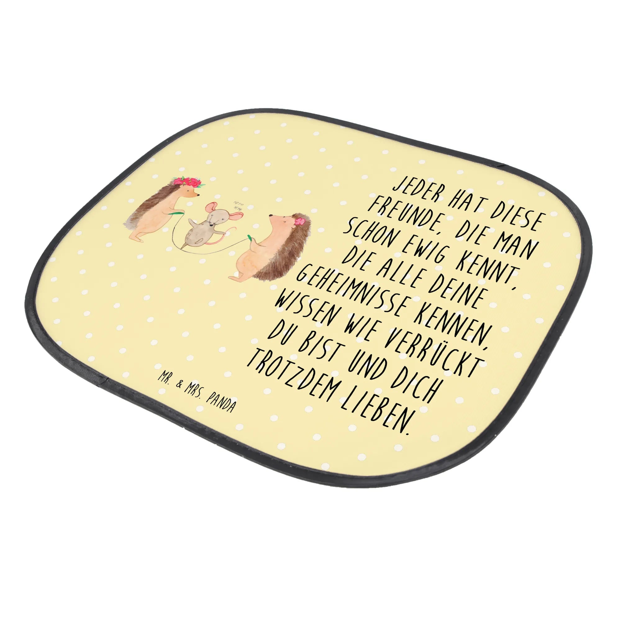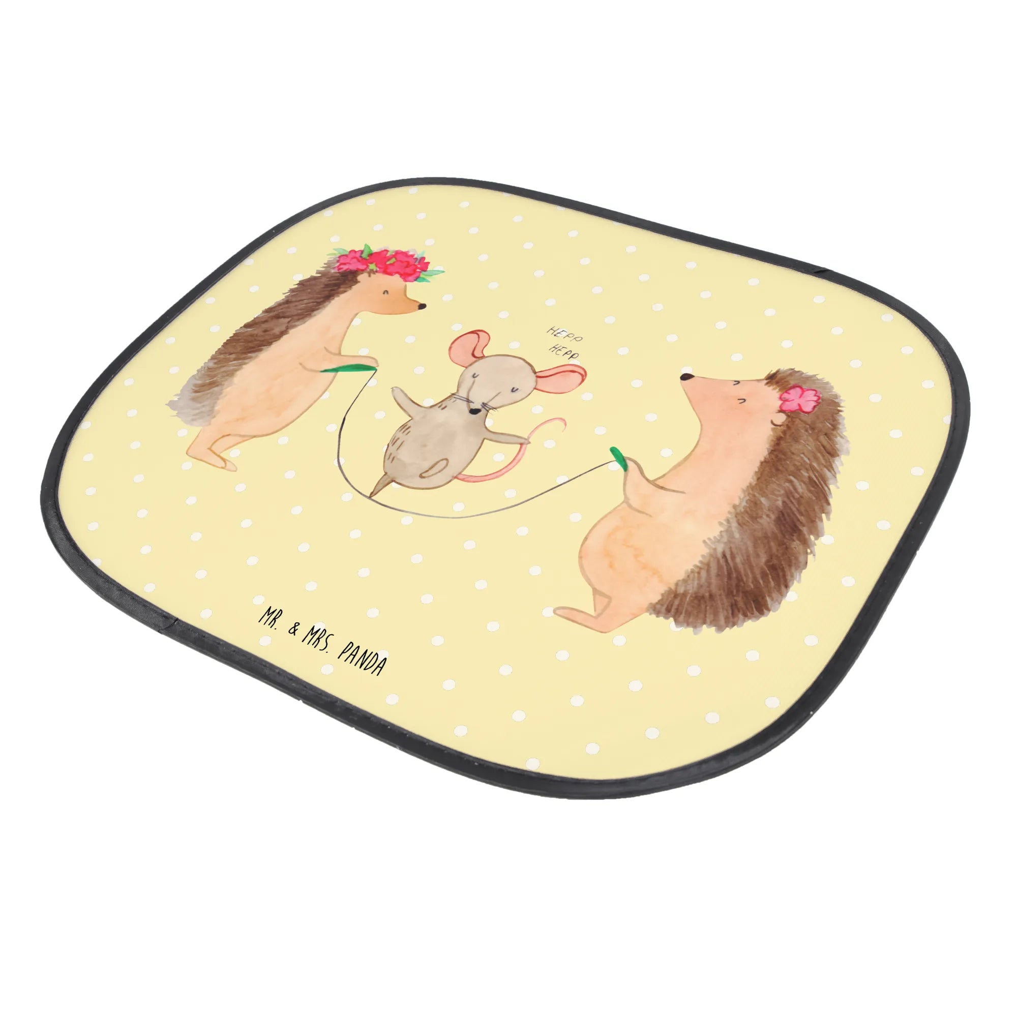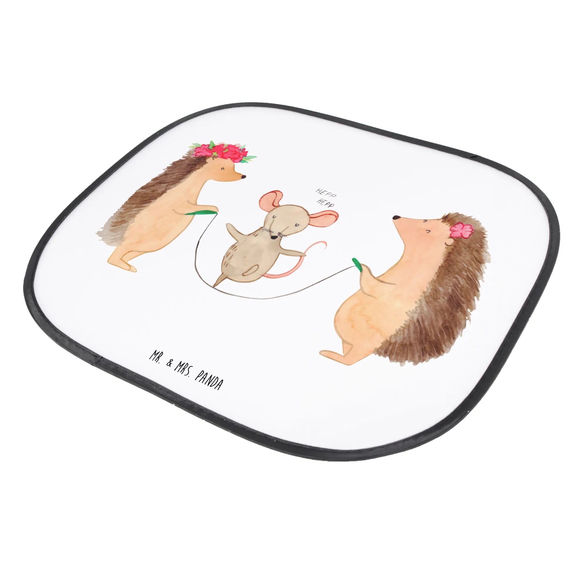 Der Auto Sonnenschutz Igel Seilhüpfen von Mr. & Mrs. Panda ist das perfekte Accessoire für alle Eltern, die ihren kleinen Lieblingen eine angenehme Autofahrt bieten möchten. Mit seiner Größe von 440 mm x 380 mm passt er perfekt auf die meisten Autoscheiben und schützt deinen kleinen Fahrgast vor direkter Sonneneinstrahlung und der lästigen Hitzeentwicklung.