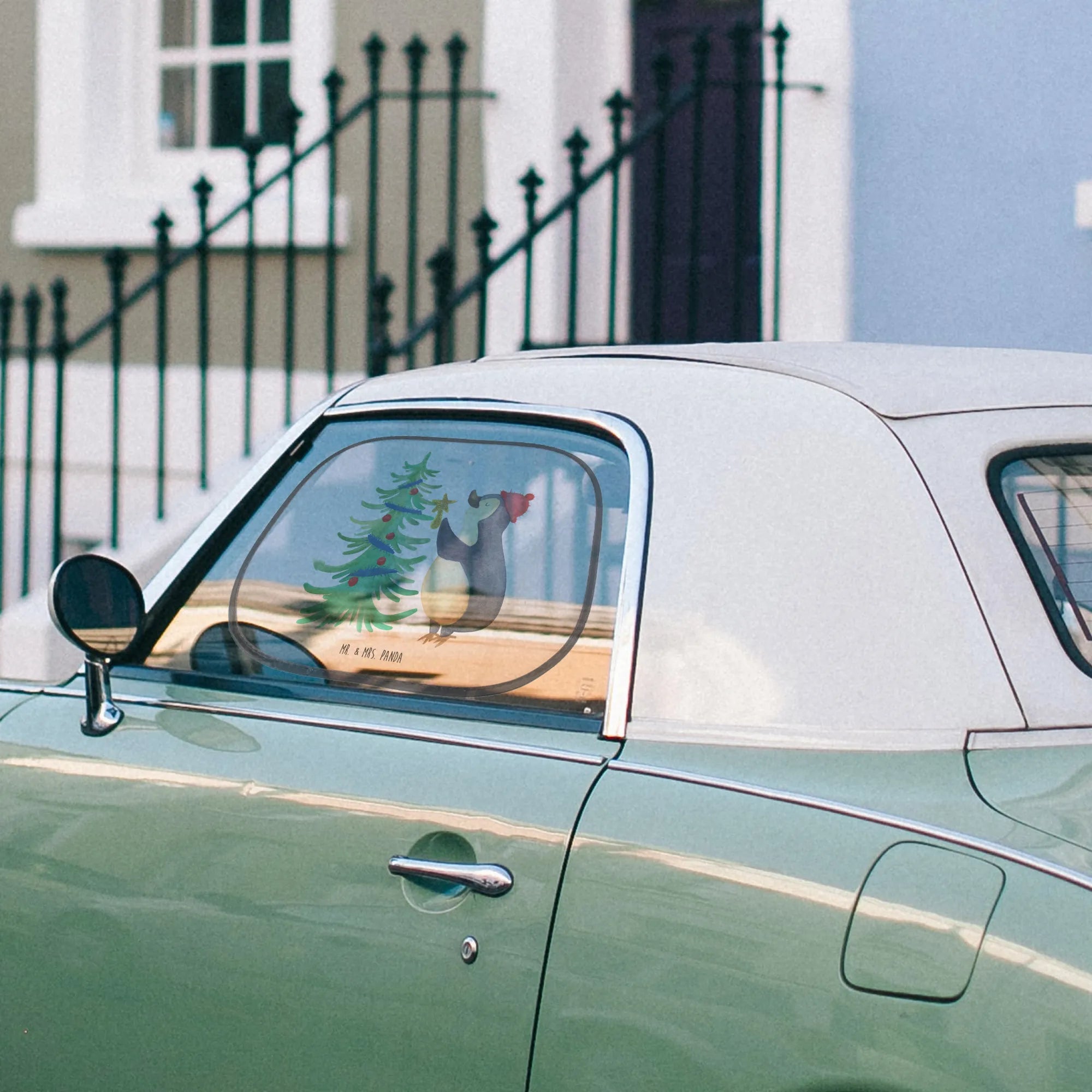 Entdecke den zauberhaften Auto Sonnenschutz mit dem süßen Pinguin Weihnachtsbaum aus der Winter Kollektion von Mr. & Mrs. Panda! Dieses wunderschöne Accessoire schützt nicht nur deinen kleinen Liebling vor direkter Sonneneinstrahlung, sondern verleiht deinem Auto auch einen festlichen Touch.