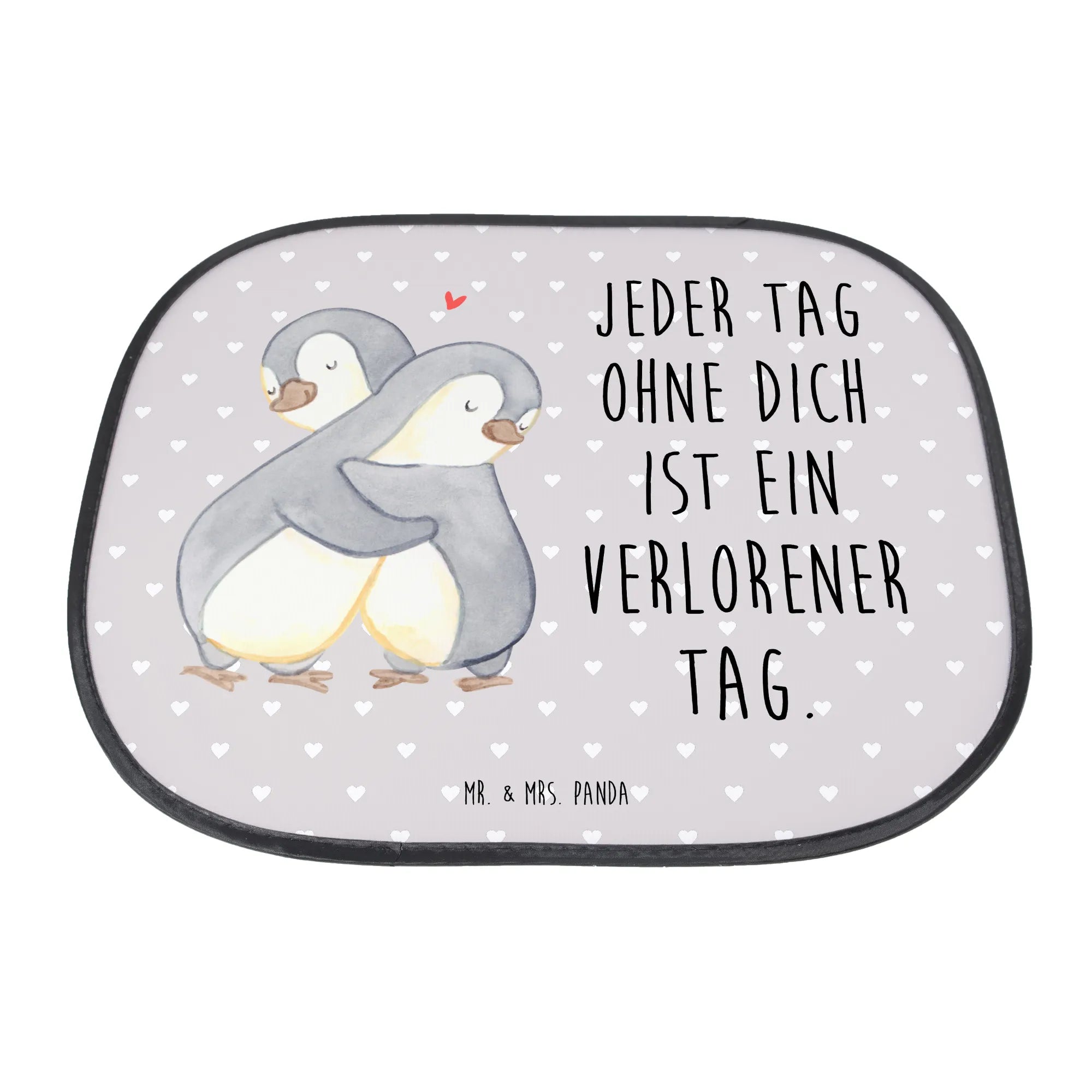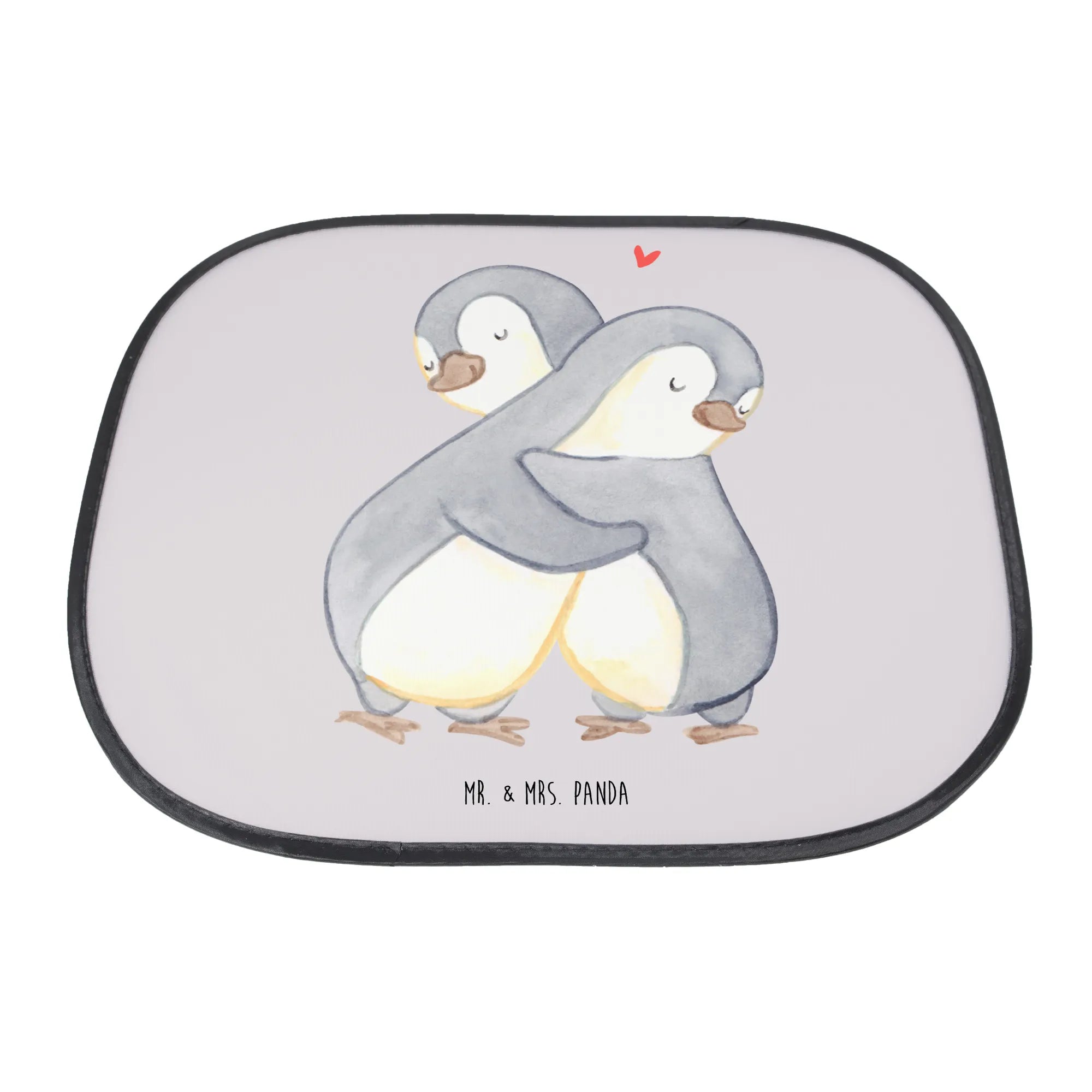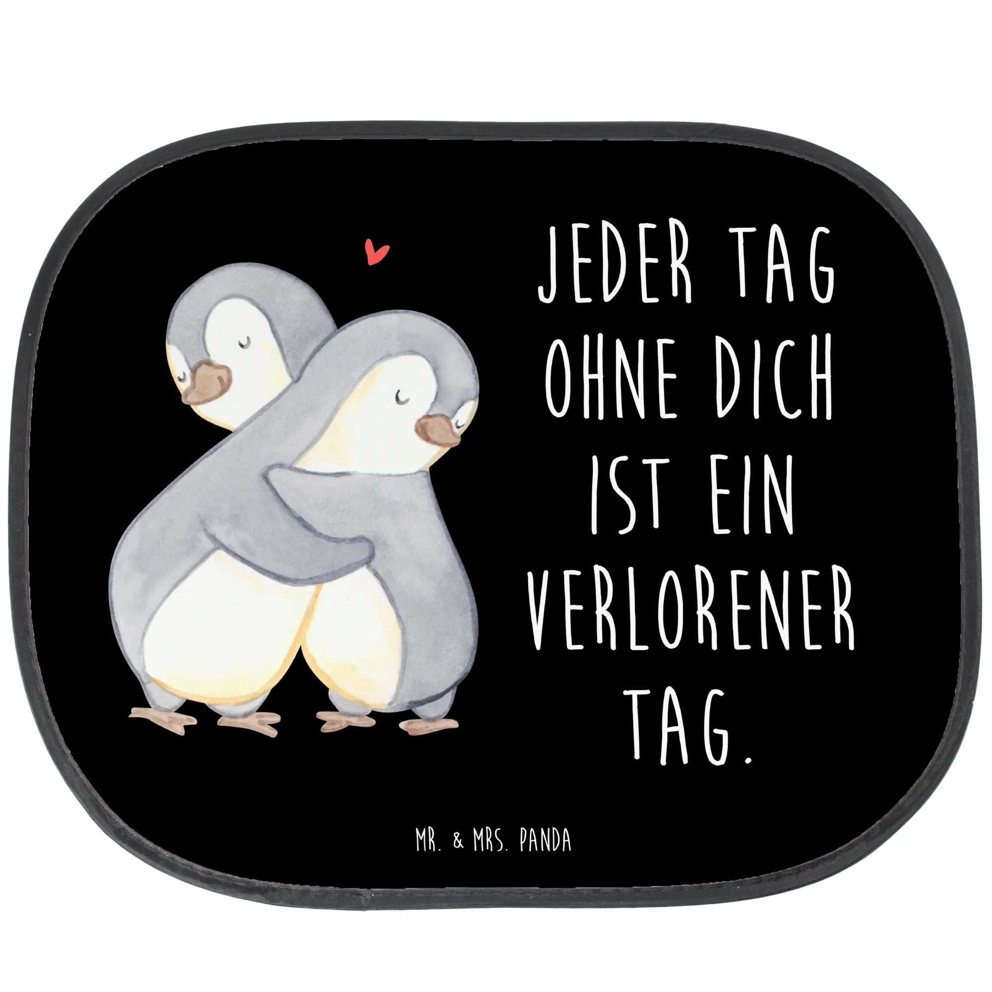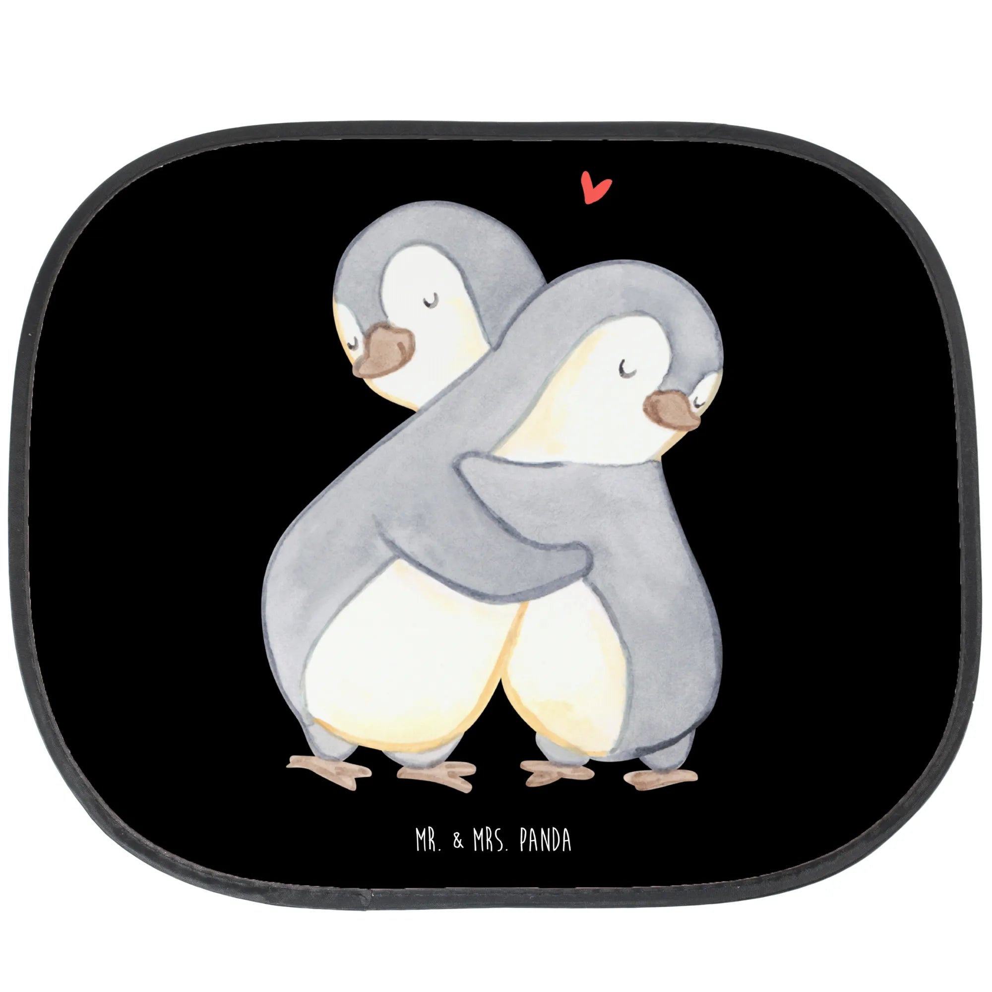 Sonnenschutz Auto Pinguine Kuscheln - mit Spruch - Schwarz